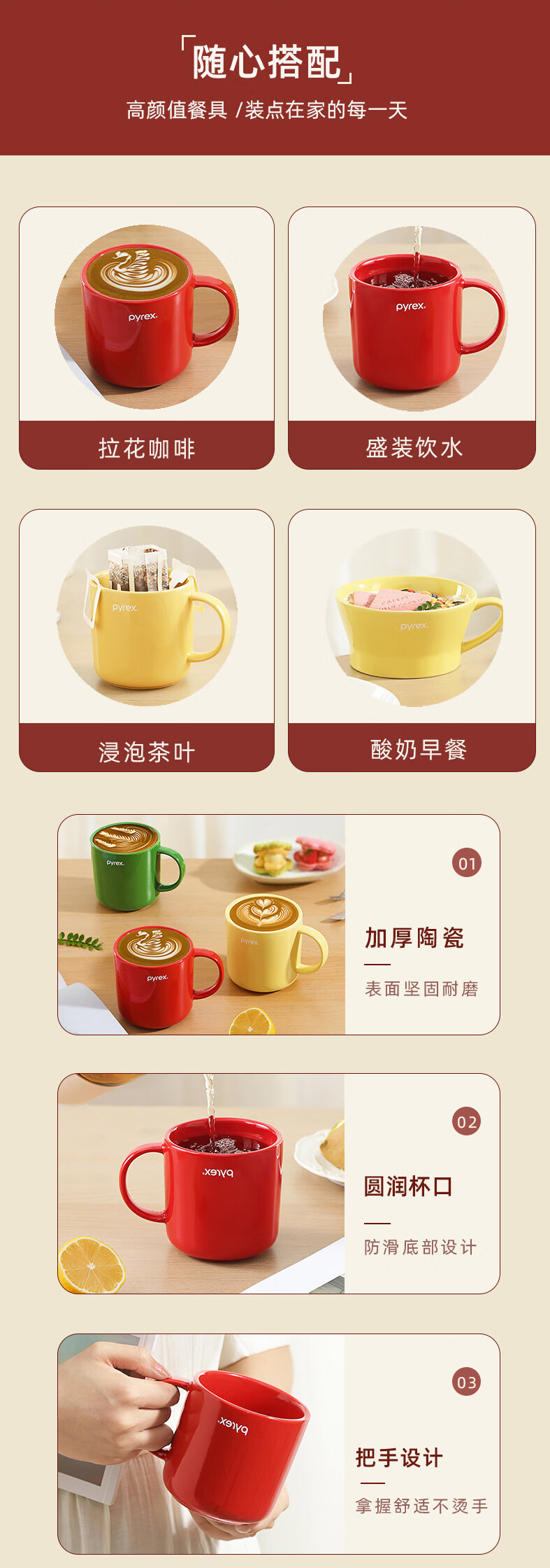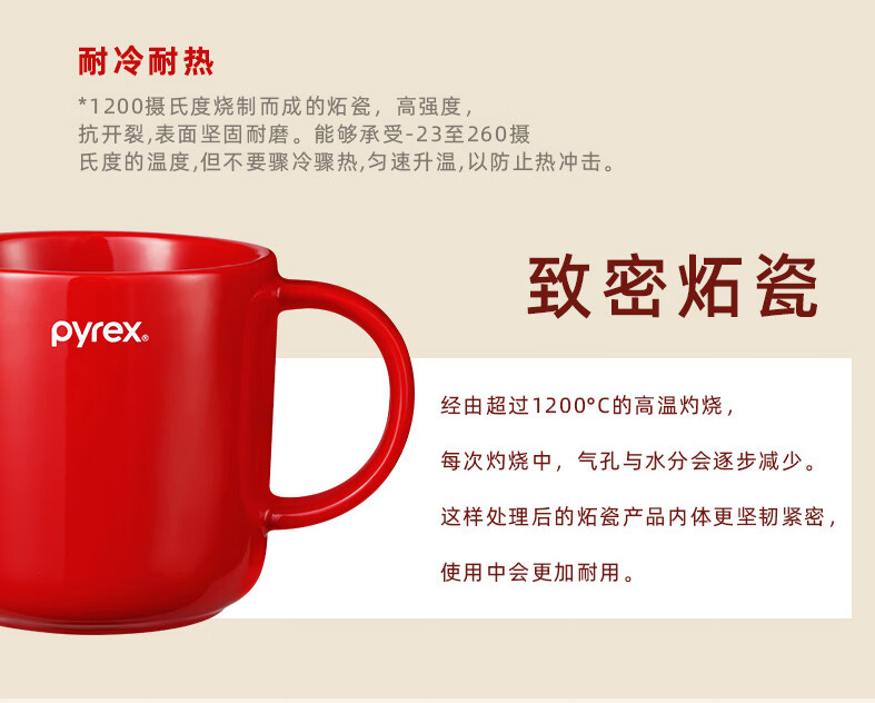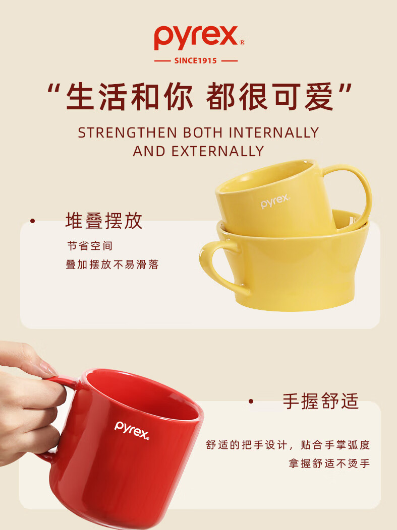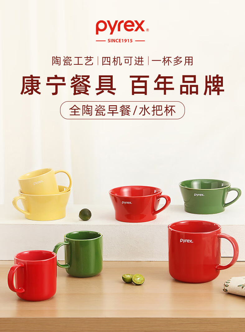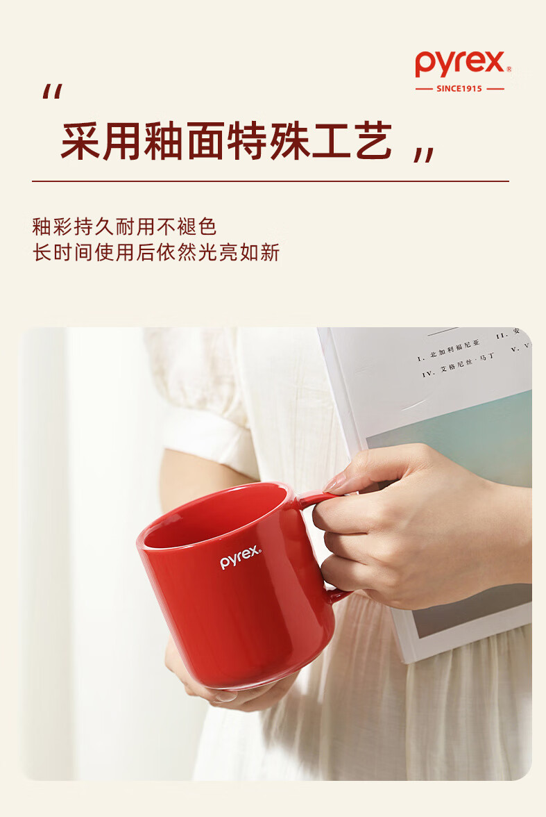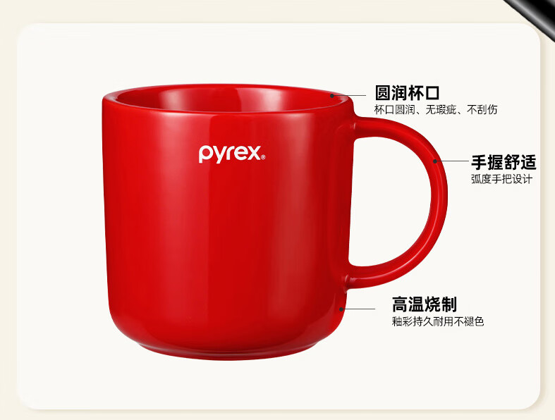 PYREX康宁摩卡色杯子马克杯炻瓷家用热水咖啡杯轻奢办公室早餐杯 【百丽红】百丽的陶瓷杯270ML