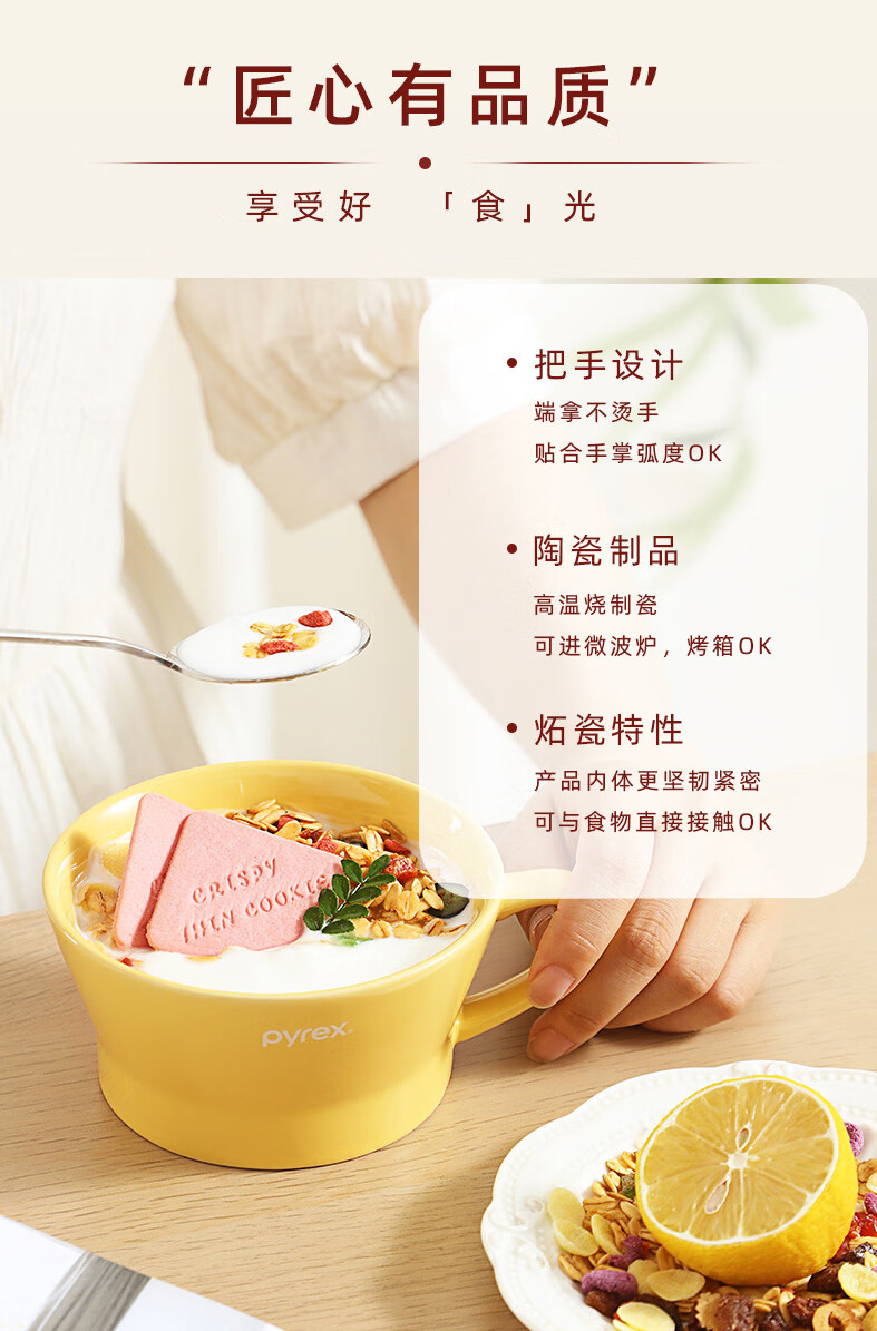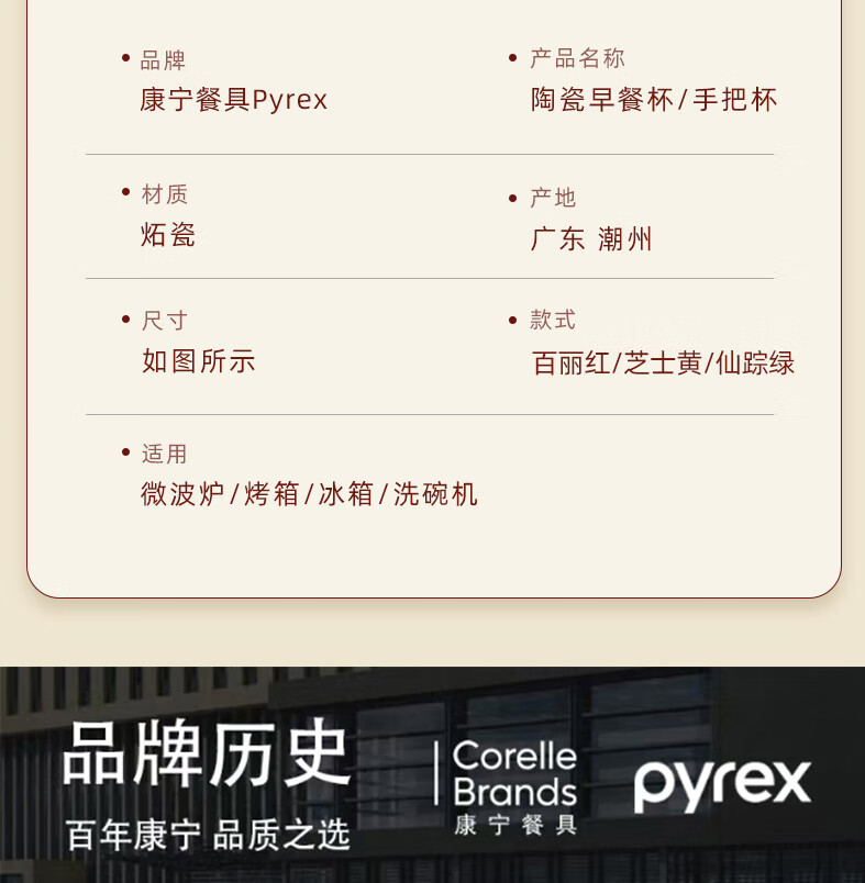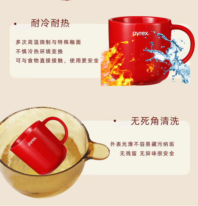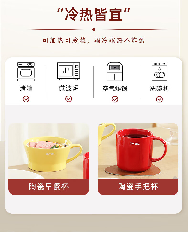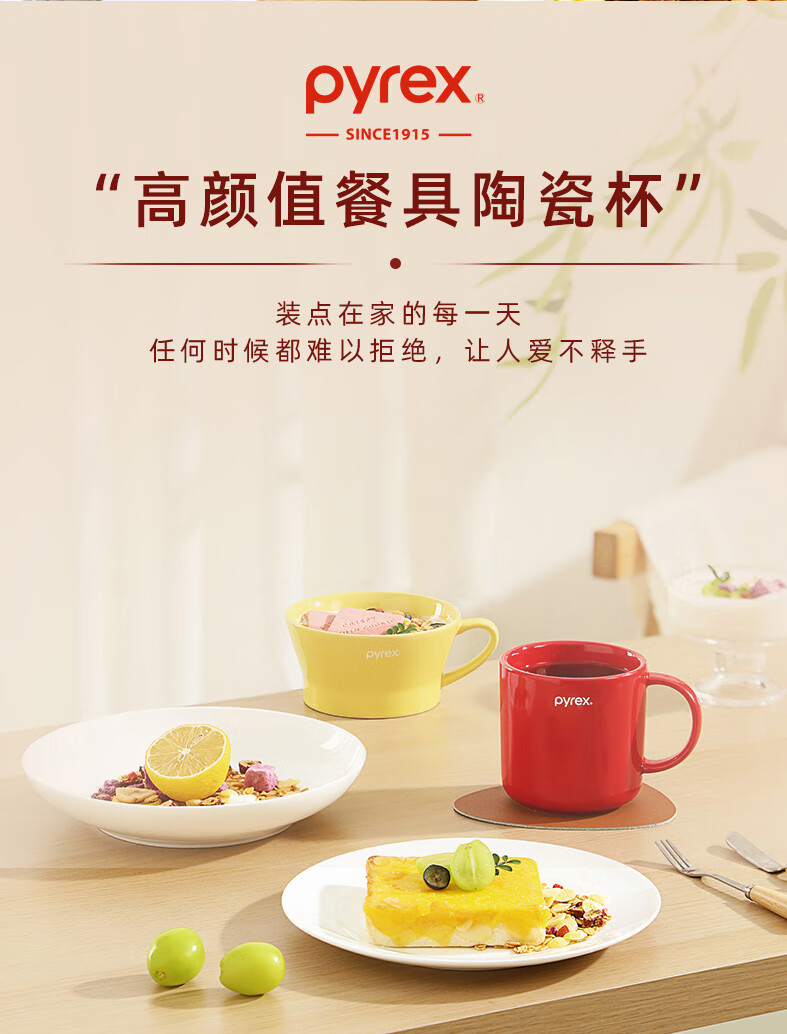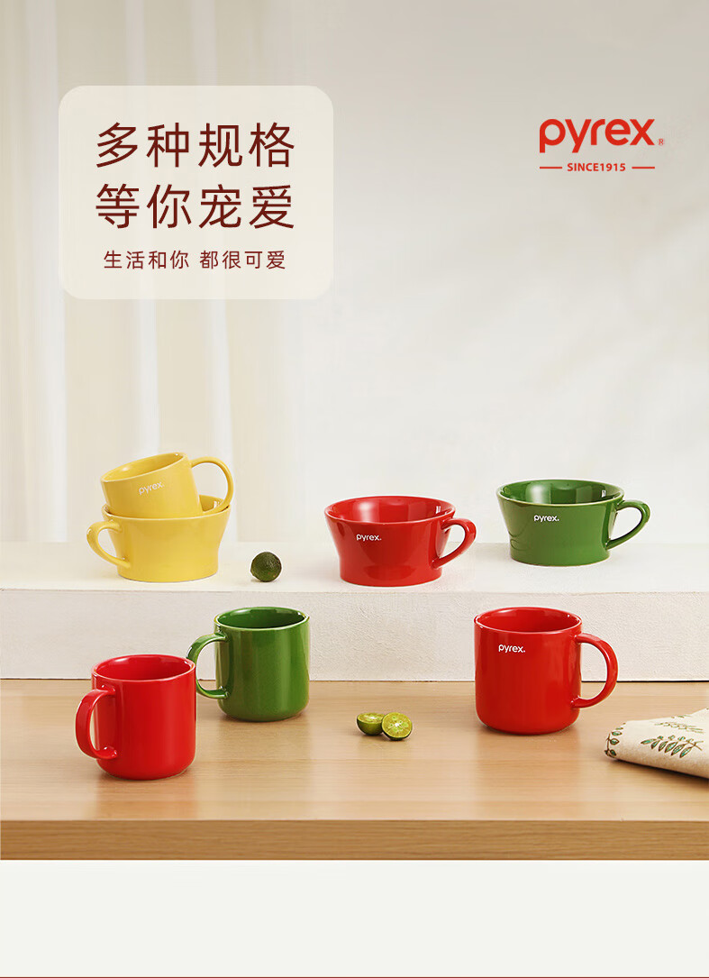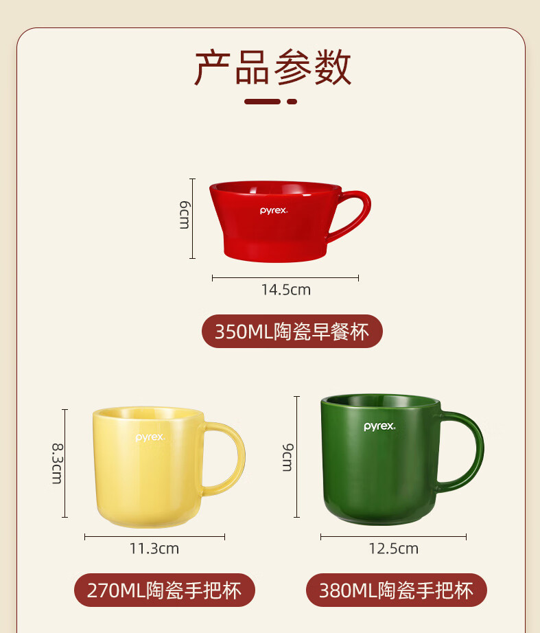 PYREX康宁摩卡色杯子马克杯炻瓷家用热水咖啡杯轻奢办公室早餐杯 【百丽红】百丽的陶瓷杯270ML