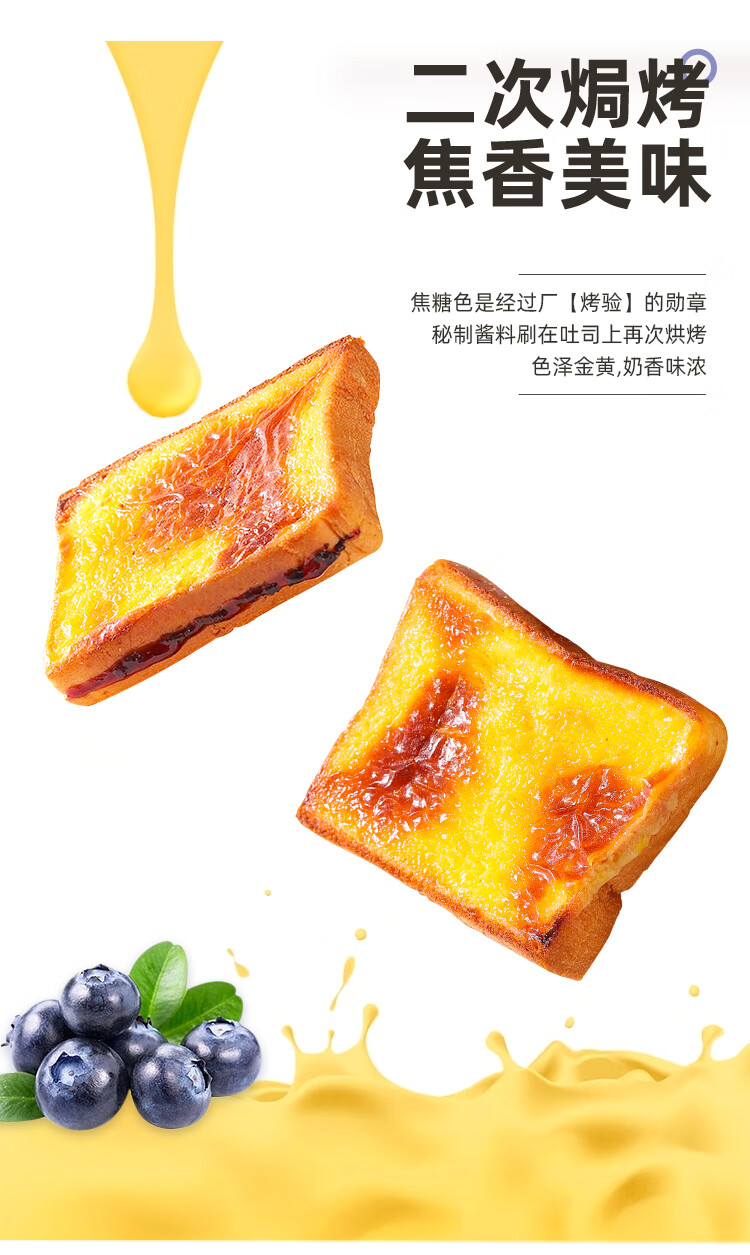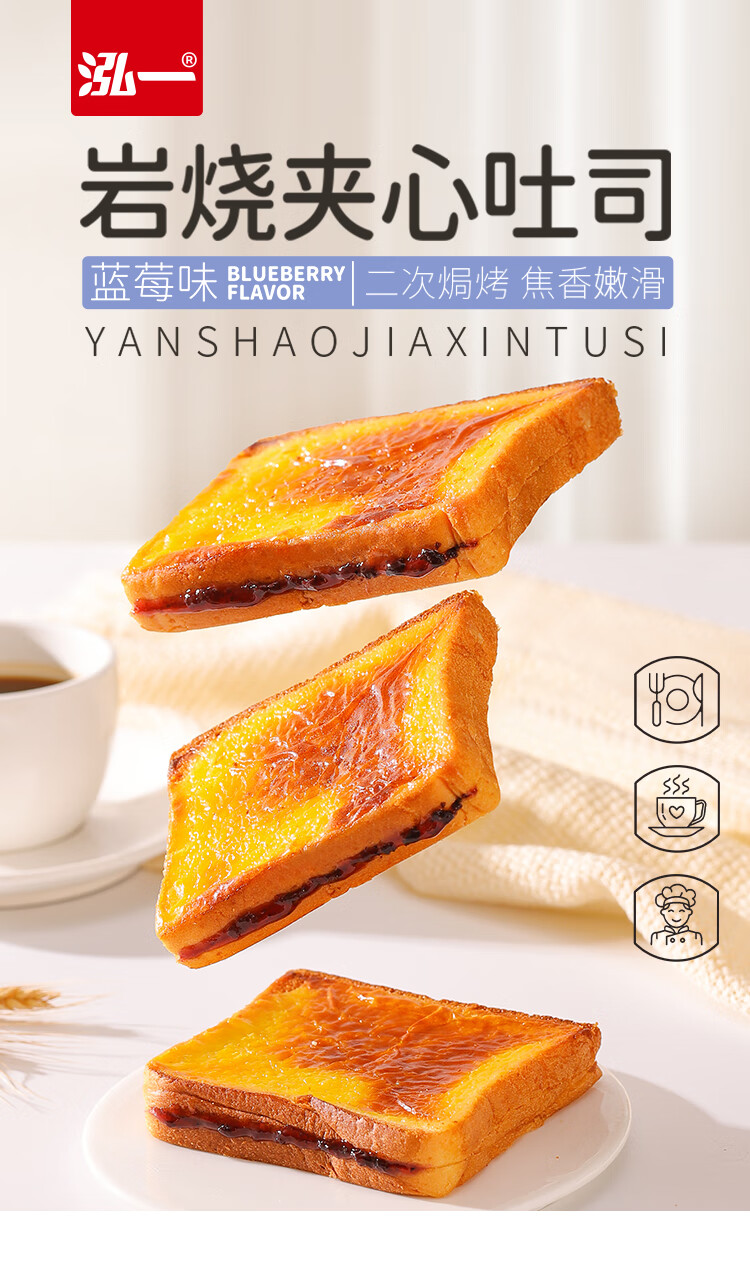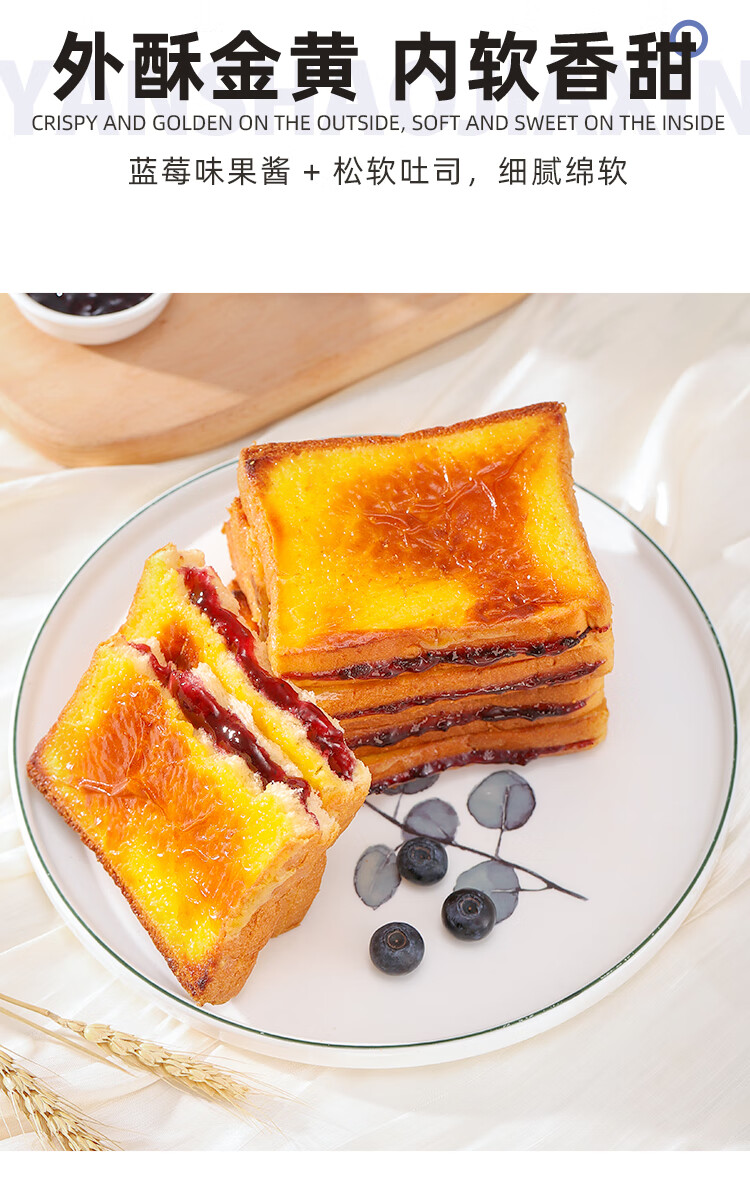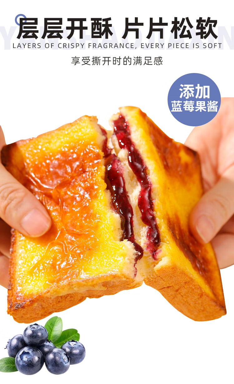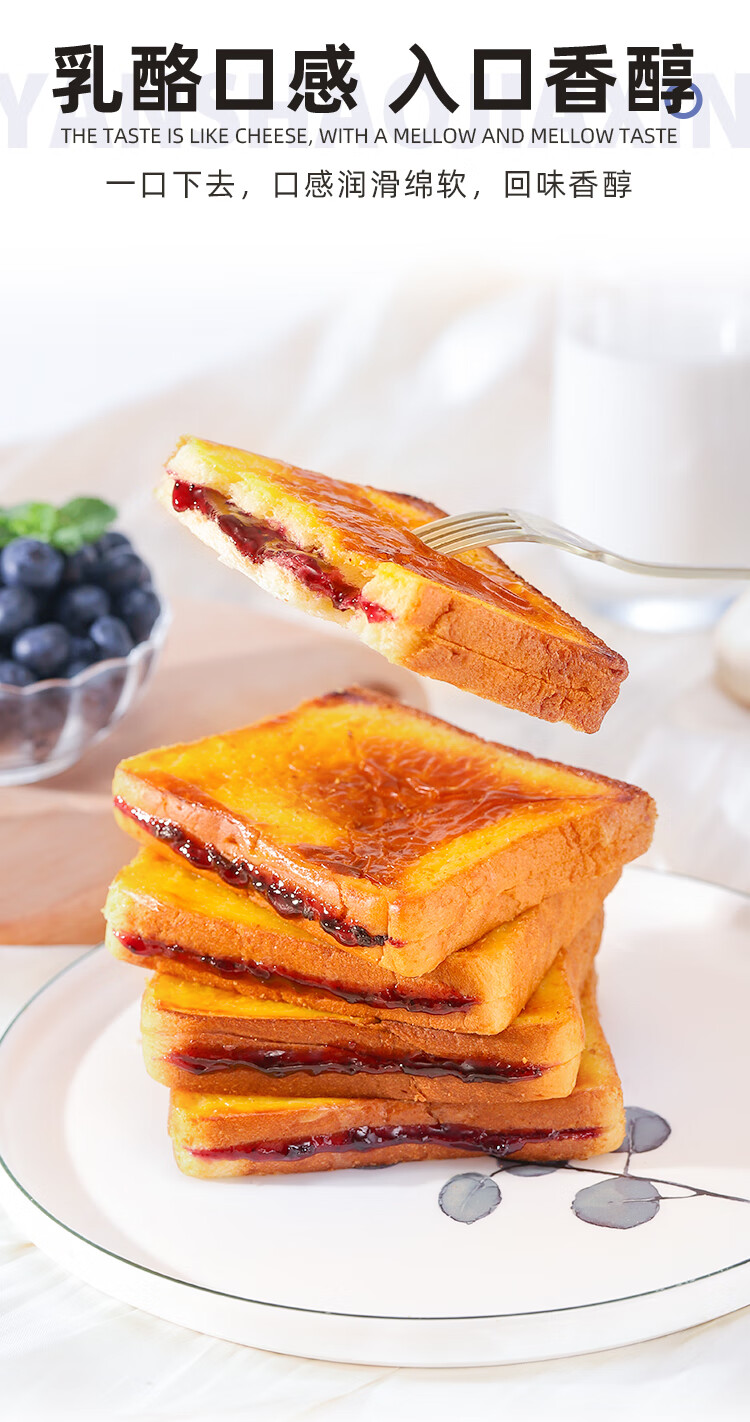 泓一岩烧乳酪吐司面包1000g 手撕面包早餐代餐休闲零食夹心蓝莓味