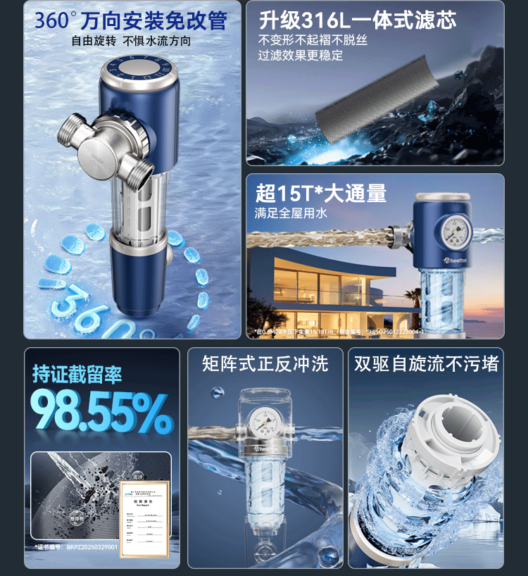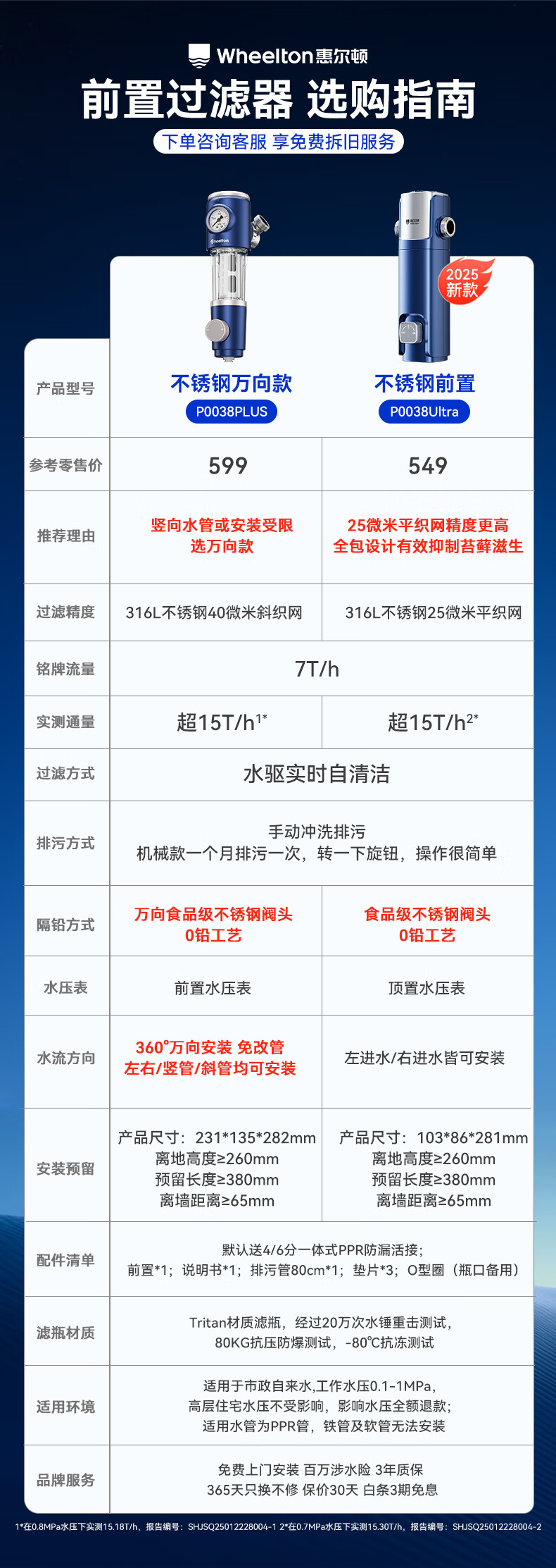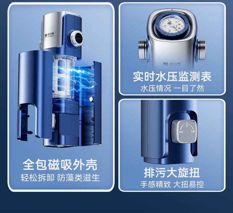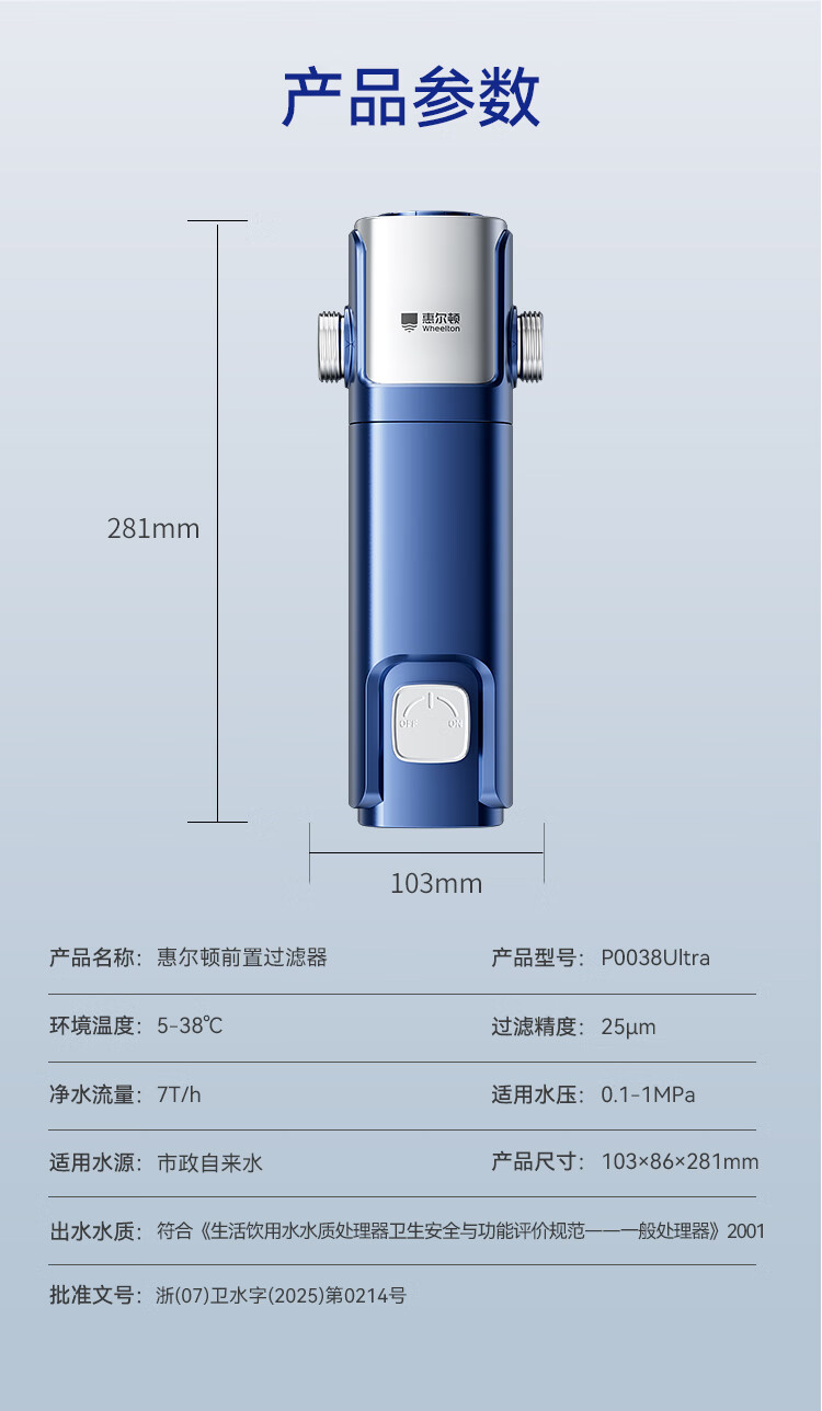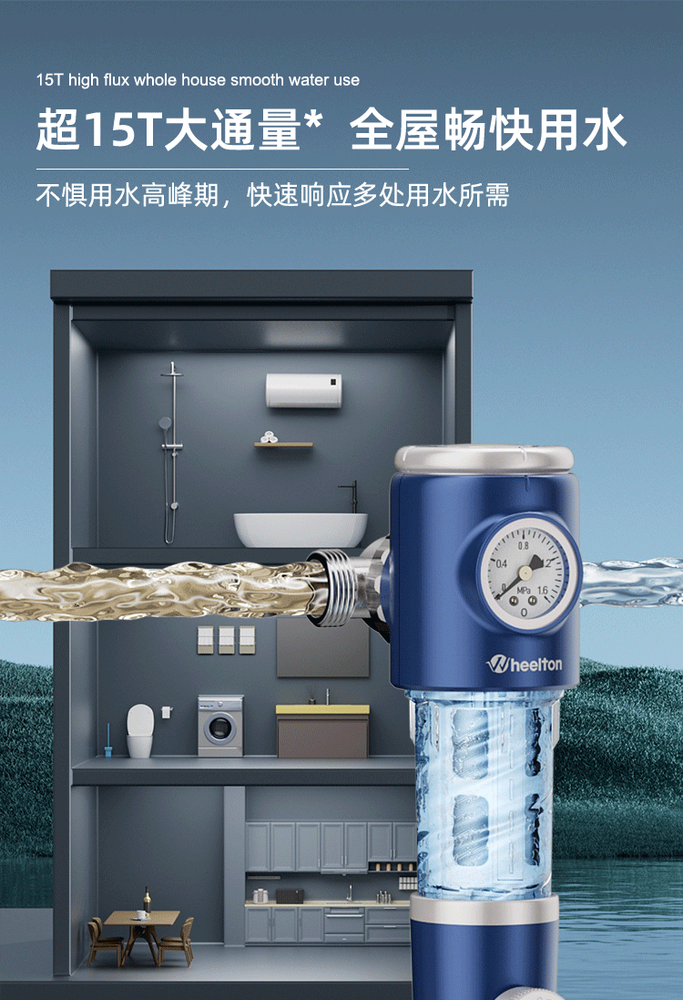 惠尔顿(WHEELTON)前置过滤器滤水器不锈钢盾前置全屋净水器入户自来水反冲洗自动洗15T大流量防爆抗冻净水设备P0038 【P0038ultra】25微米精滤