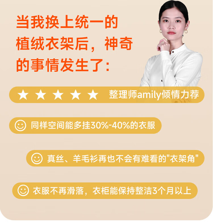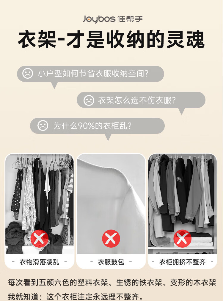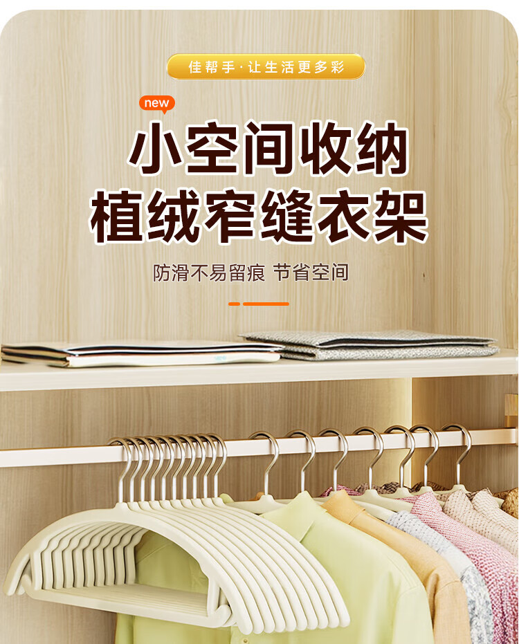 佳帮手衣架 防滑无痕植绒晾衣架20只装衣柜收纳衣挂衣服撑子收纳师专用