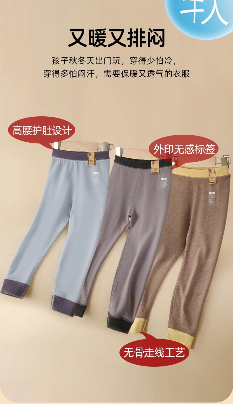 棉子幼A类无骨儿童保暖裤学生校服神器男童女童小中大童初高中高腰秋裤 暖肤粉 170 建议身高155-165cm体重120斤以内