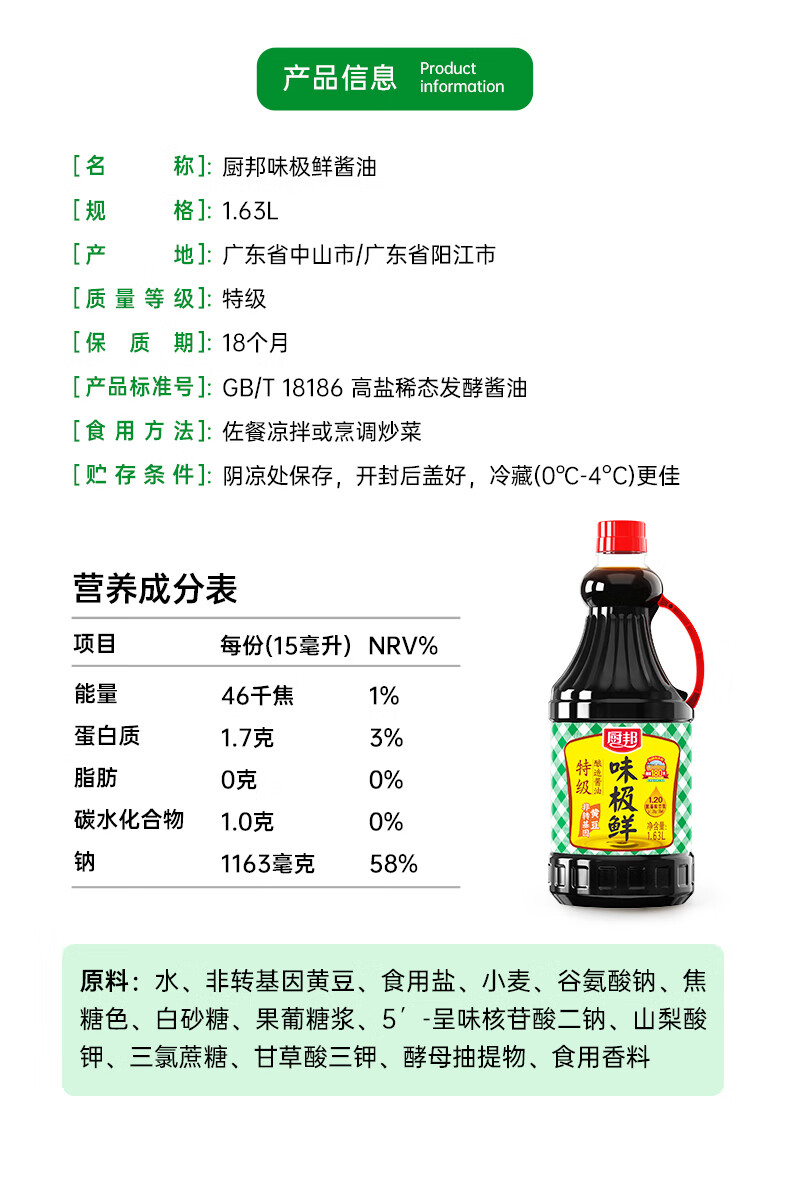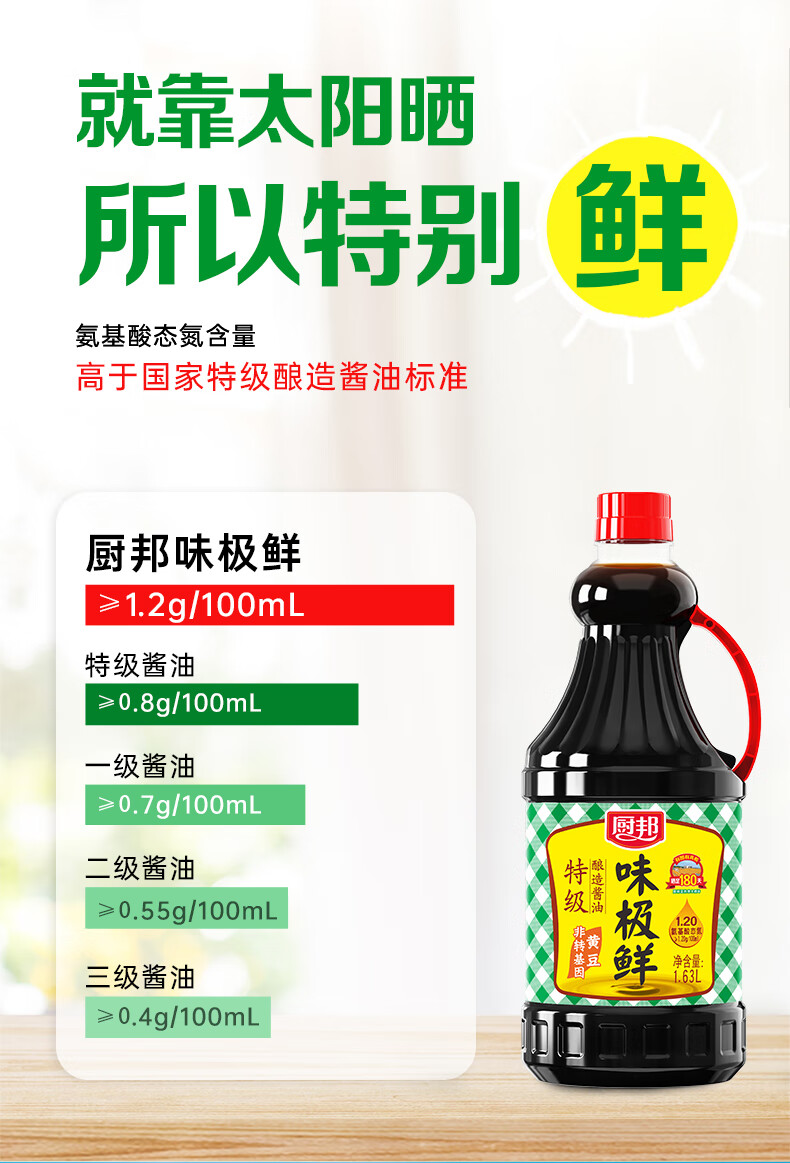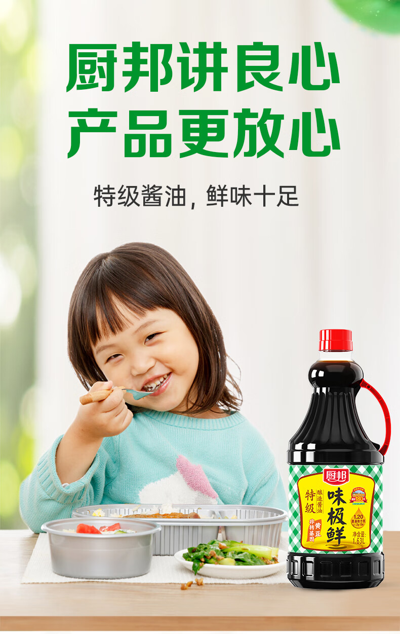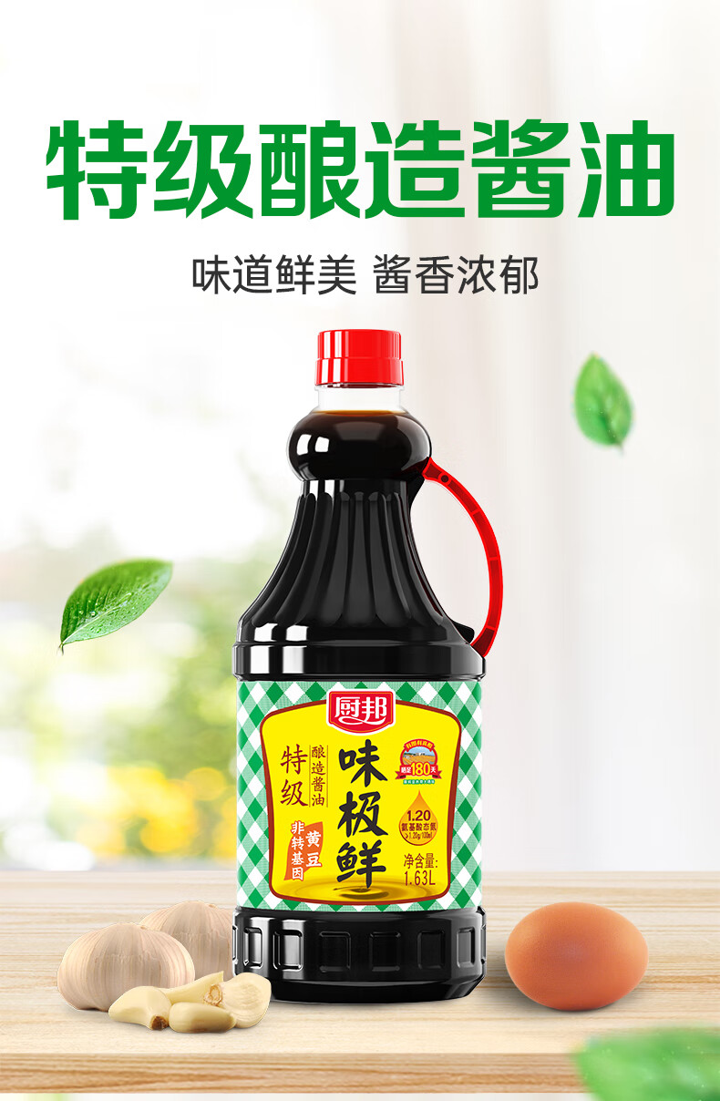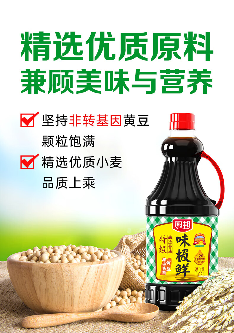 厨邦酱油 味极鲜酱油 生抽【特级黄豆酱油】1.63L 酿造酱油 调味品