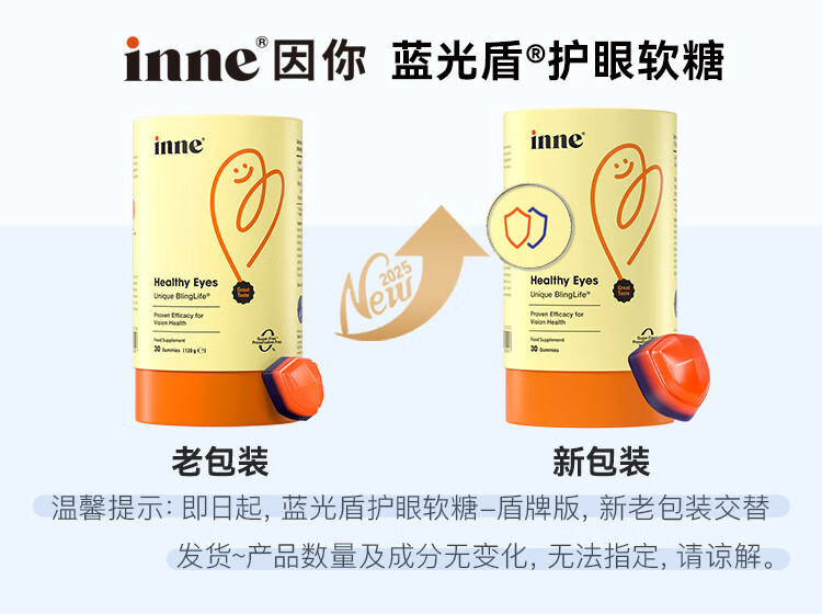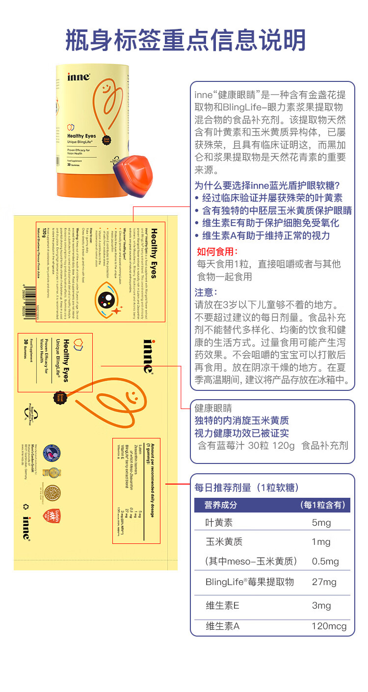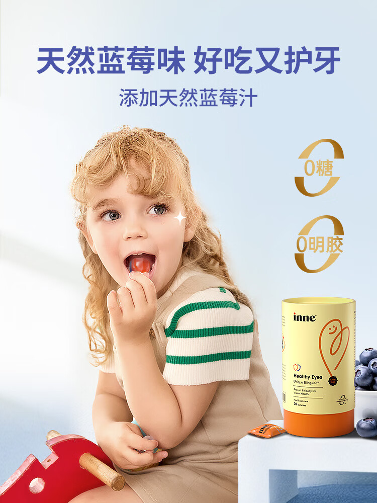 Inne因你蓝光盾叶黄素儿童护眼软糖蓝莓花青素30粒*3罐