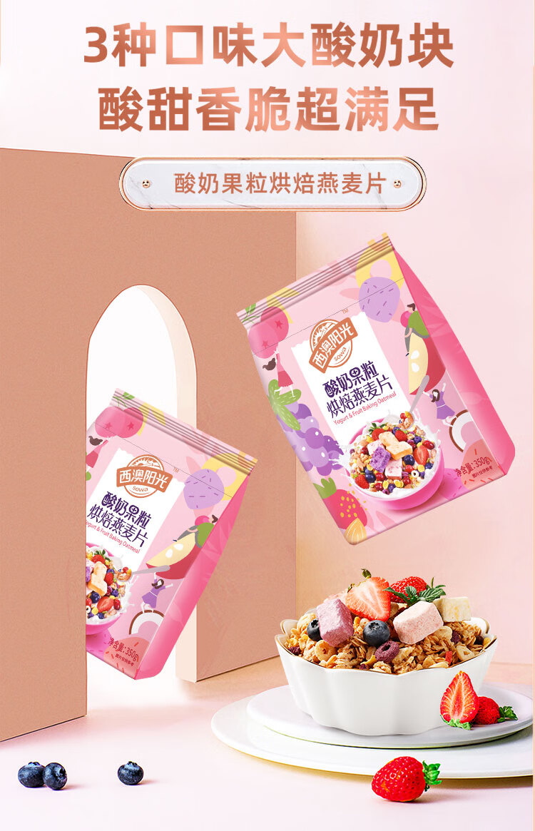 西麦酸奶果粒烘焙燕麦片350g 营养早餐五谷代餐干吃休闲零食