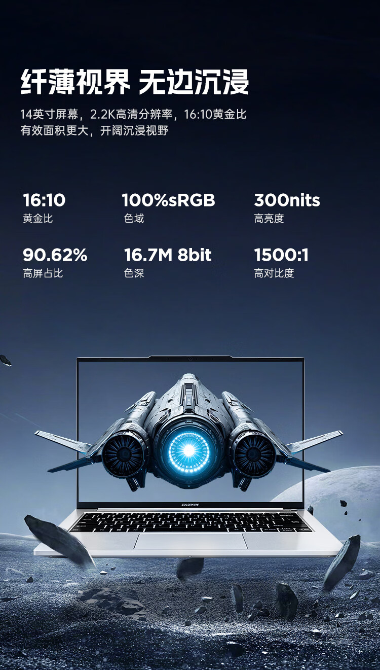 COLORFIRE E14 七彩虹橘宝14英寸轻薄笔记本电脑 办公学生轻薄本 锐龙R7-7735HS 32G 1TB 羽白 2.2K超清屏京东自营