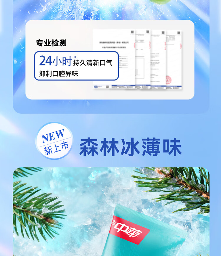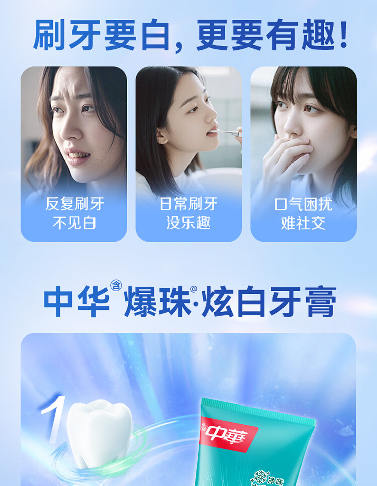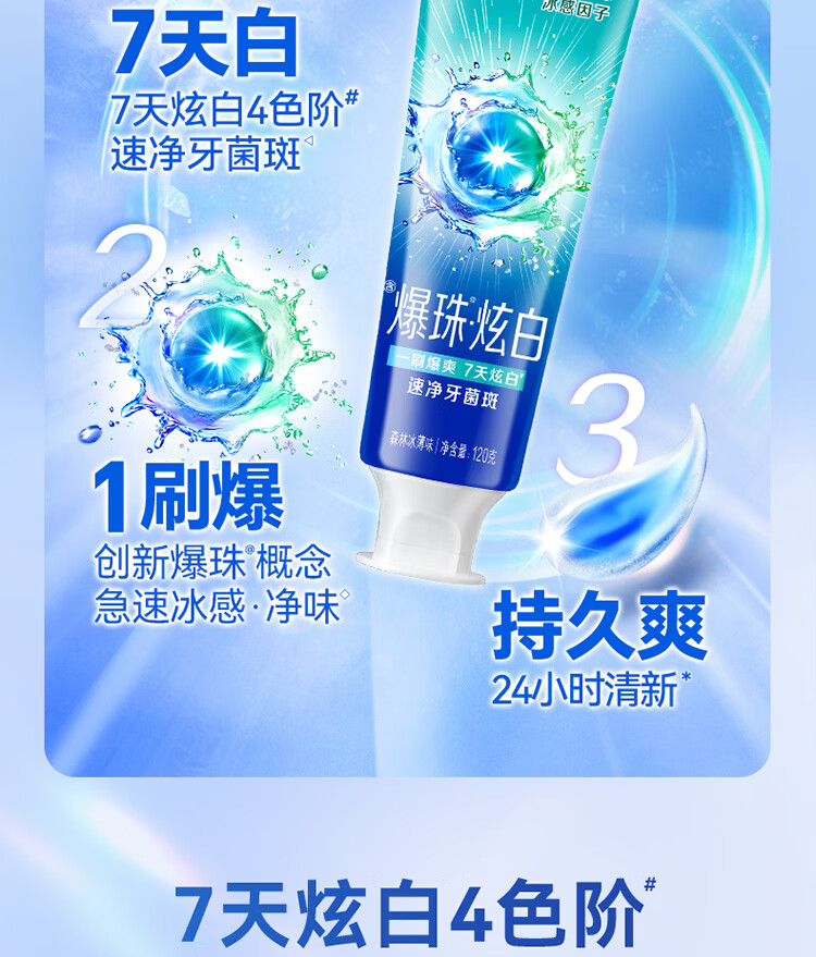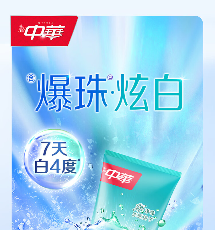 中华【重磅新品】爆珠炫白牙膏速净牙菌斑森林冰薄味120g*2支