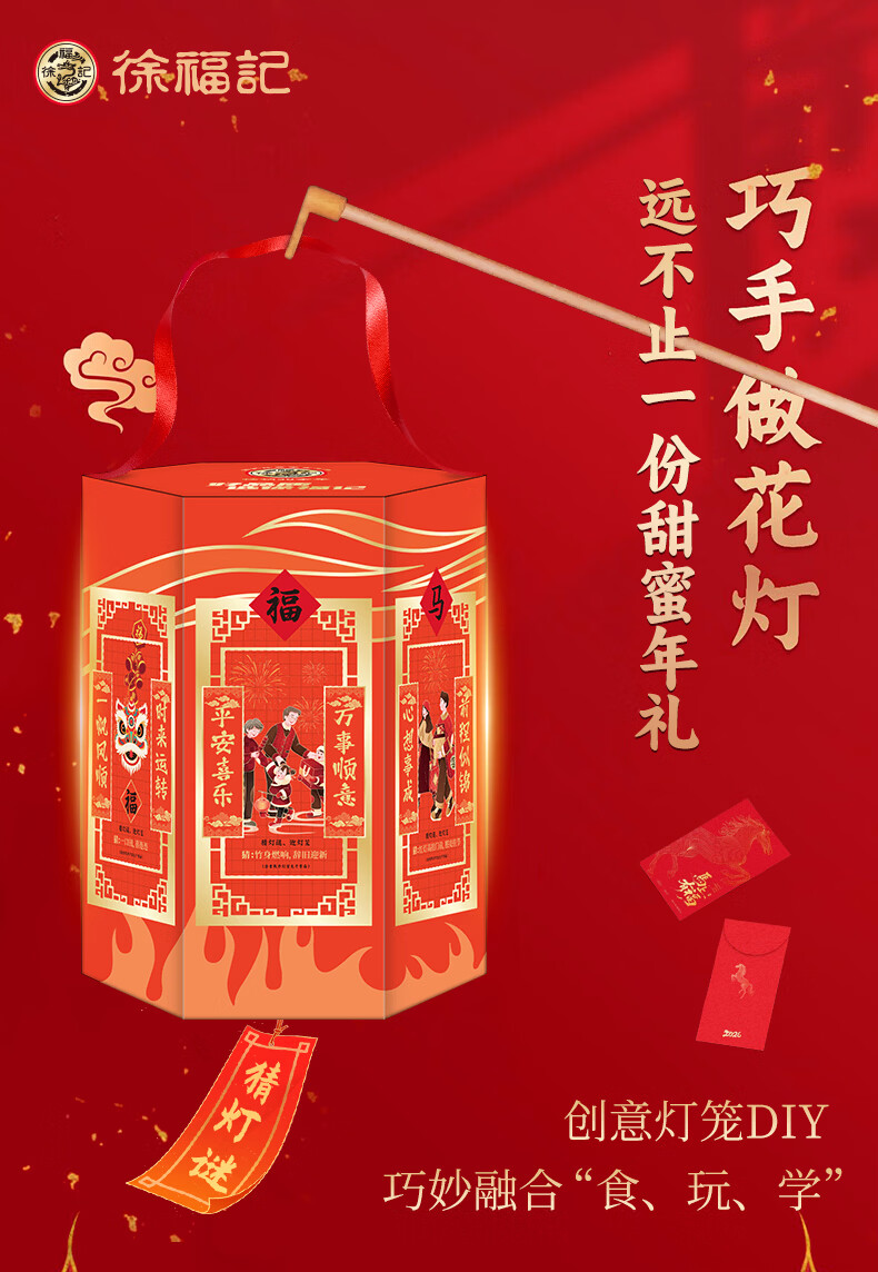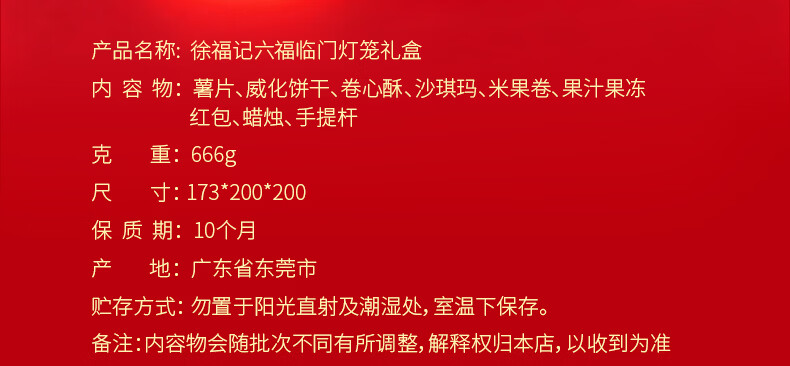 徐福记六福临门灯笼礼盒 年货礼盒 混合糕点果冻零食 DIY定制灯笼新年 【内赠红包】灯笼礼盒666g