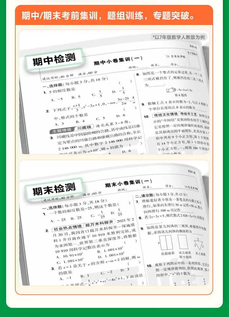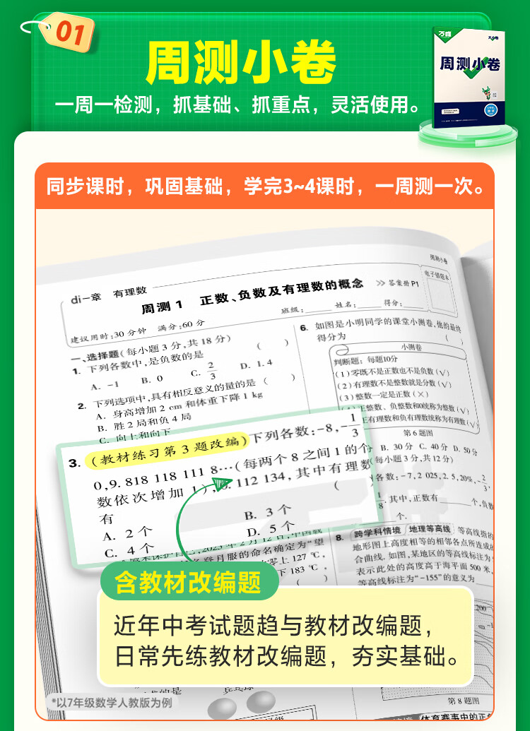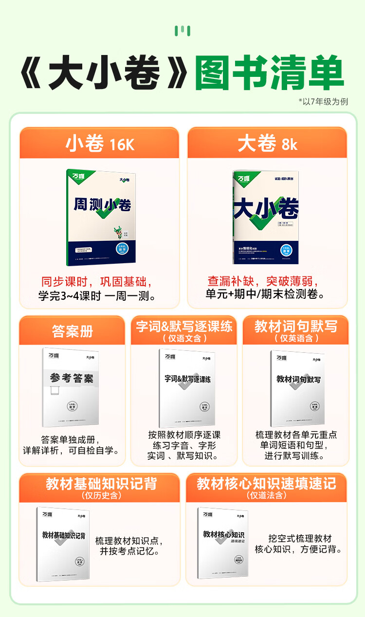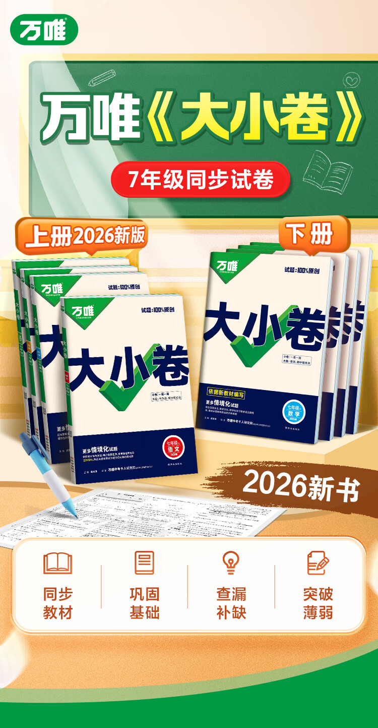万唯大小卷七年级下册2026春新版试卷初中初一上册下册7年级期末复习冲刺卷 单元同步测试卷万唯中考 七上生物【人教版】26版