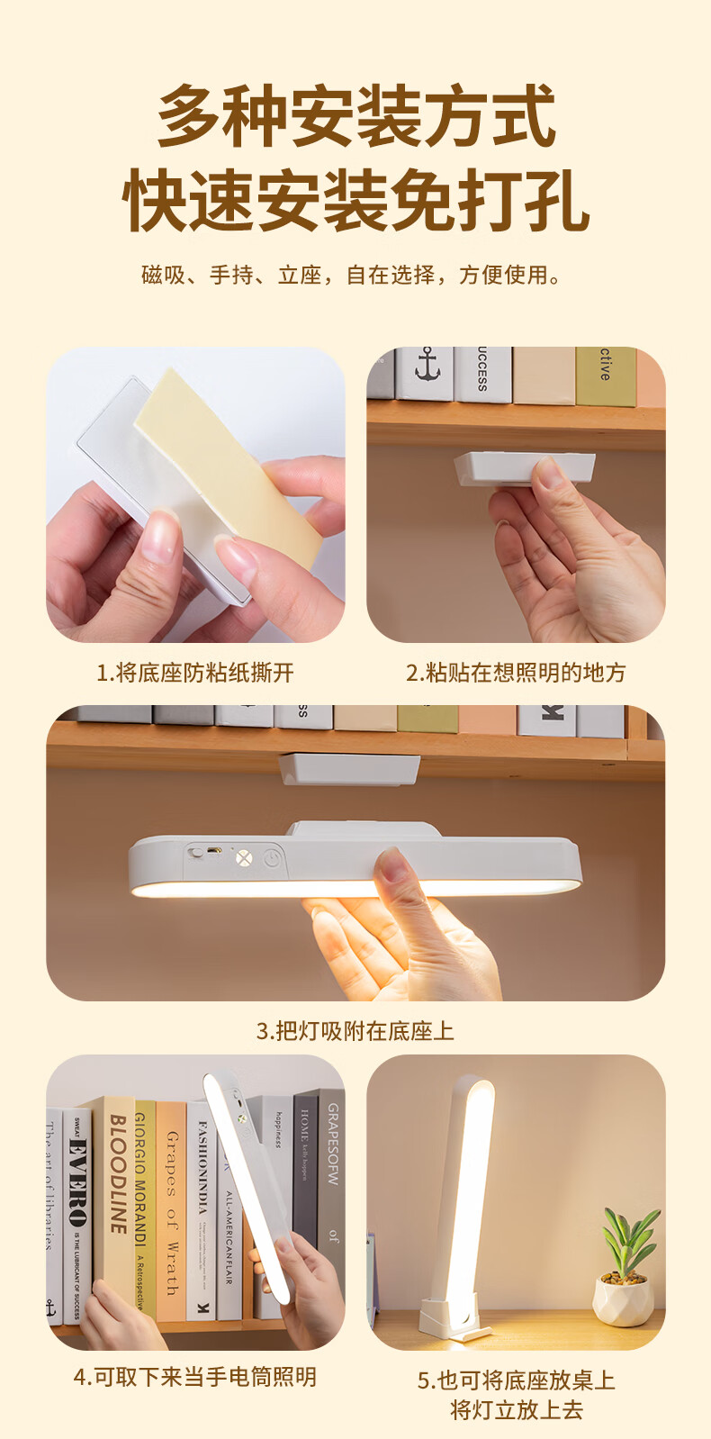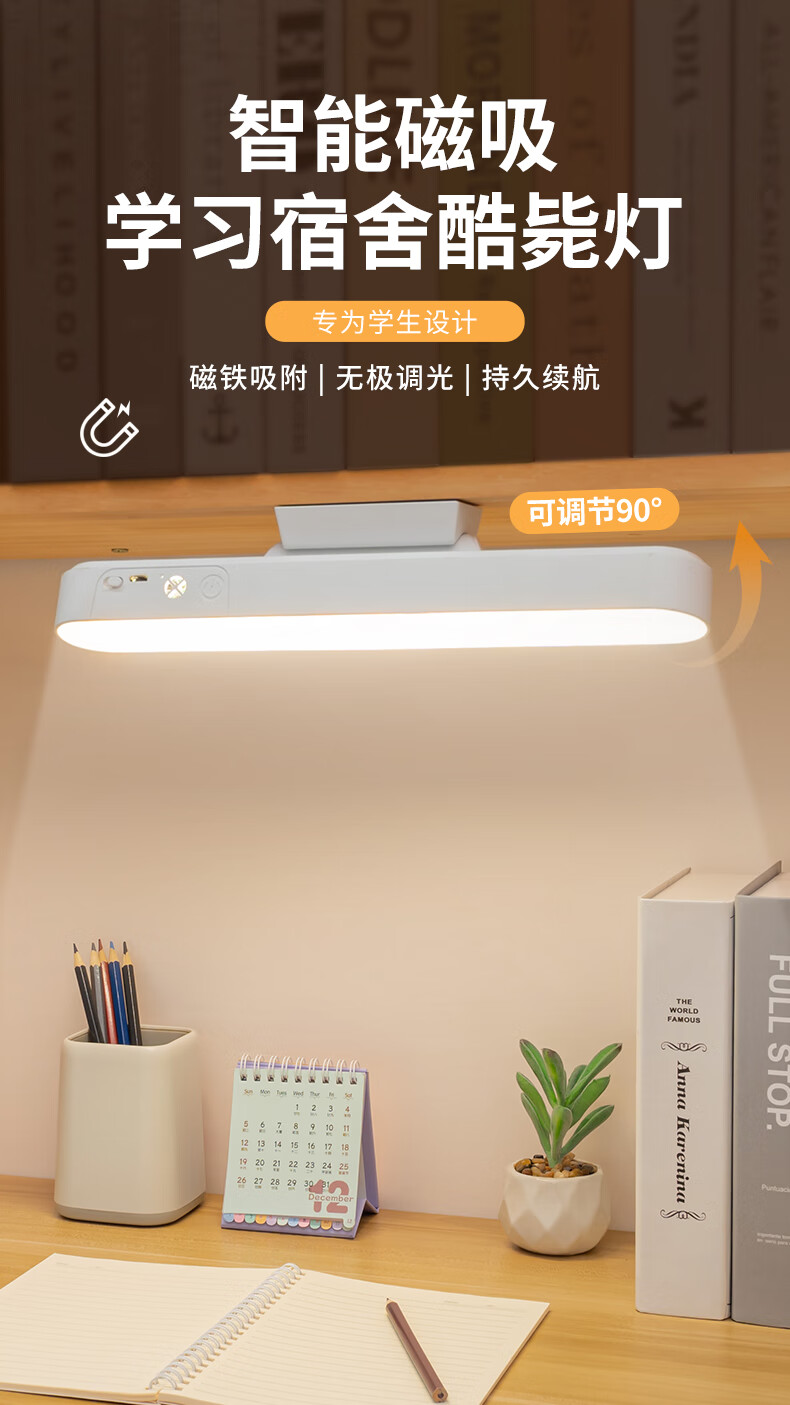 鑫捷新护眼台灯学生学习写作业阅读USB充电宿舍卧室磁吸式LED酷毙灯 充电款+立架+充电线【AAA护眼】
