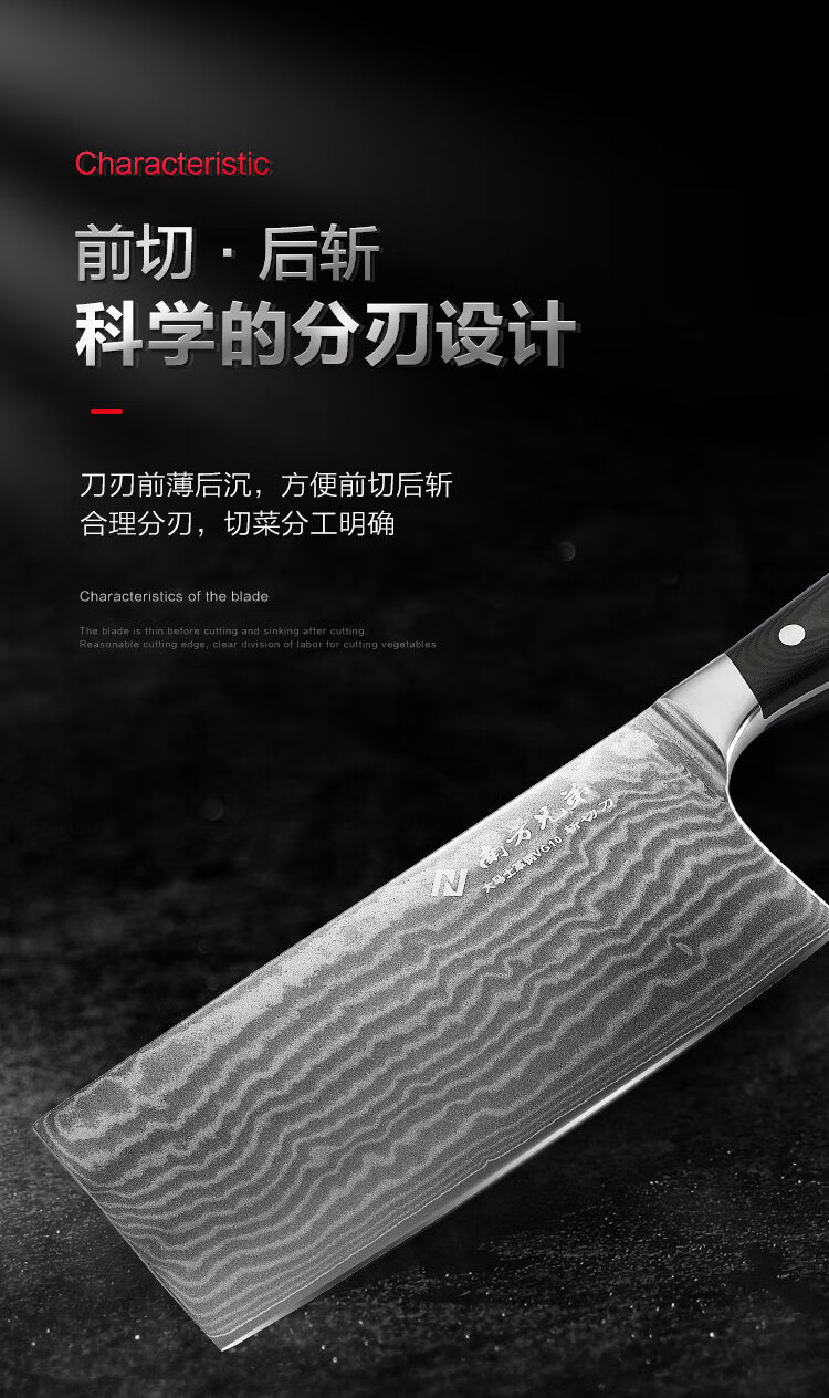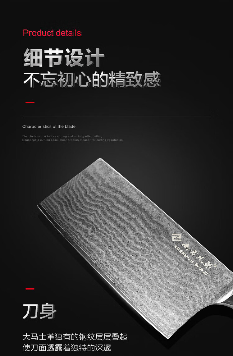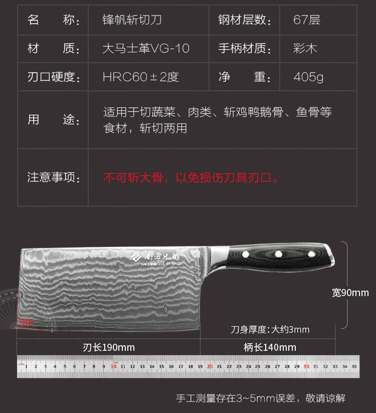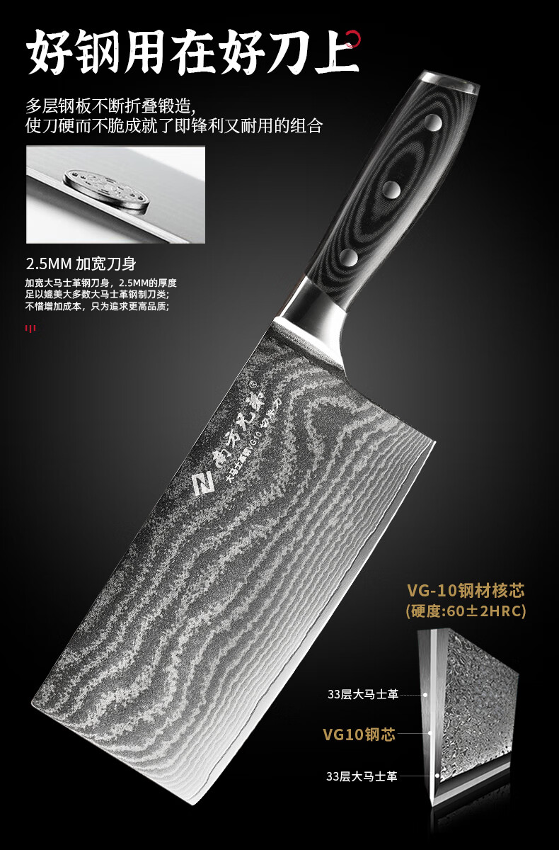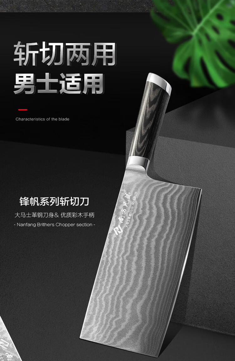 南方兄弟大马士革钢斩切刀 专业料理切肉刀 斩鸡鸭鹅砍骨刀菜刀家用锋利刀 锋帆斩切刀(斩切两用)