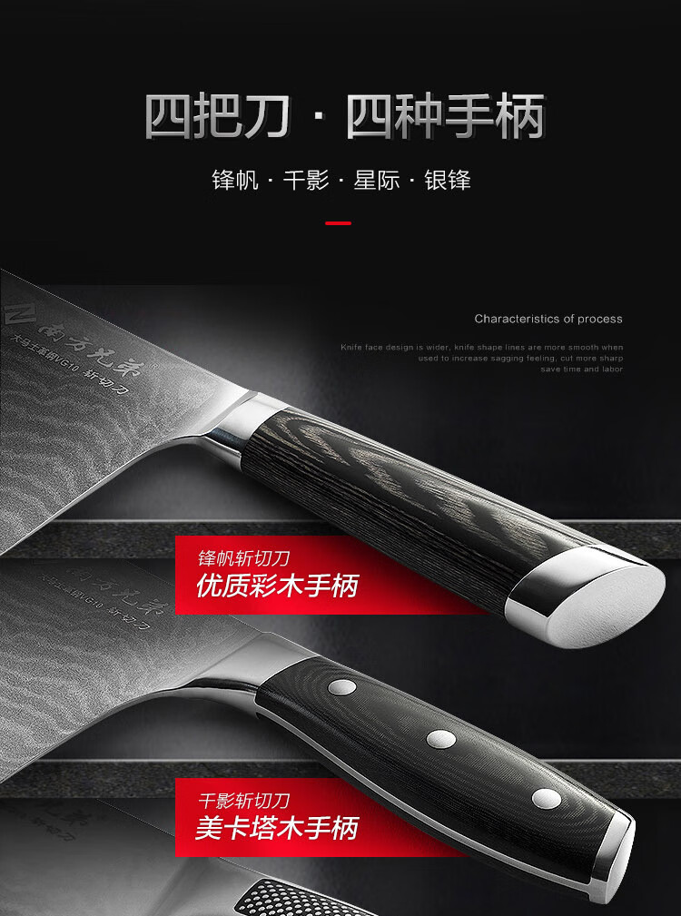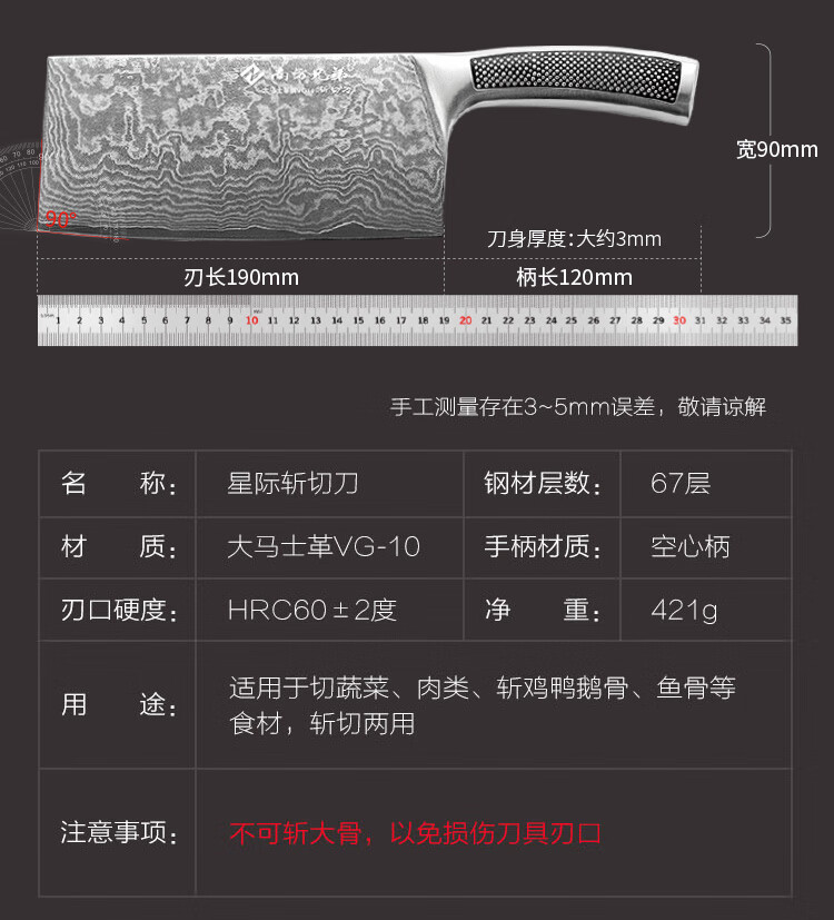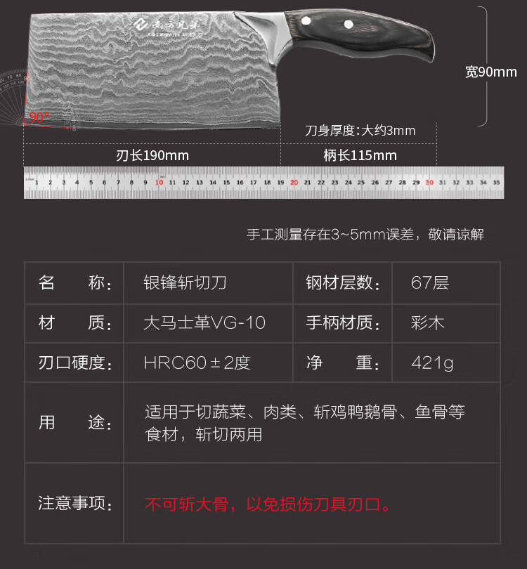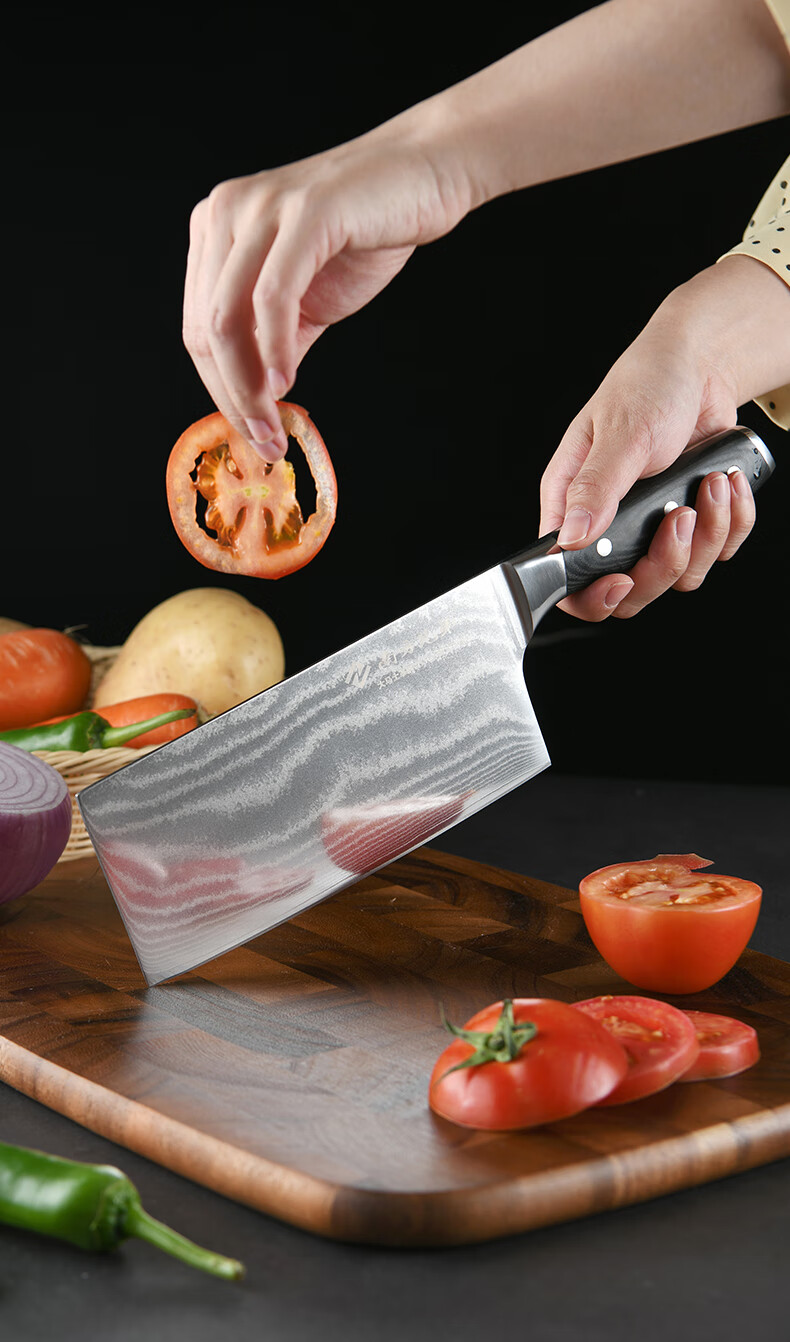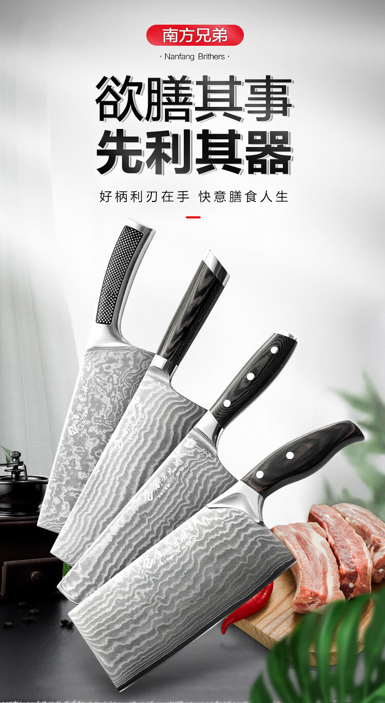 南方兄弟大马士革钢斩切刀 专业料理切肉刀 斩鸡鸭鹅砍骨刀菜刀家用锋利刀 锋帆斩切刀(斩切两用)