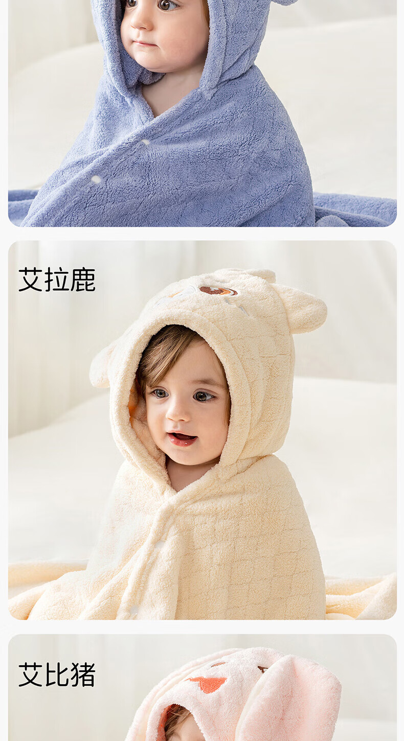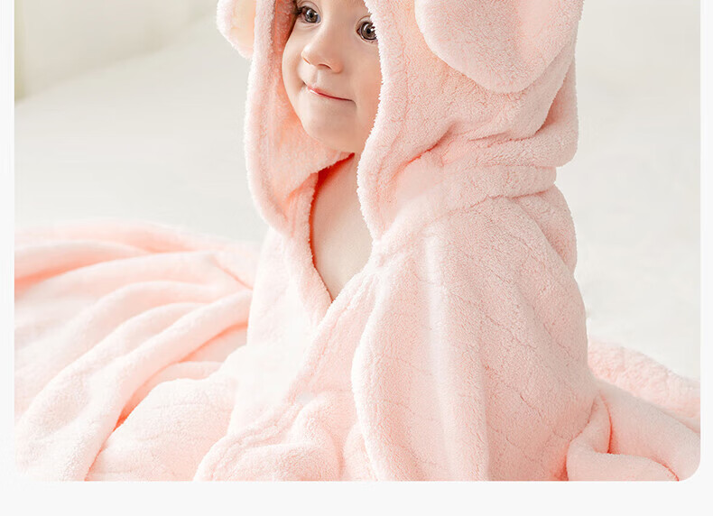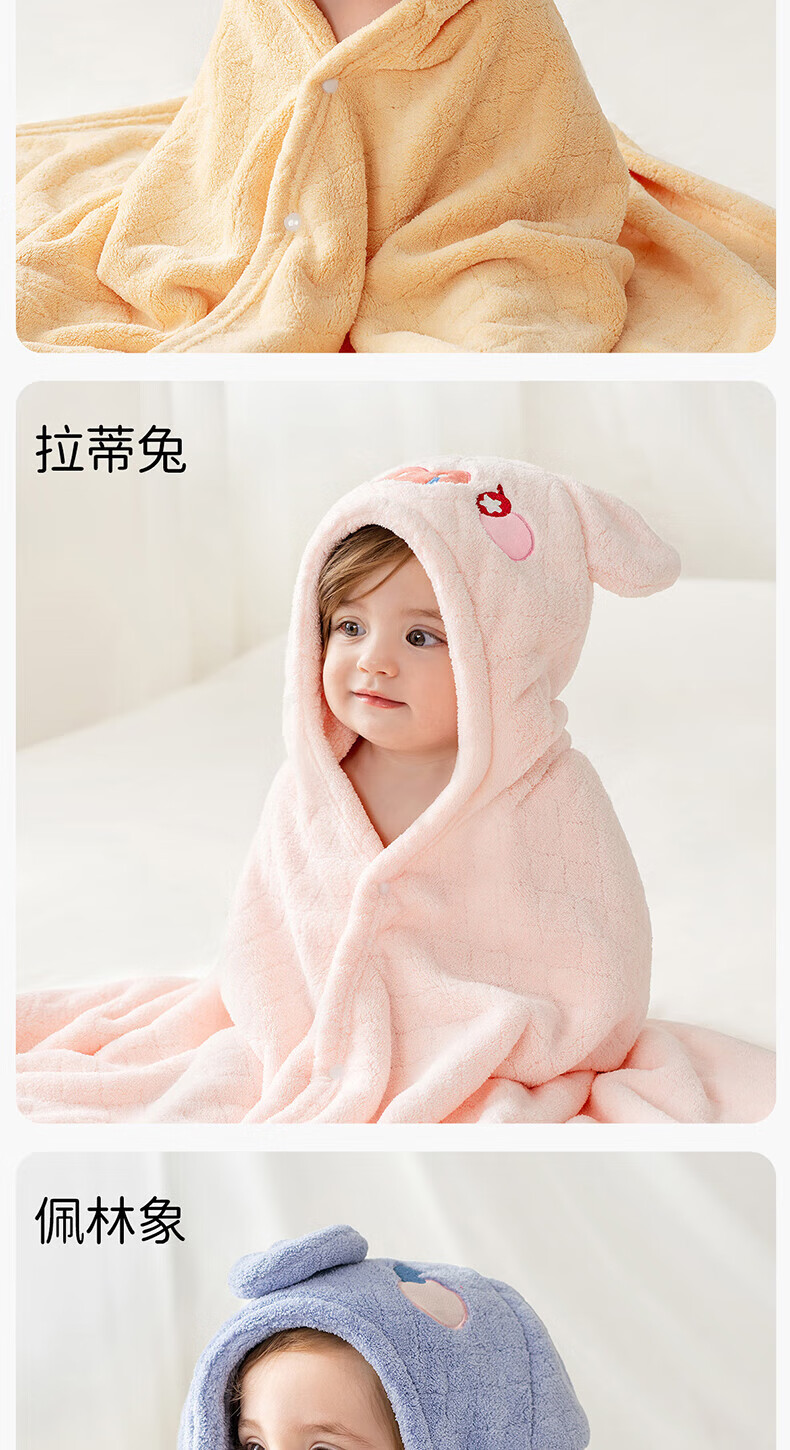 欧孕儿童浴巾男女宝卡通珊瑚绒浴袍不掉毛连帽斗篷婴幼儿多功能毯 拉蒂兔 150cmx100cm