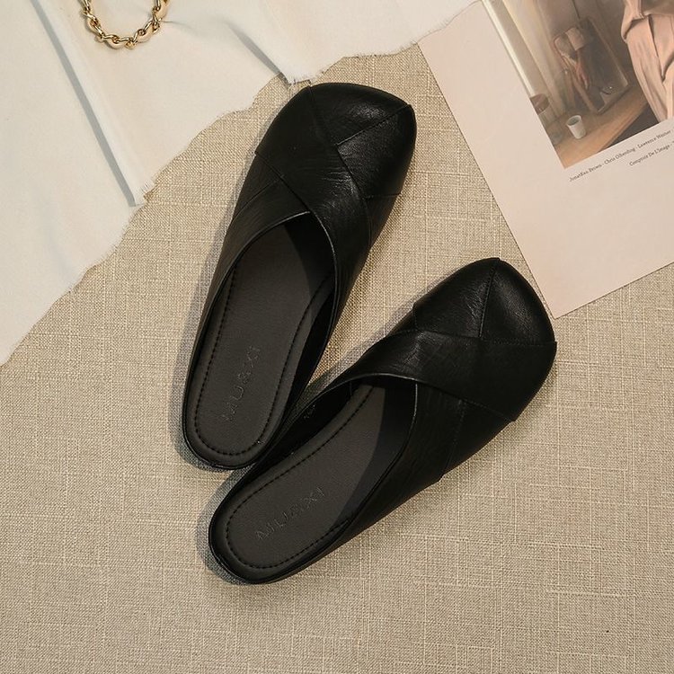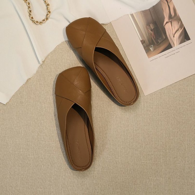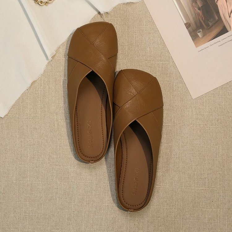 回力洞法式包头拖鞋女士夏季外穿平底包头脚蹬穆勒裙子2025懒人新款凉拖 咖啡色 40