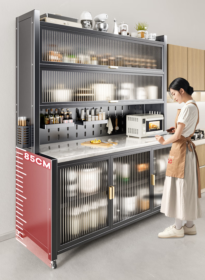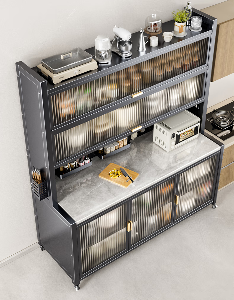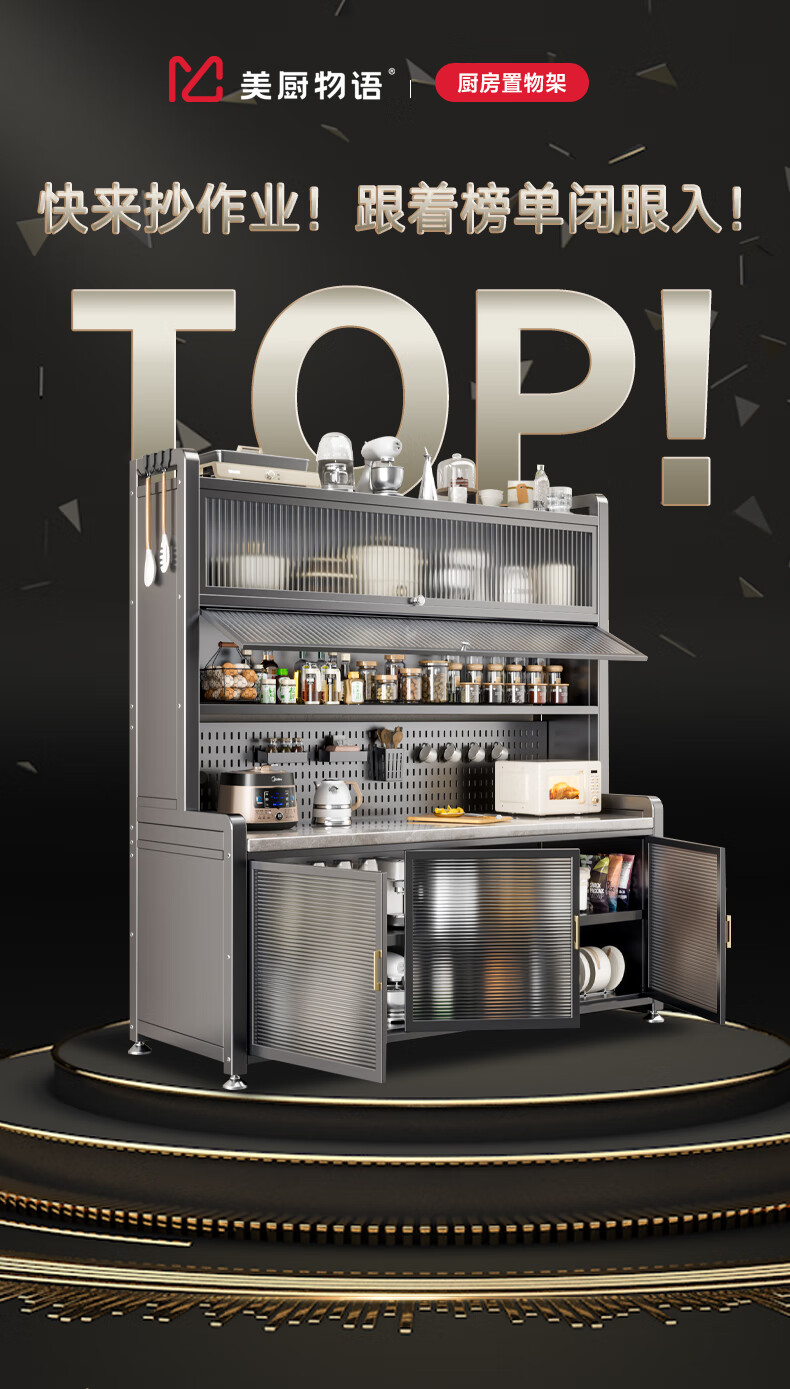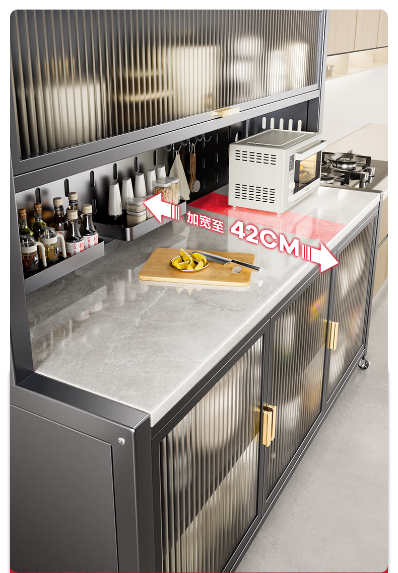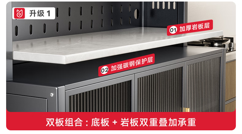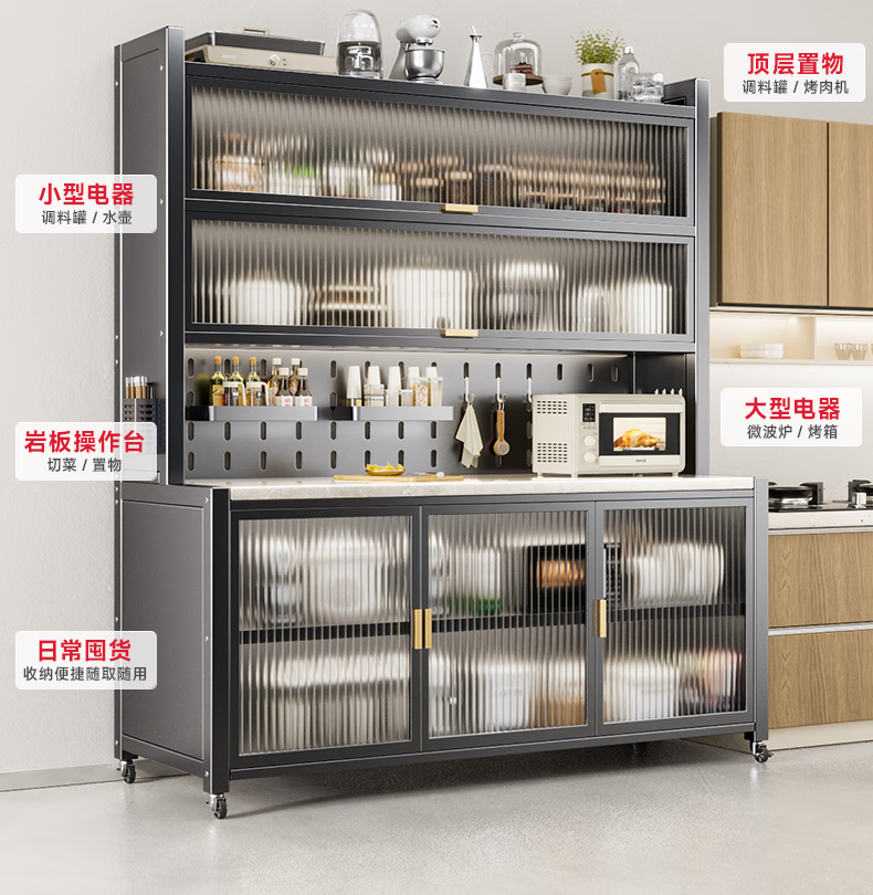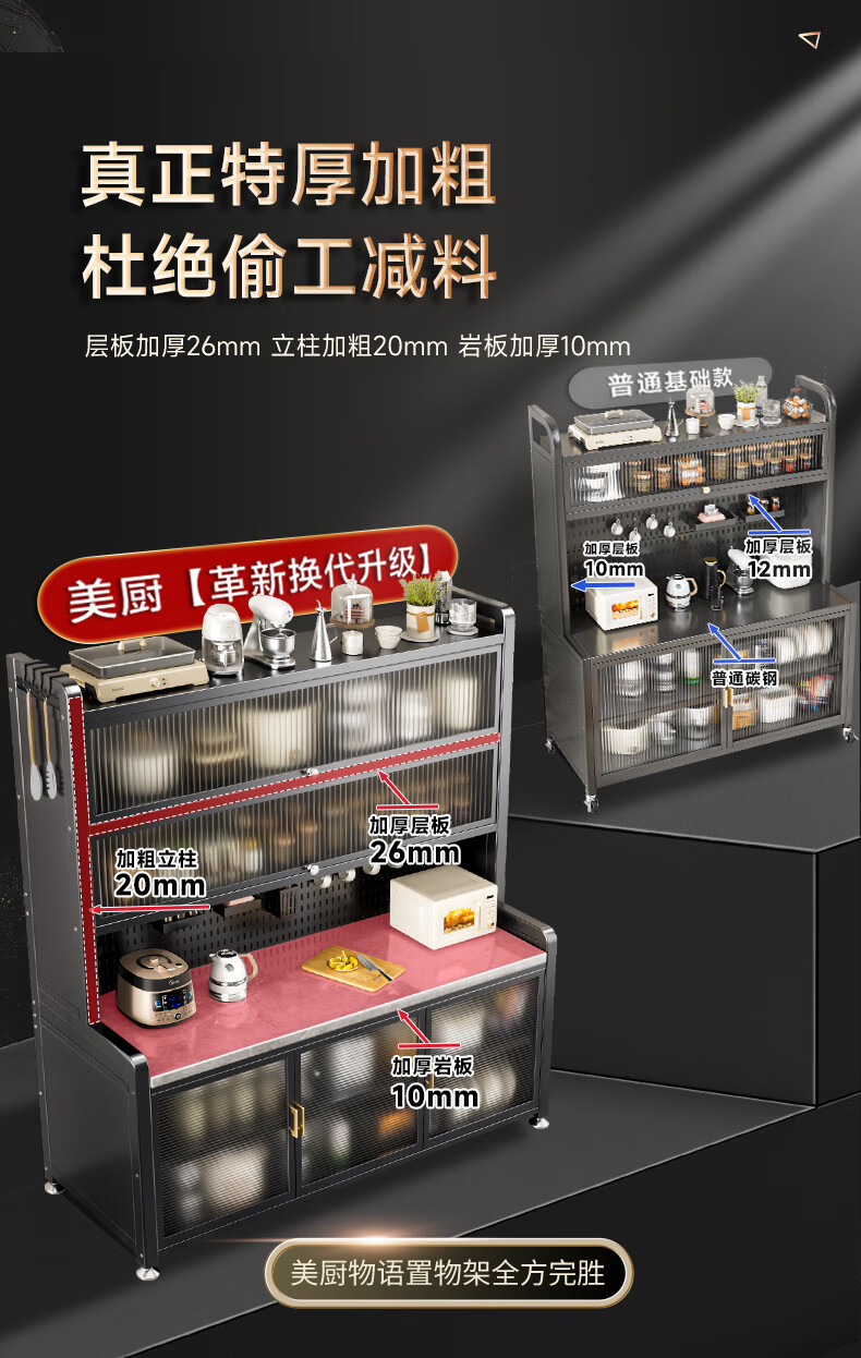 美厨物语厨房置物架落地餐边柜橱柜收纳柜厨柜储物柜子碗柜微波炉烤箱架子 【豪华配件】岩板款*灰6层120长