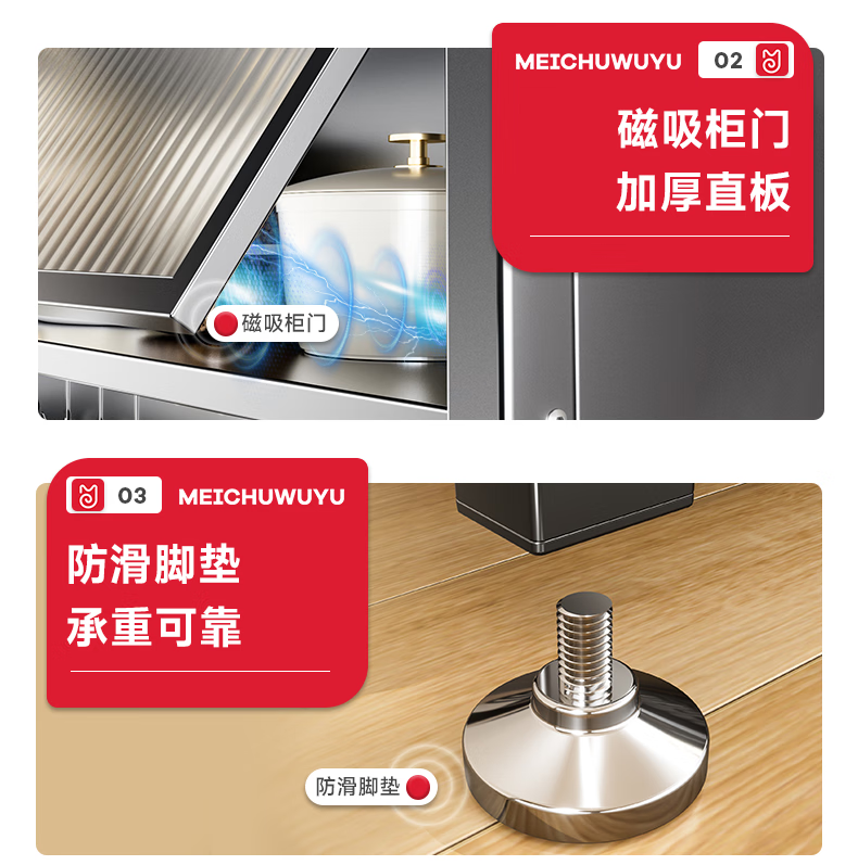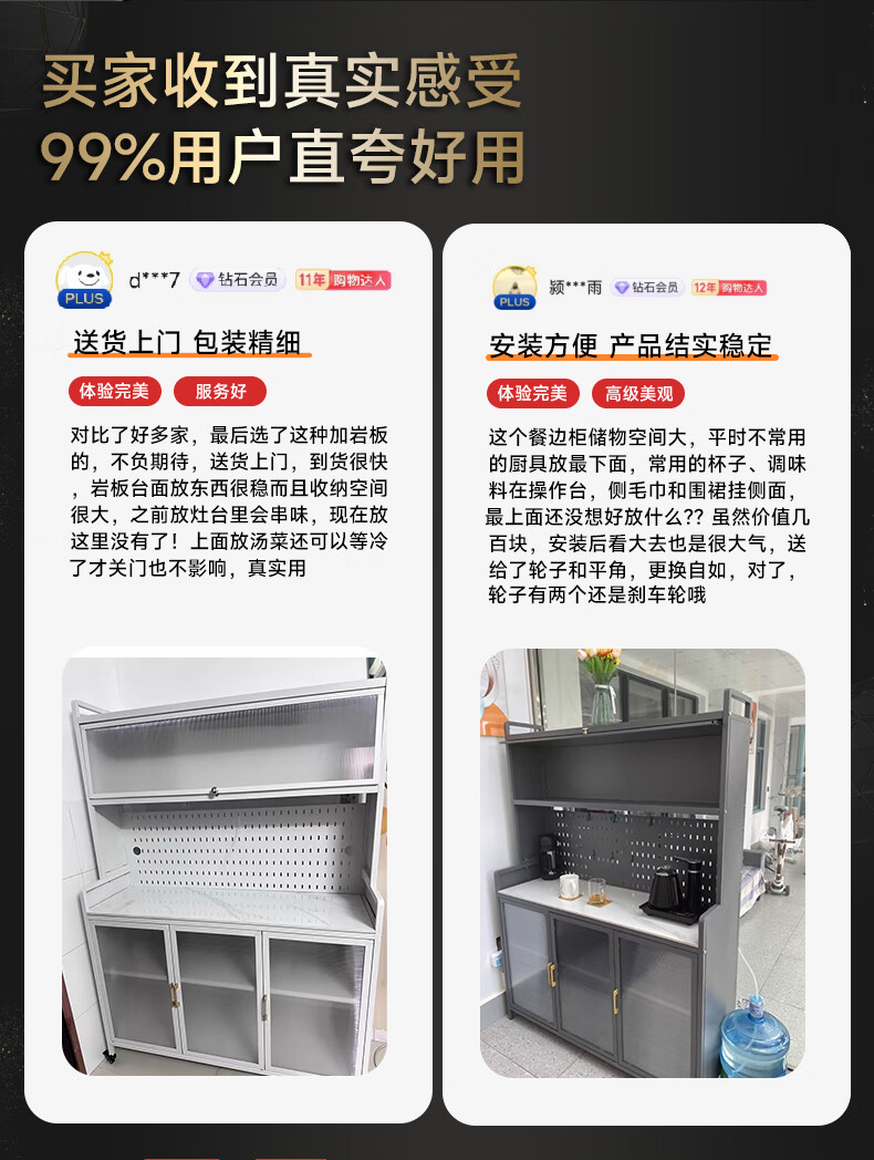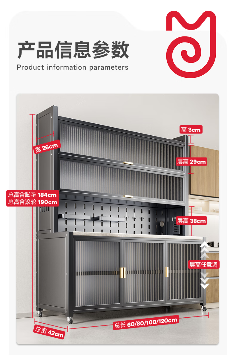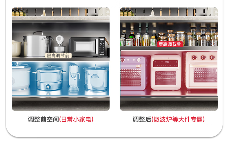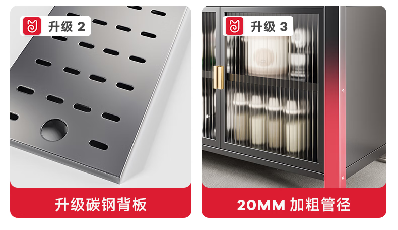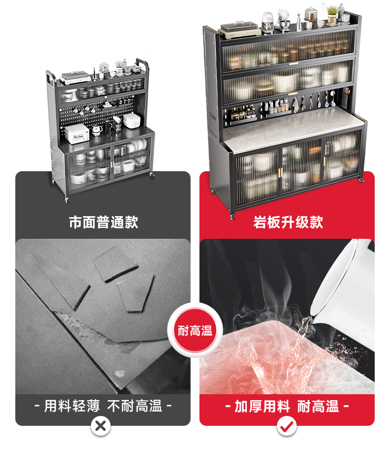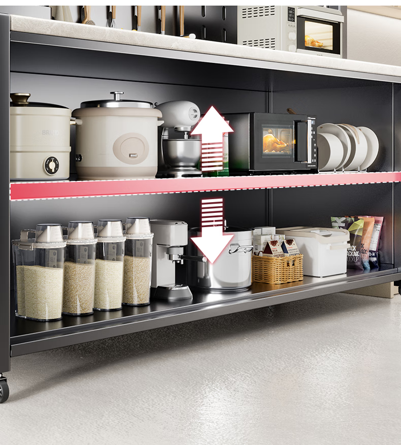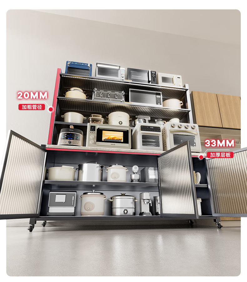 美厨物语厨房置物架落地餐边柜橱柜收纳柜厨柜储物柜子碗柜微波炉烤箱架子 【豪华配件】岩板款*灰6层120长