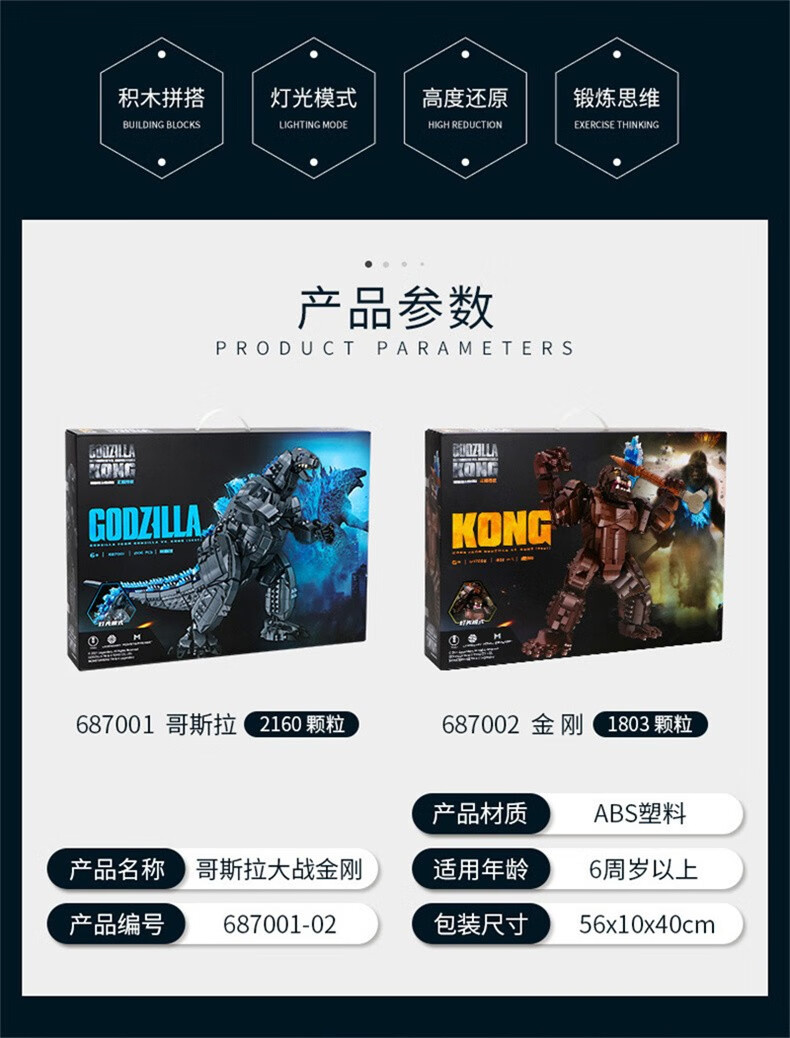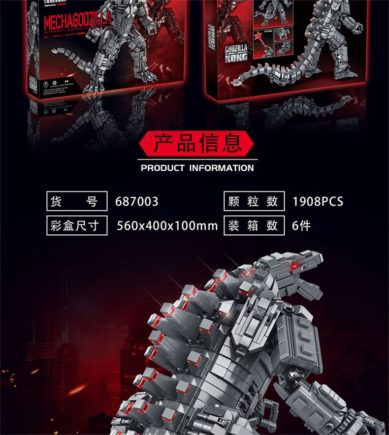 赟娅积木玩具男孩大型机械哥斯拉金刚成人高难度男孩生日礼物 1446颗机械粒哥斯拉