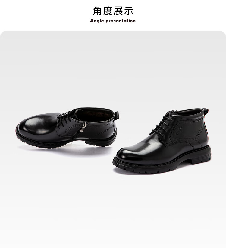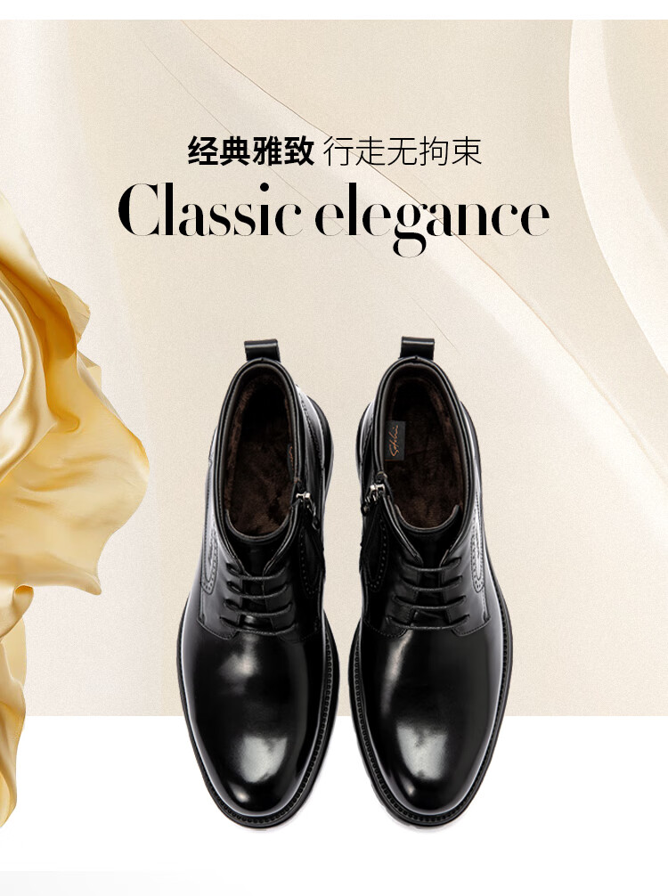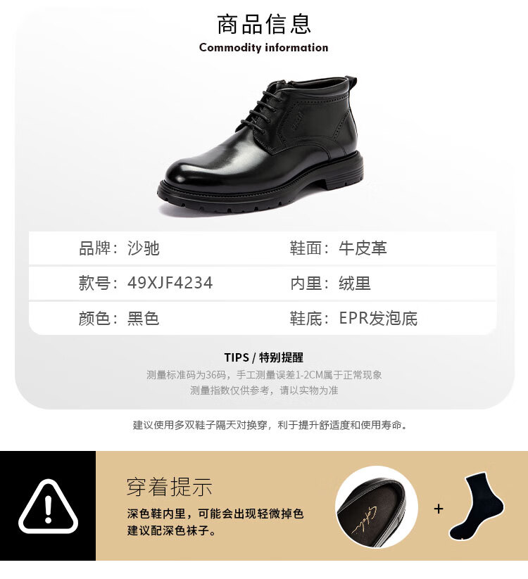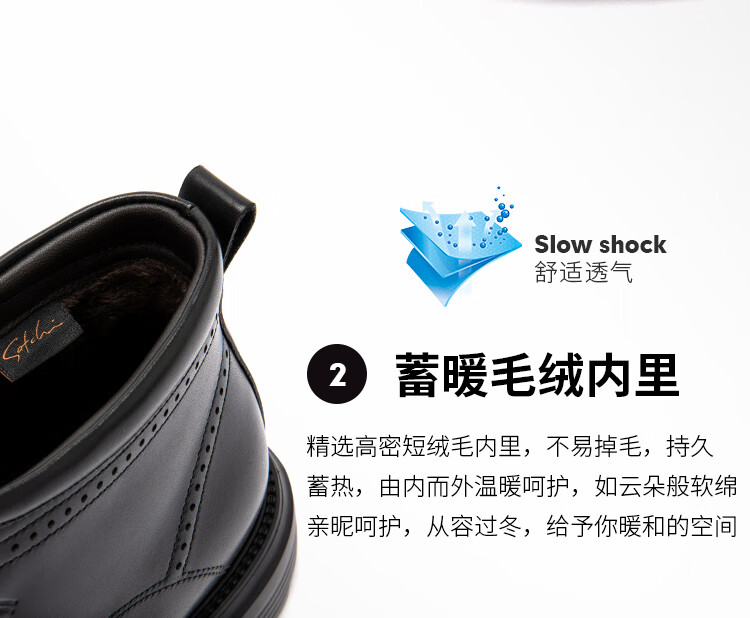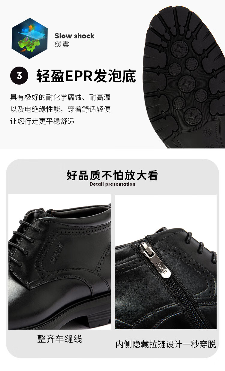 沙驰(SATCHI)男鞋【牛皮】加绒防寒保暖新款商务正装男靴棉靴马丁靴切尔西靴 黑色(49XJF4234) 40 欧码(选小一码)