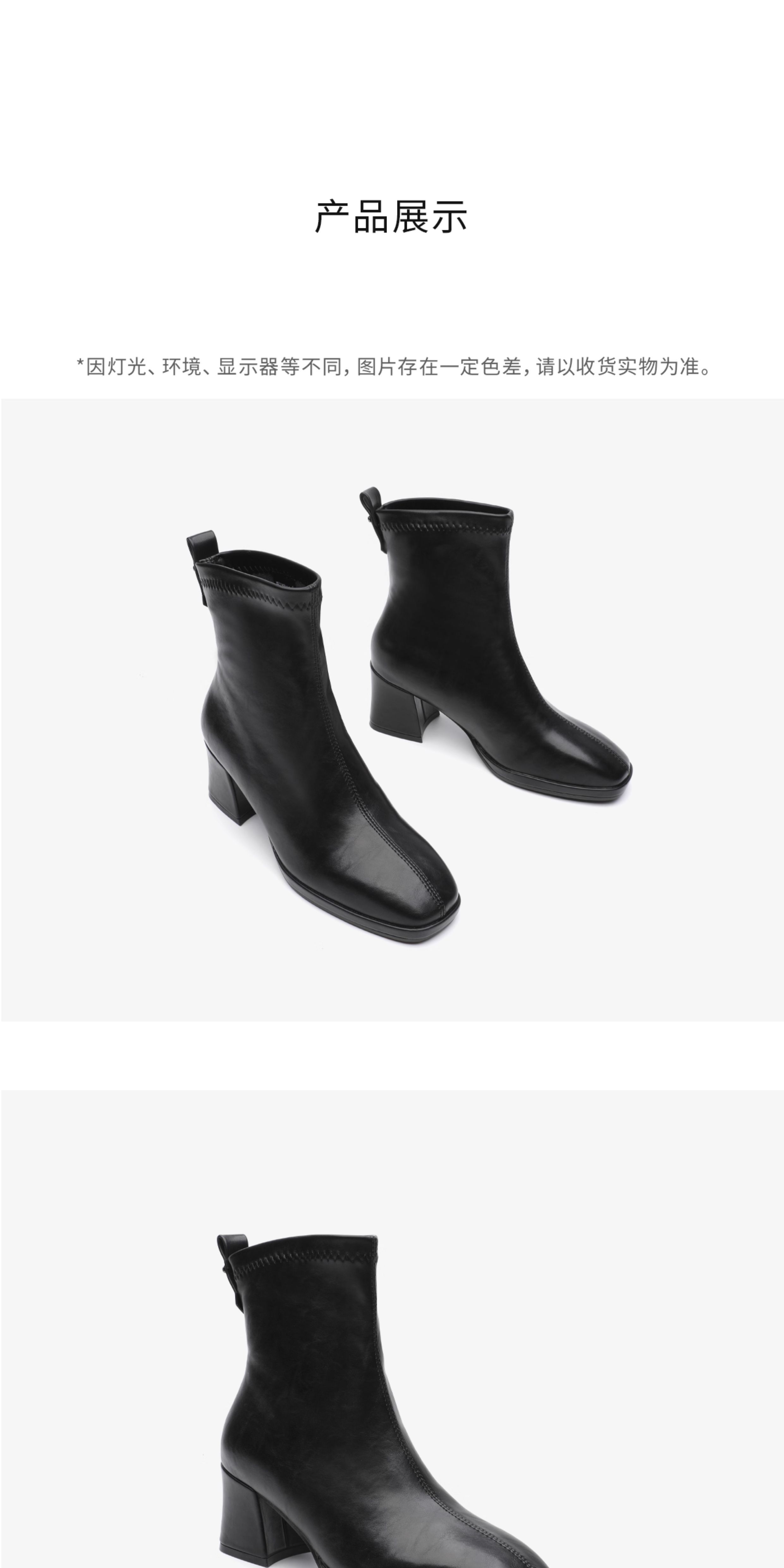 月芽儿2025年秋季季新款方头短靴及裸靴法式高跟显瘦加绒瘦瘦靴女 绒里黑色01T 34