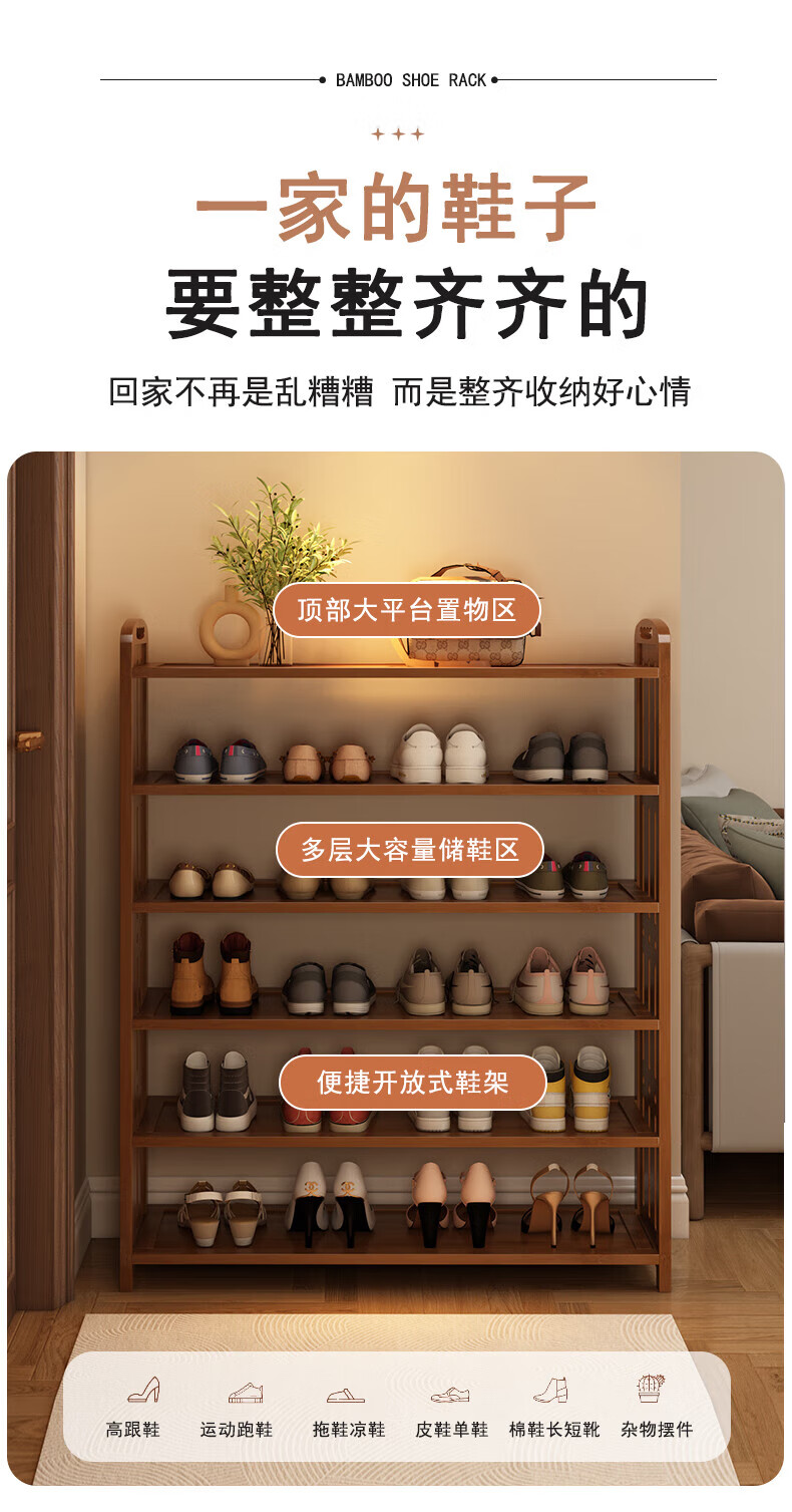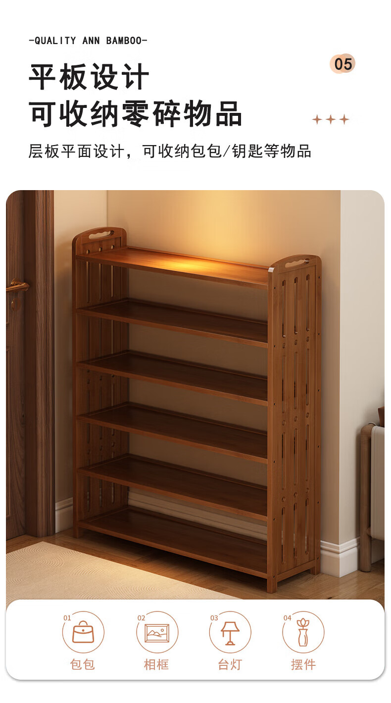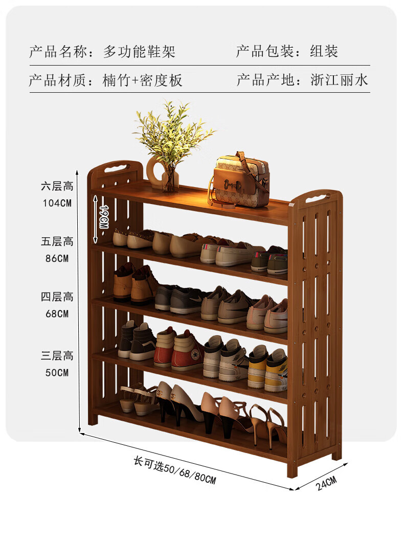 馨婺家简易多层鞋架家用门口收纳置物架入户玄关小窄鞋架出租屋室内鞋柜 茶色-3层50cm【稳固承重】