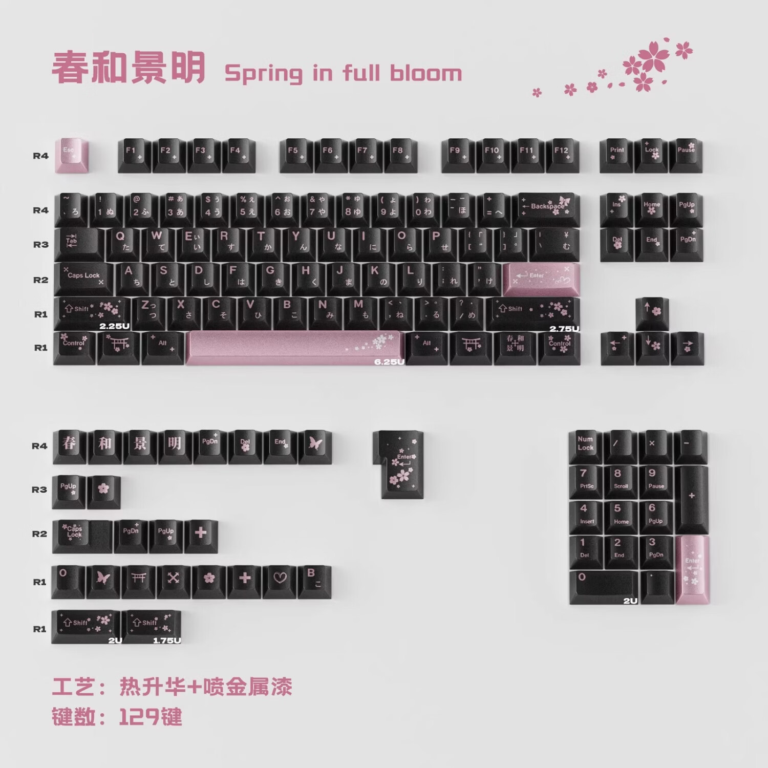 MINTCAPS薄荷糖春和景明黑/银色机械键盘键帽金属质感磨砂PBT热升华原厂适65/75 春和景明-黑色