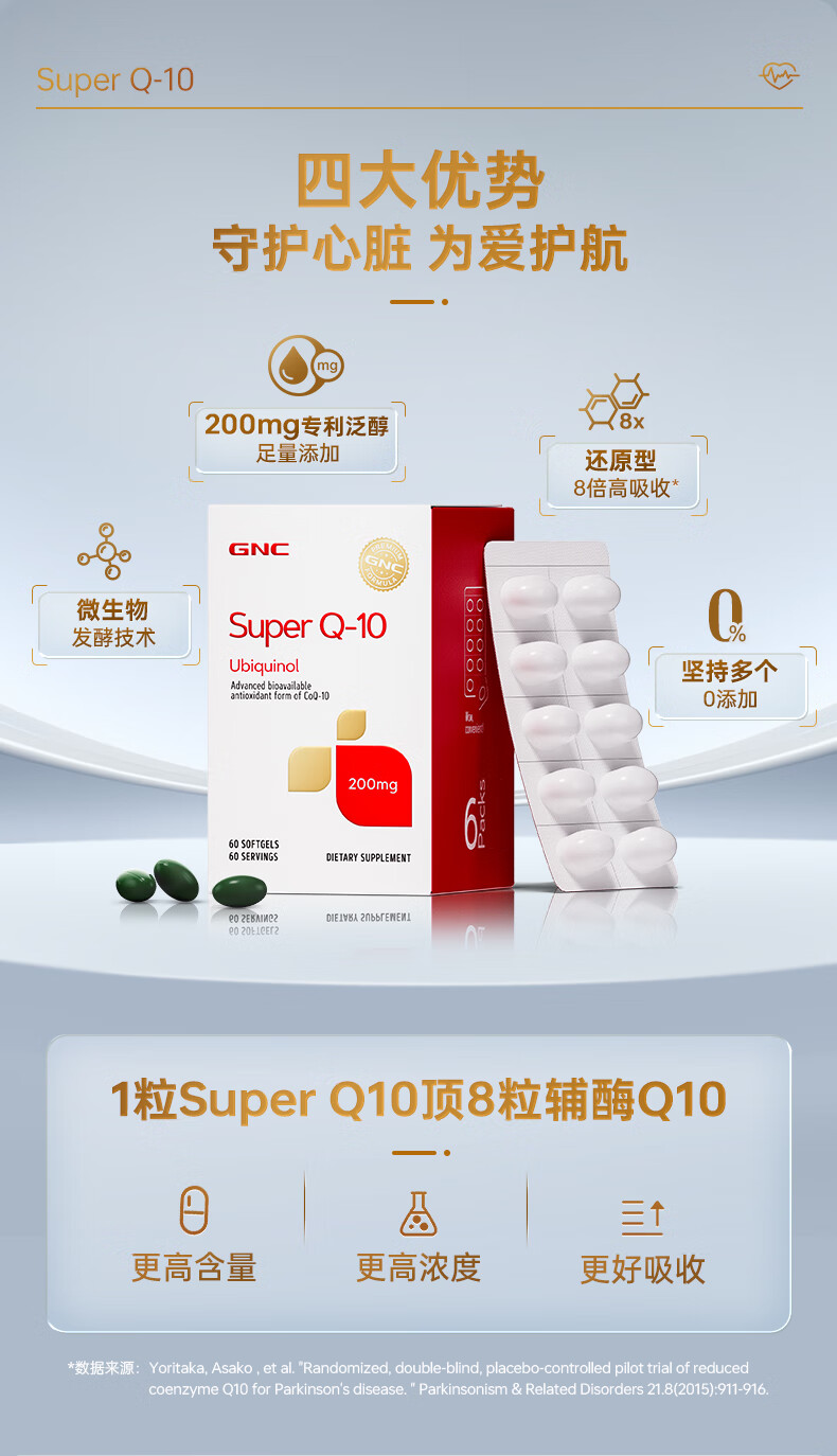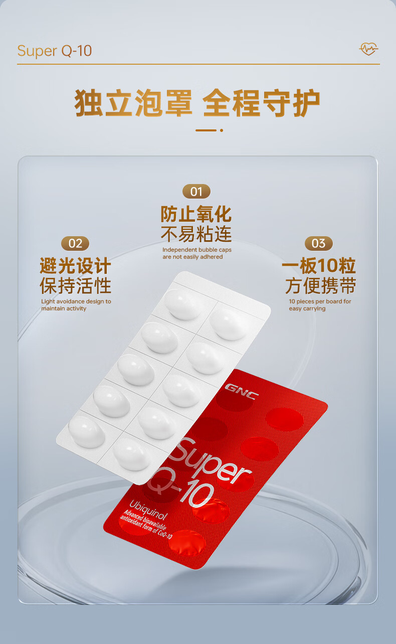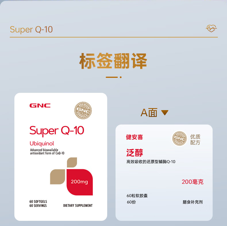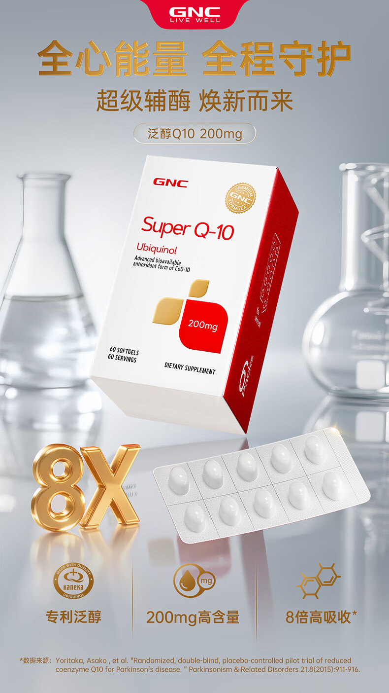 GNC健安喜还原型辅酶q10胶囊原装进口 coq10心脑血管备孕200mg60粒