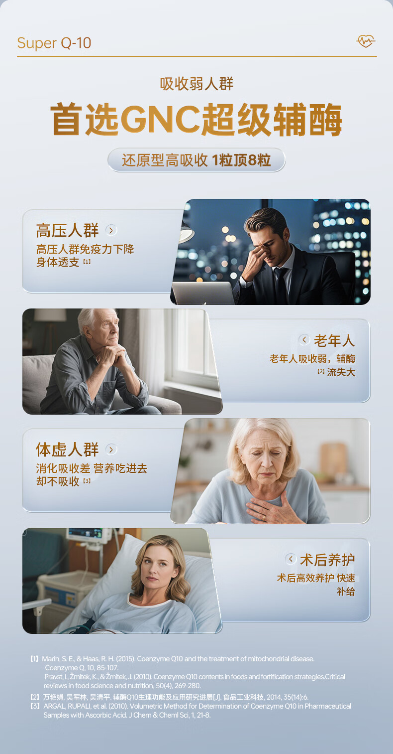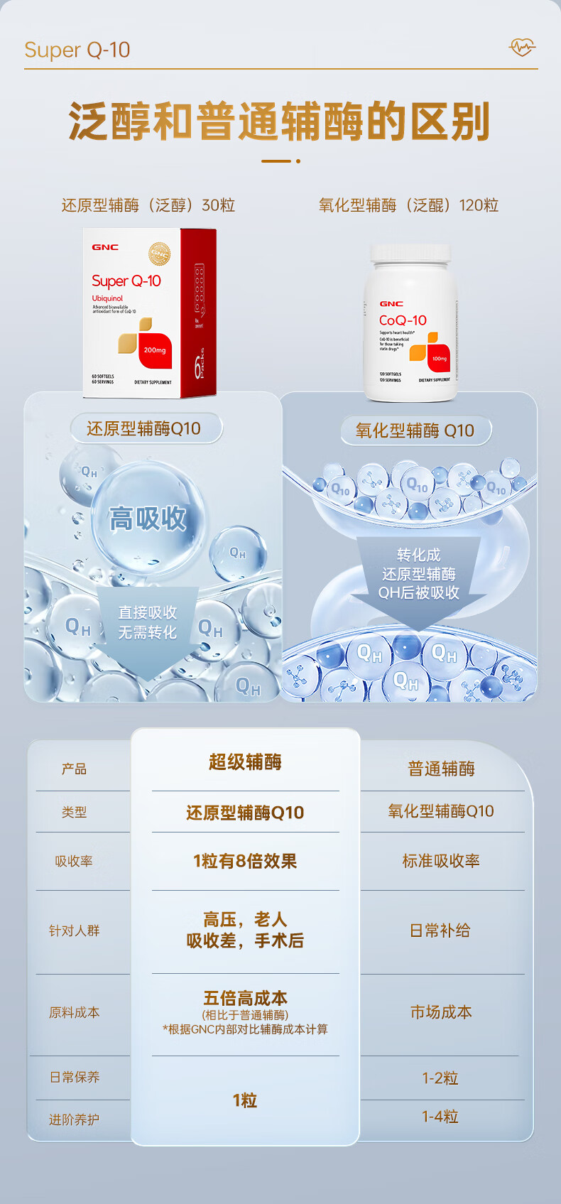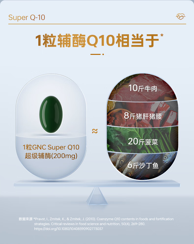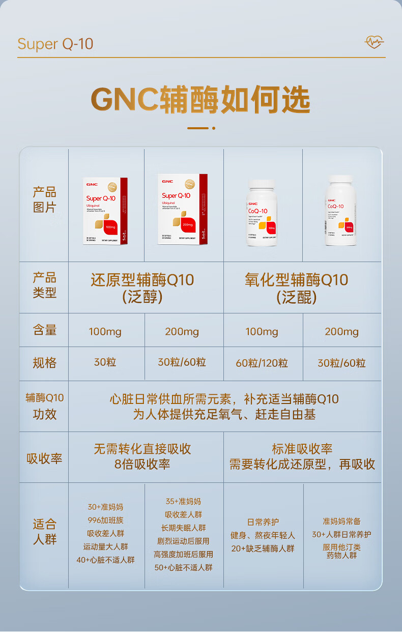 GNC健安喜还原型辅酶q10胶囊原装进口 coq10心脑血管备孕200mg60粒