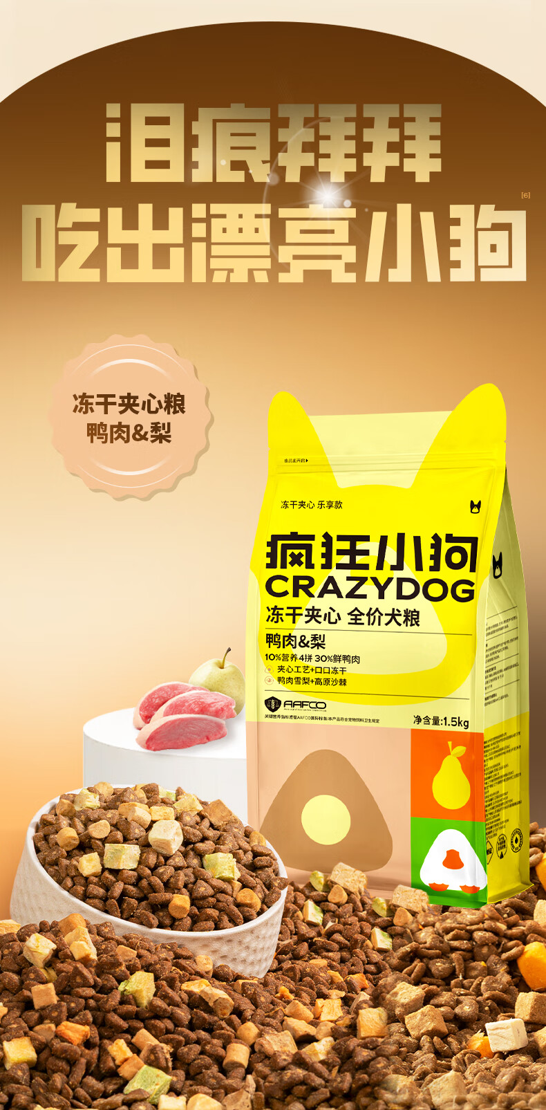 疯狂小狗小耳朵冻干夹心鸭肉梨狗粮比熊泰迪小型犬幼成犬粮1.5kg乐享款3斤