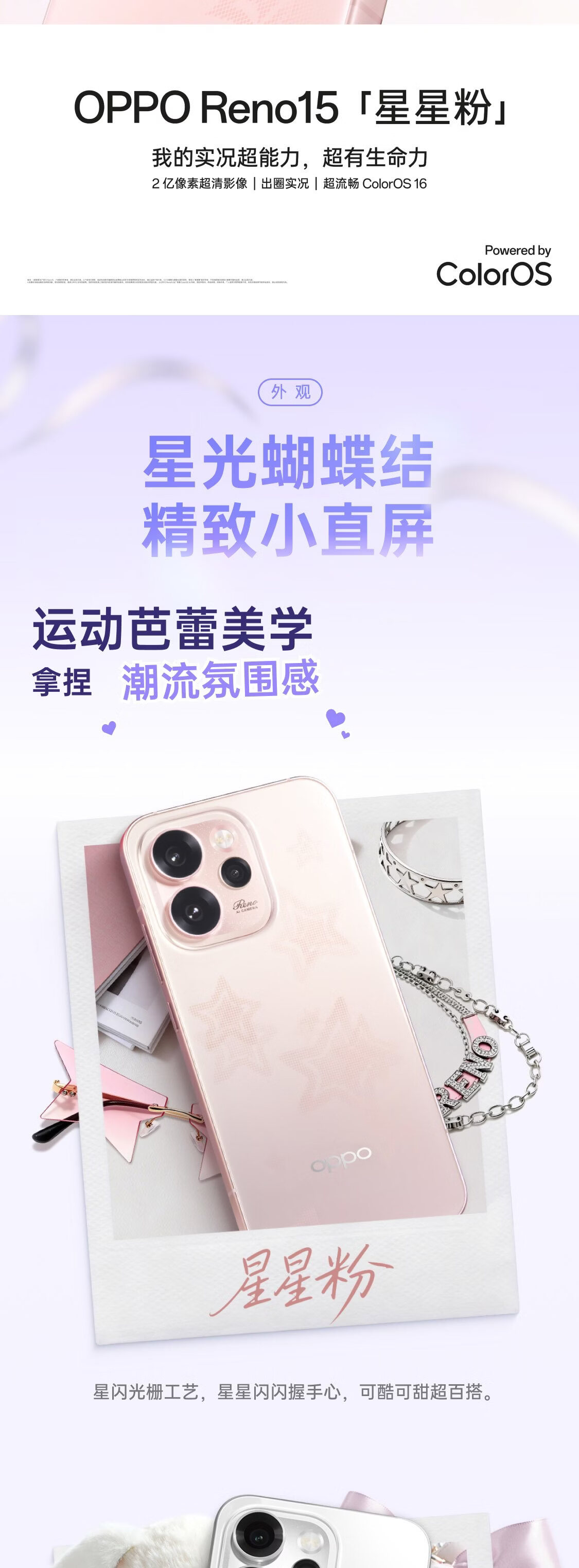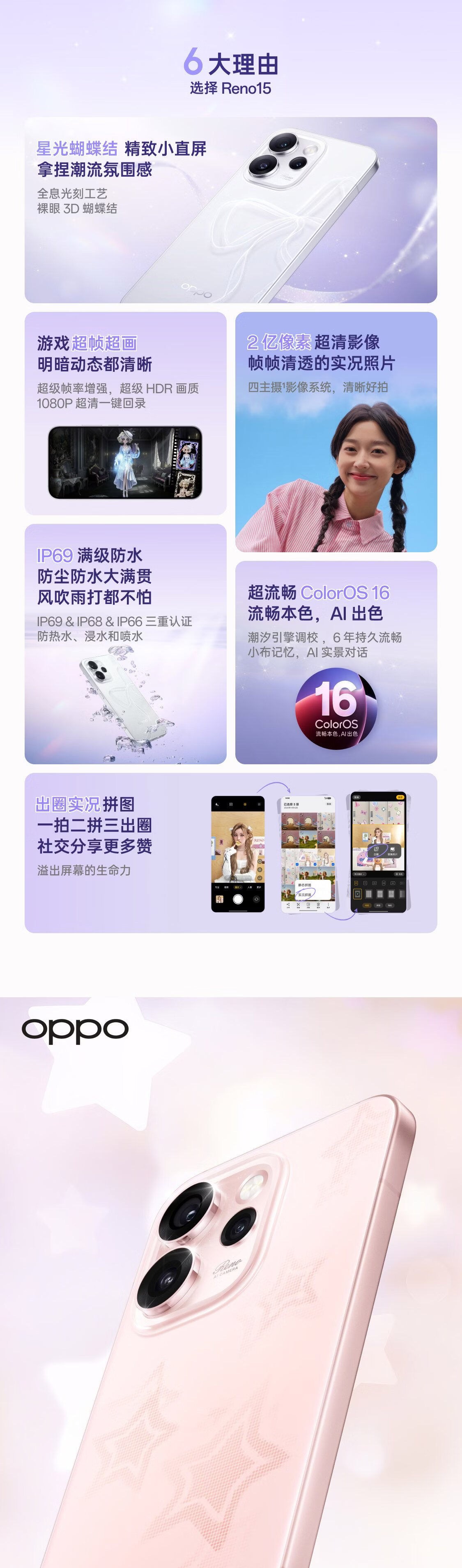OPPO Reno15 2 亿像素超清影像 IP69满级防水 超出圈实况 5G智能 AI拍照手机 新品上市 星光蝴蝶结 12GB+256GB