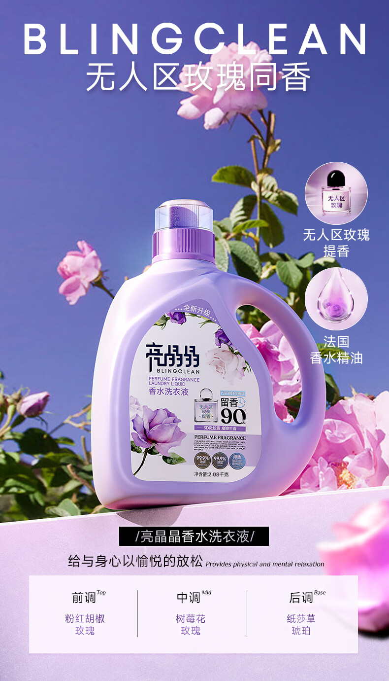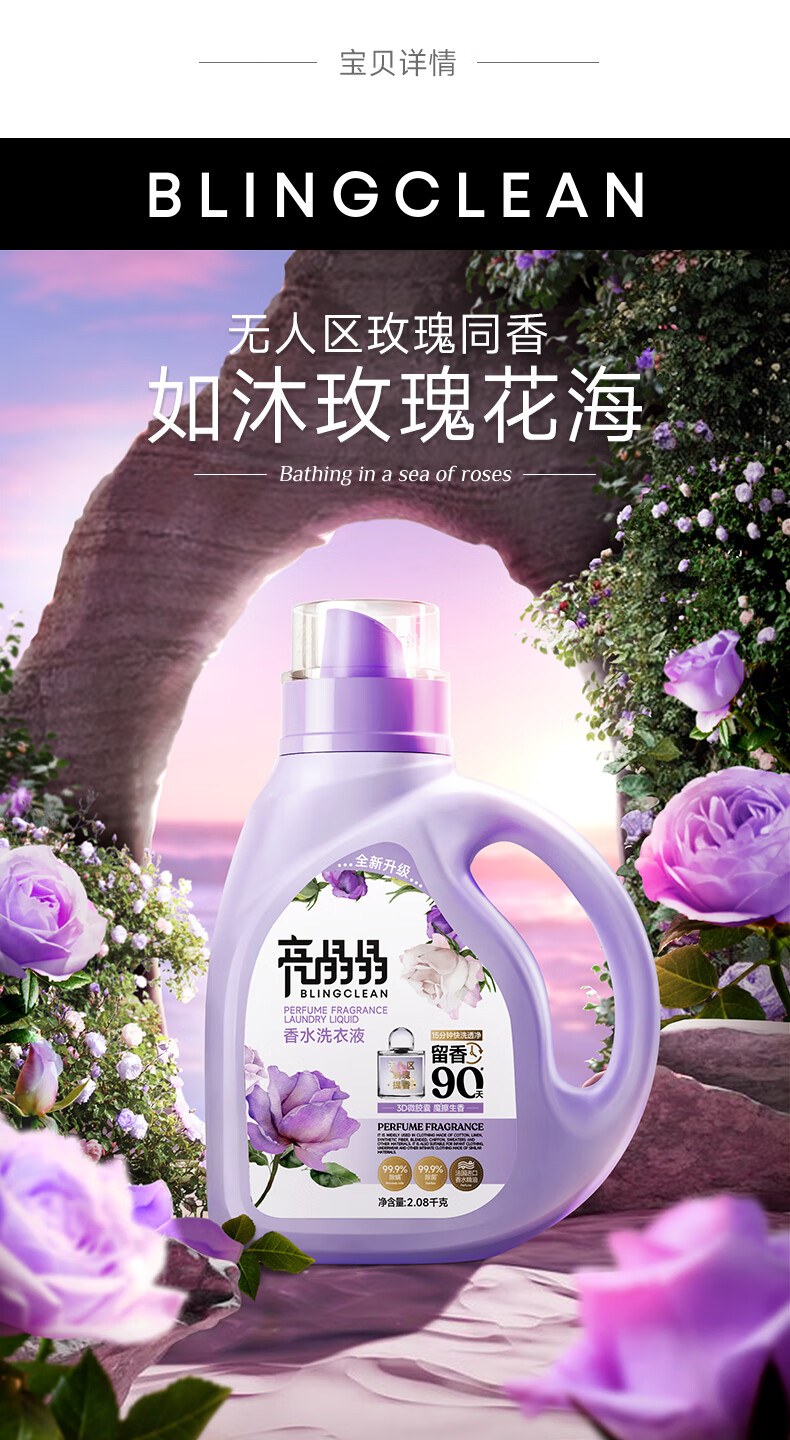 亮晶晶香水洗衣液4斤/瓶 持久留香型 除菌除螨柔顺护衣 无人区玫瑰香