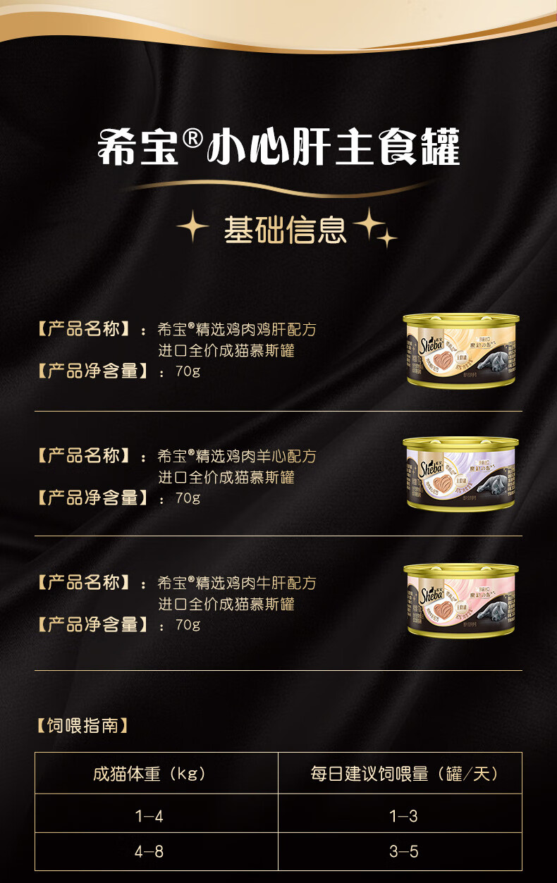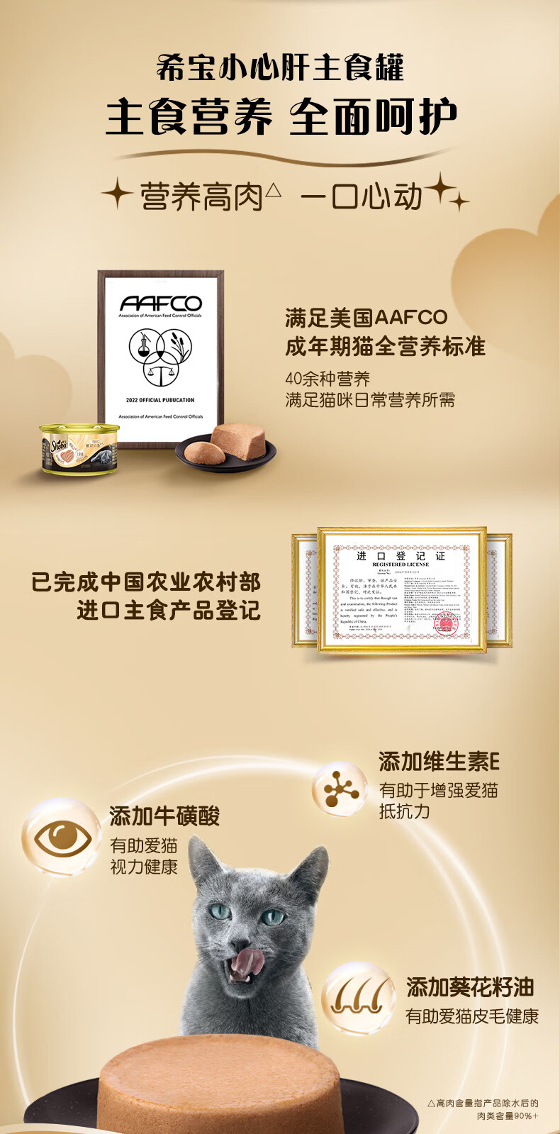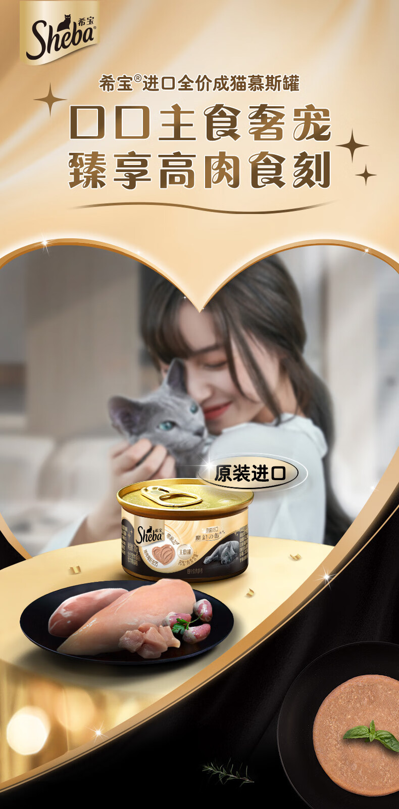 希宝 猫罐头进口全价成猫主食罐头高肉补水慕斯罐混合口味70g*6罐