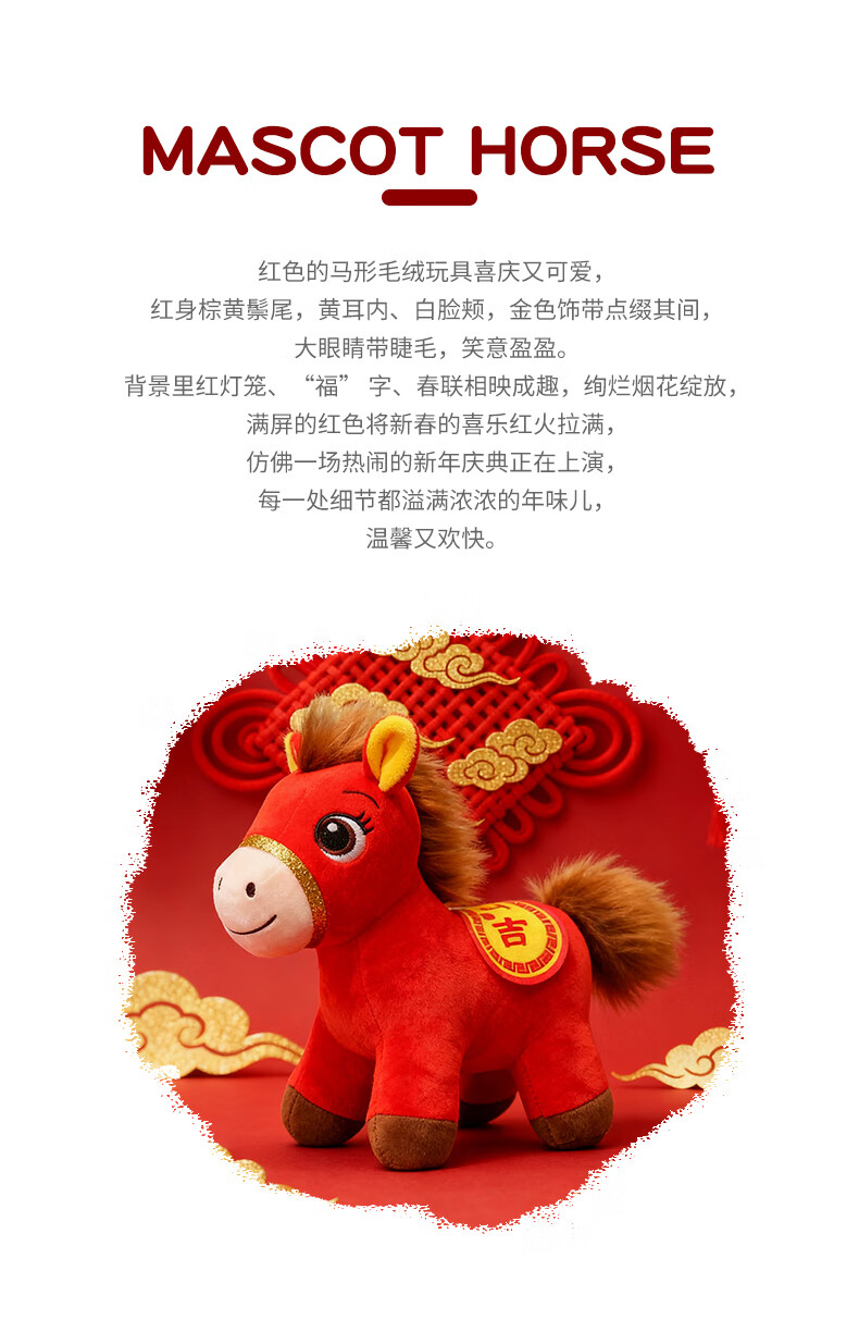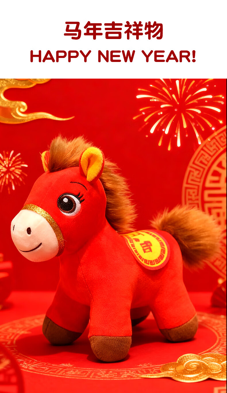 熊猫熊马年吉祥物玩偶小马公仔毛绒玩具2026生肖本命年摆件春节新年礼物