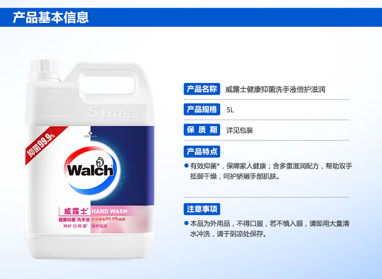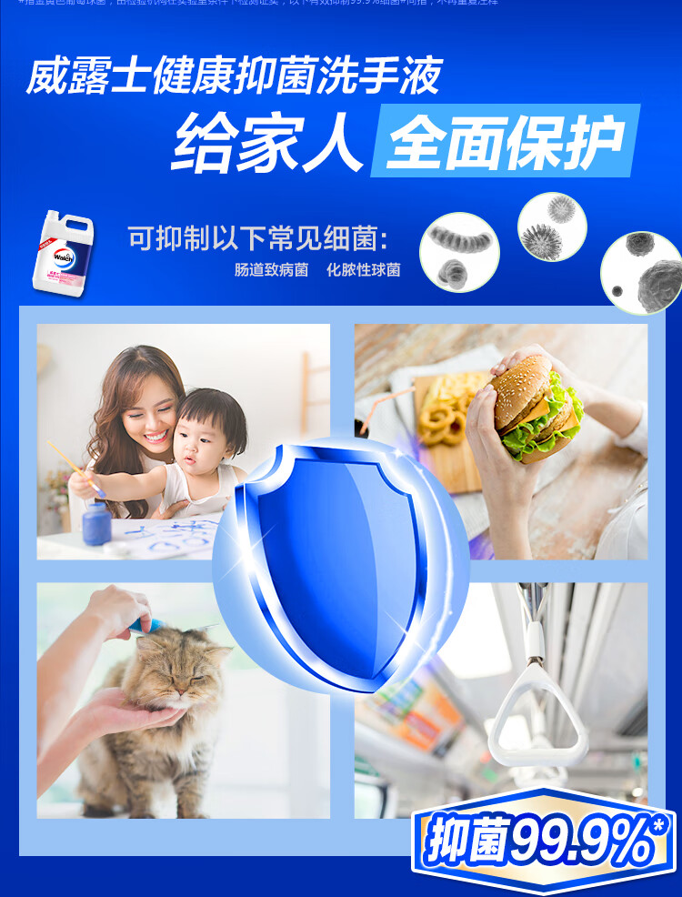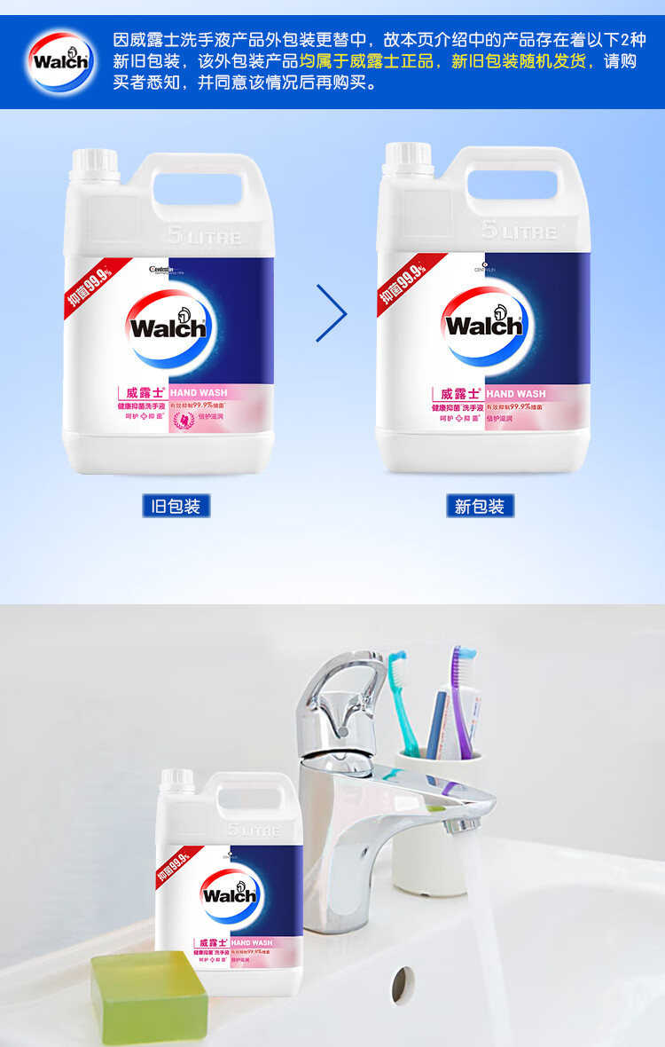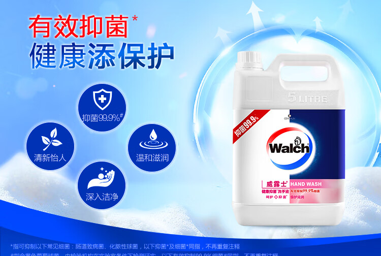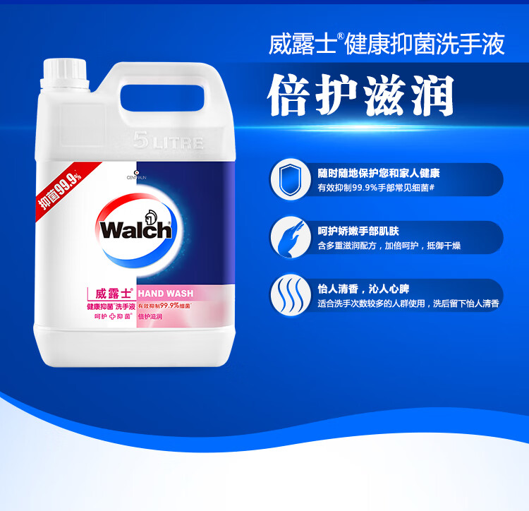 威露士抑菌滋润洗手液补充装5L 杀菌99.9%儿童家庭酒店餐厅5kg大桶10斤