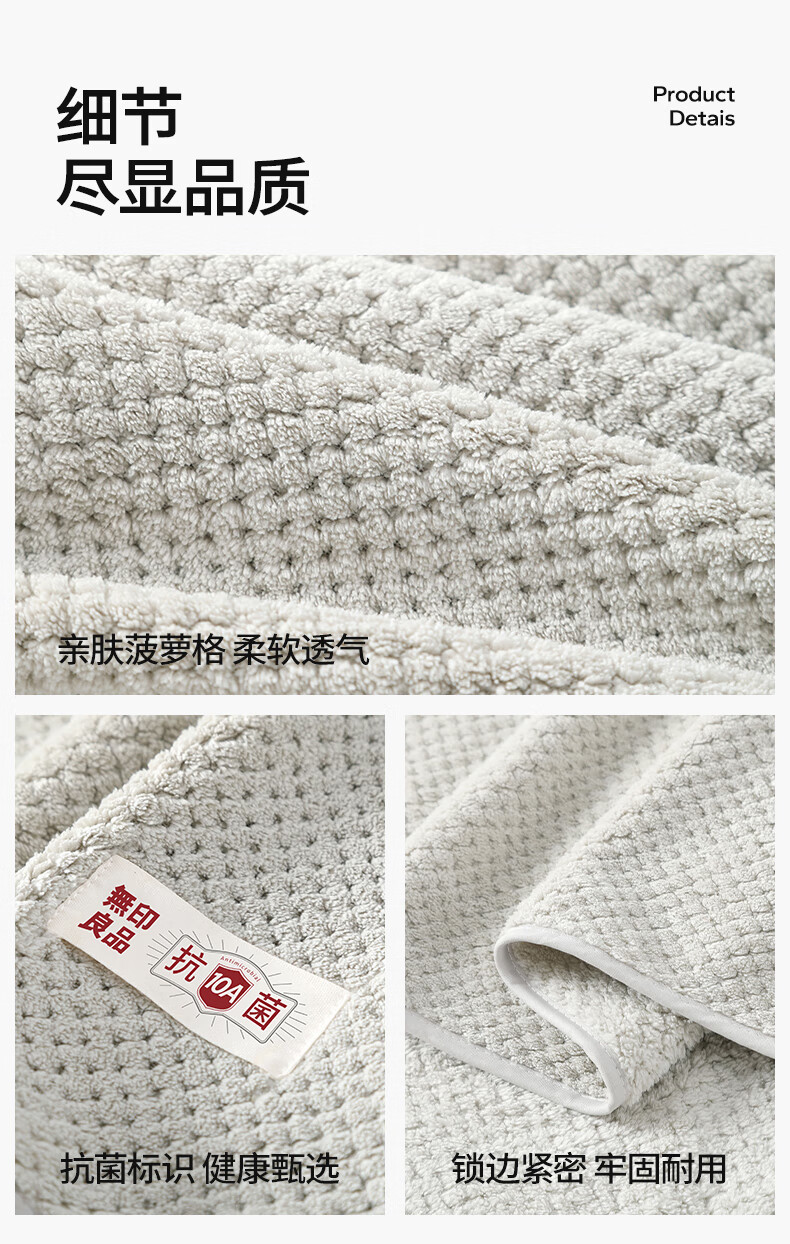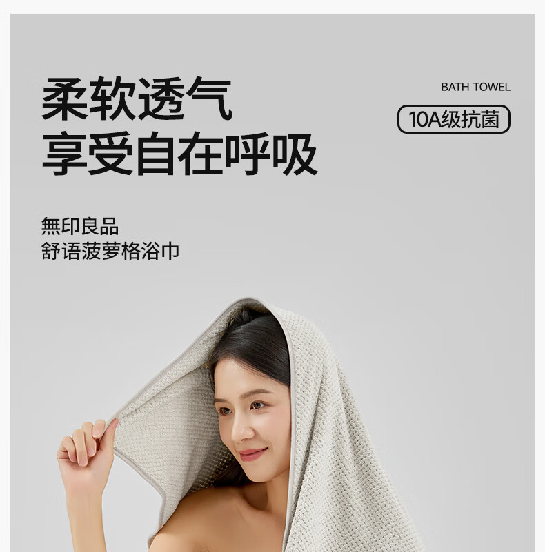 无印良品浴巾10A抗菌亲肤柔软吸水速干A类不易掉毛男士女生洗澡大浴巾浅灰