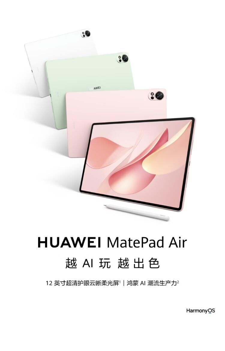 HUAWEI MatePad Air 12英寸 2025 柔光版 华为平板电脑 2.8K高刷超清全面屏 WIFI 12GB+256GB 樱语粉