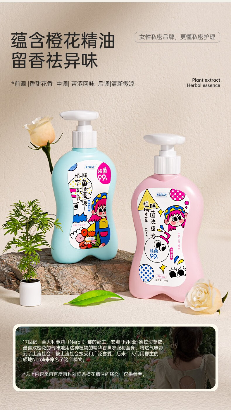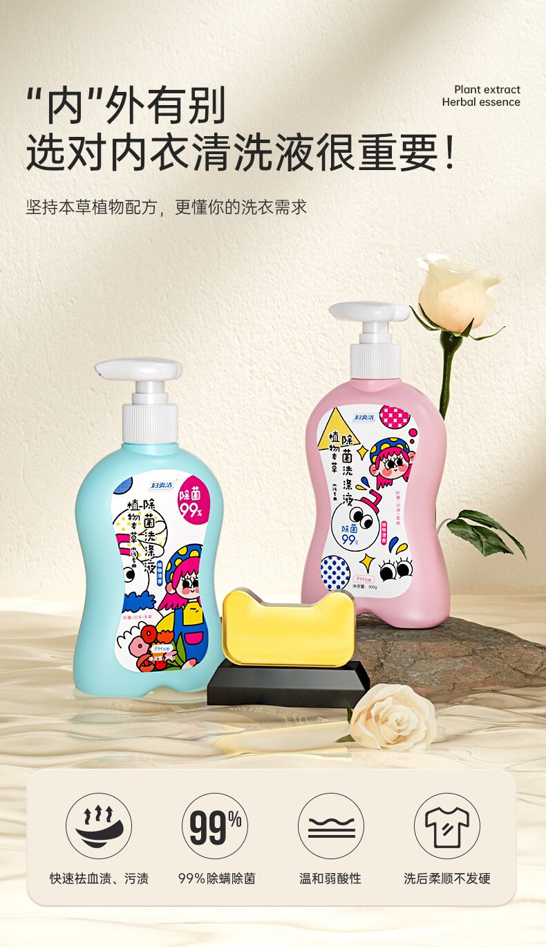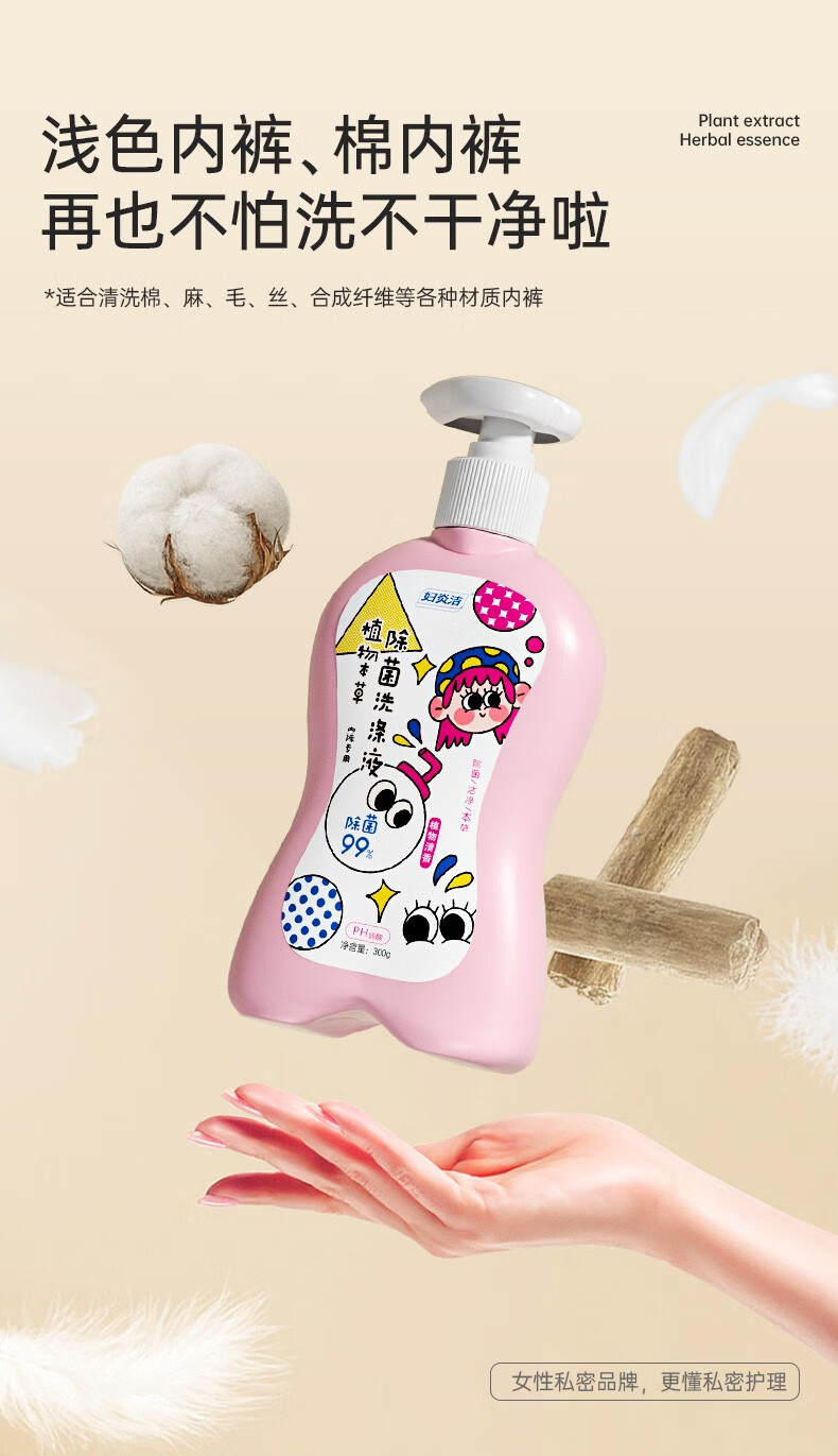 妇炎洁内衣内裤洗衣液抑菌除菌去血渍洗内裤专用玩趣清洗液 粉瓶300g