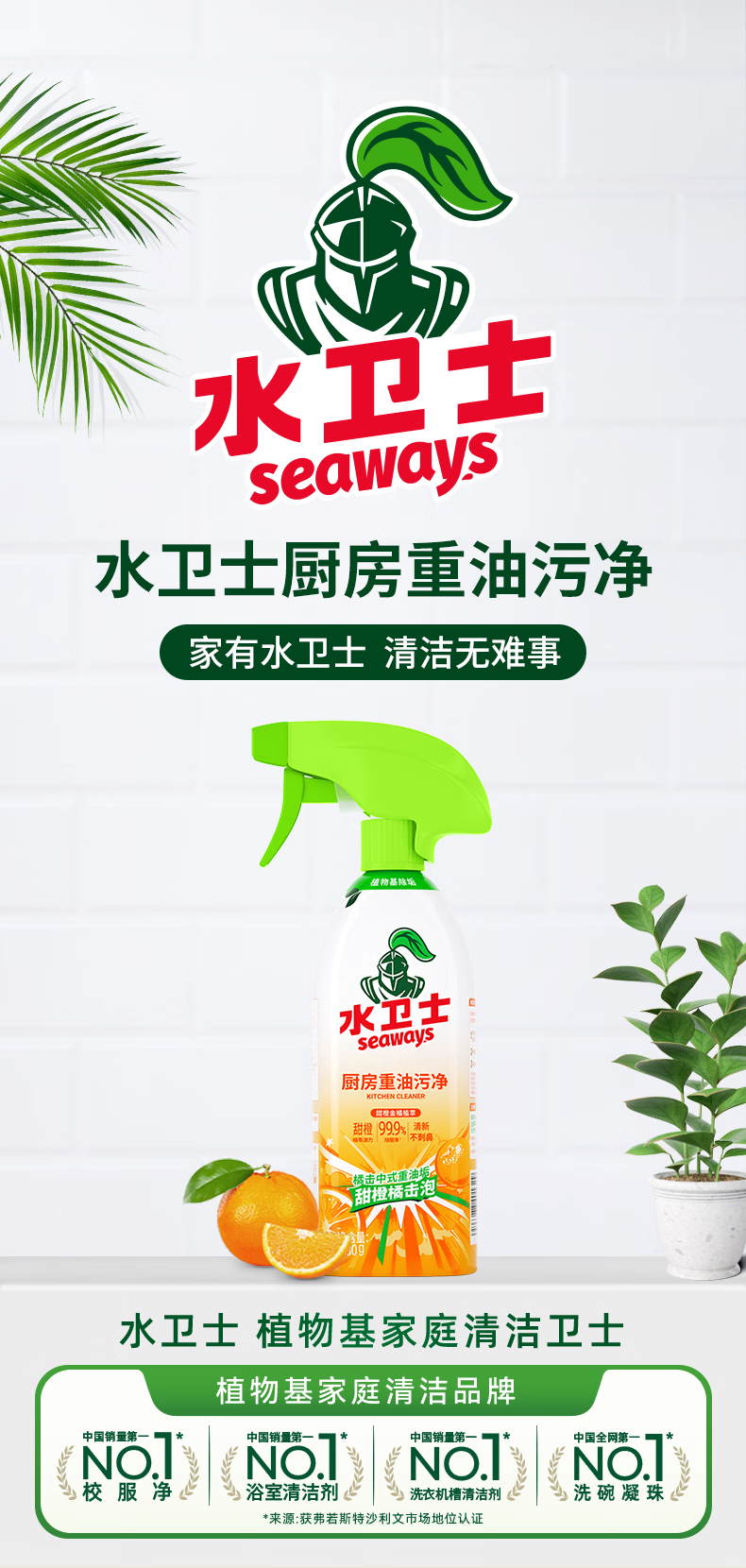 水卫士厨房重油污净 油污清洁剂抽油烟机清洗剂 强力去油污油烟净水卫仕 油污净480g*3瓶