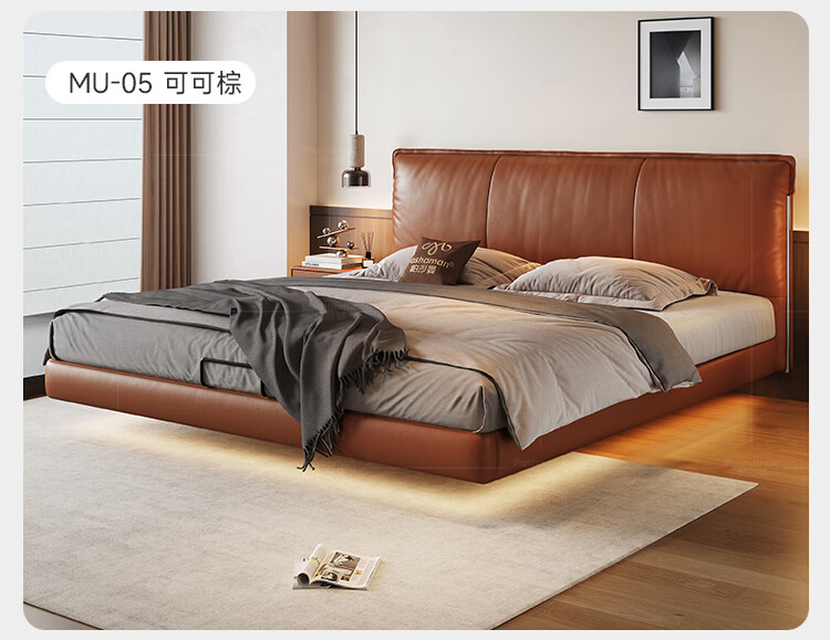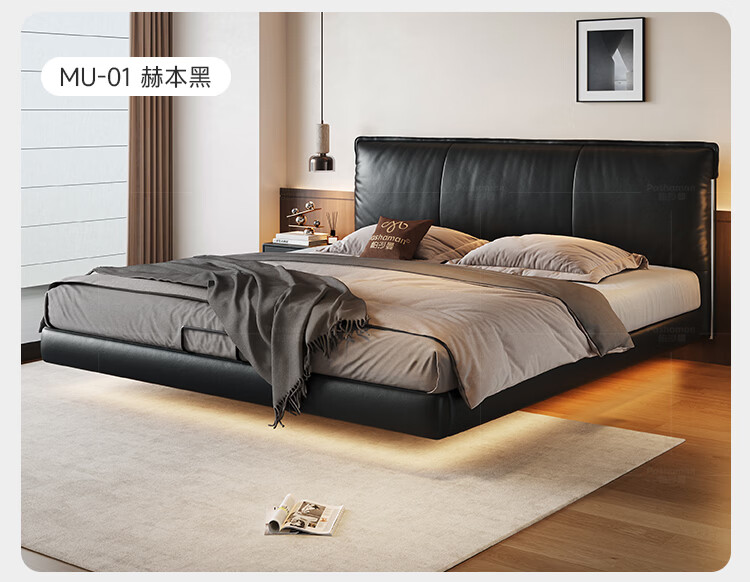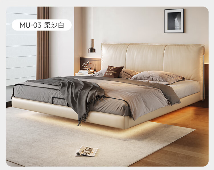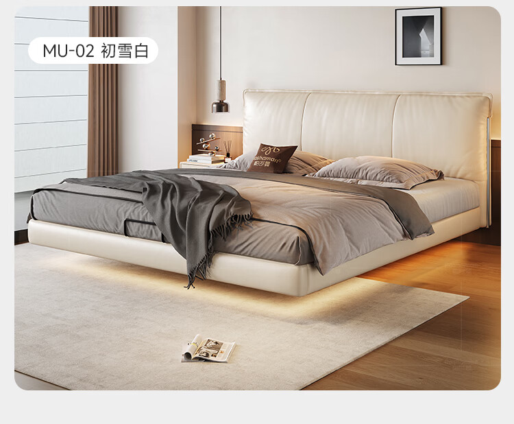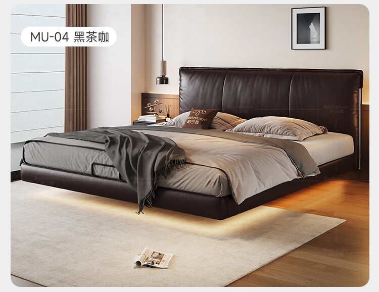 帕沙曼国货补贴悬浮真皮床中古软包意式主卧室双人床现代轻奢婚床8388CP 【15CM钢木排骨架】单床 悬浮结构-带灯款1500mm*2000mm