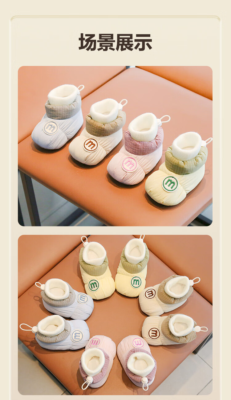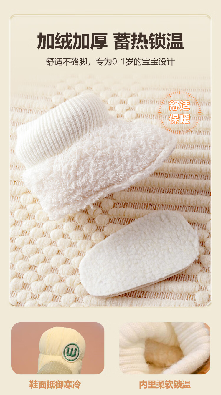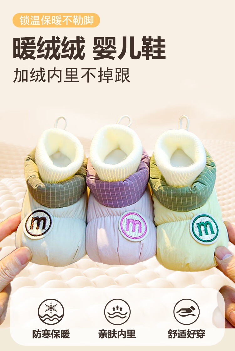 朋意婴儿鞋袜0-1岁女宝秋冬季棉鞋软底防滑学步3-6到12月公主不掉鞋 天空蓝【秋冬加绒款】内长12.5cm (建议6-13个月) 均码