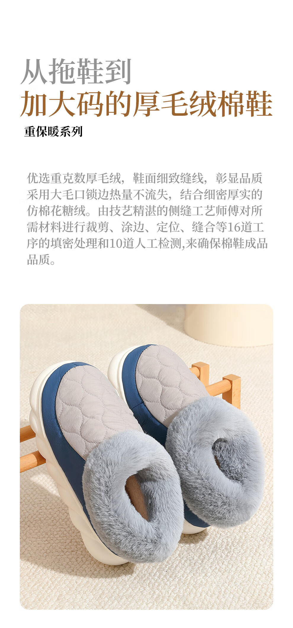 FZT防水包跟棉鞋女士冬季2025年新款防滑加绒休闲百搭风居家室外男款 深灰 36-37 标准码