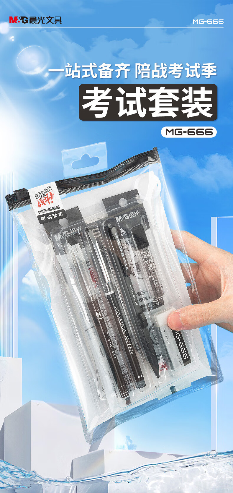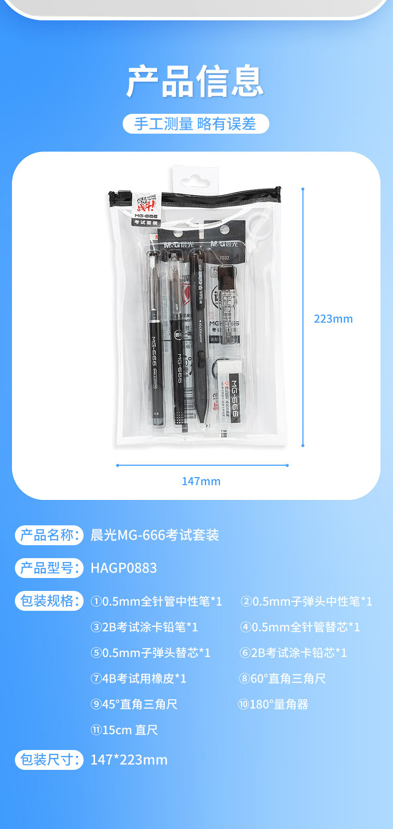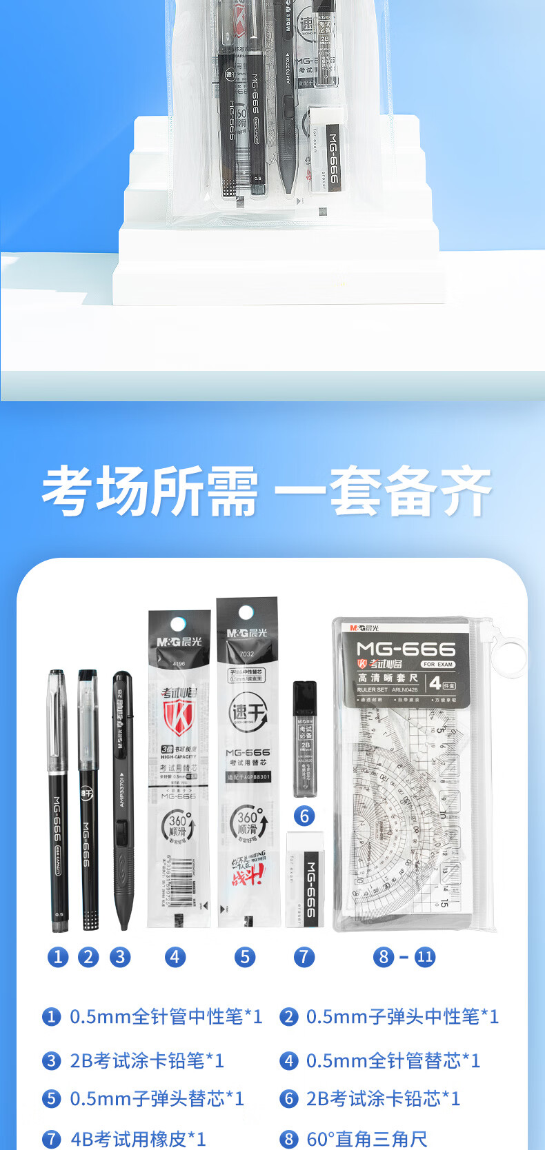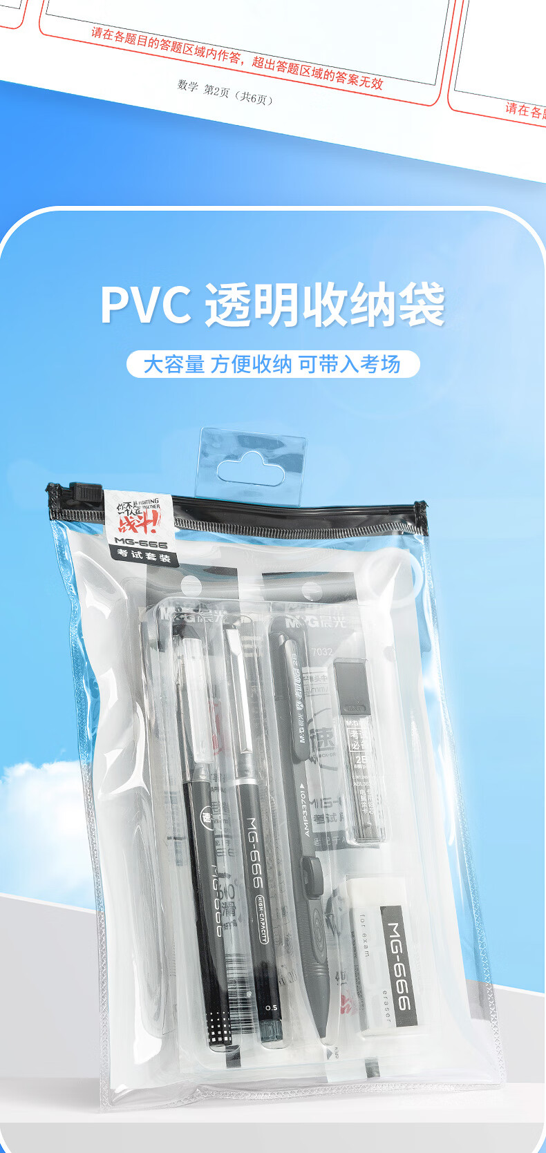 晨光(M&G)文具经典款透明考试考场专用套装中性笔+替芯+涂卡2B铅笔+套尺+橡皮 考试/中高考/考研/考公11件套