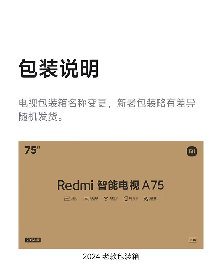 小米电视75英寸RedmiA75 2025版游戏竞技32G大存储小米OS澎湃系统4K超高清金属全面屏液晶平板 75英寸 Redmi A75 2025款