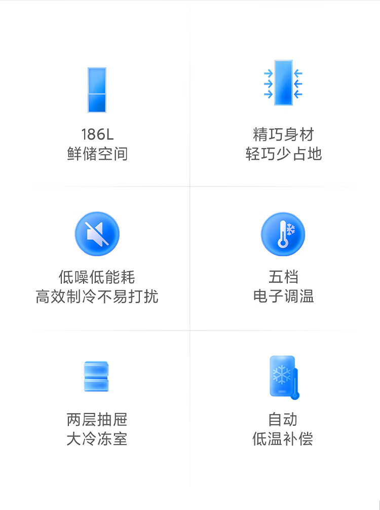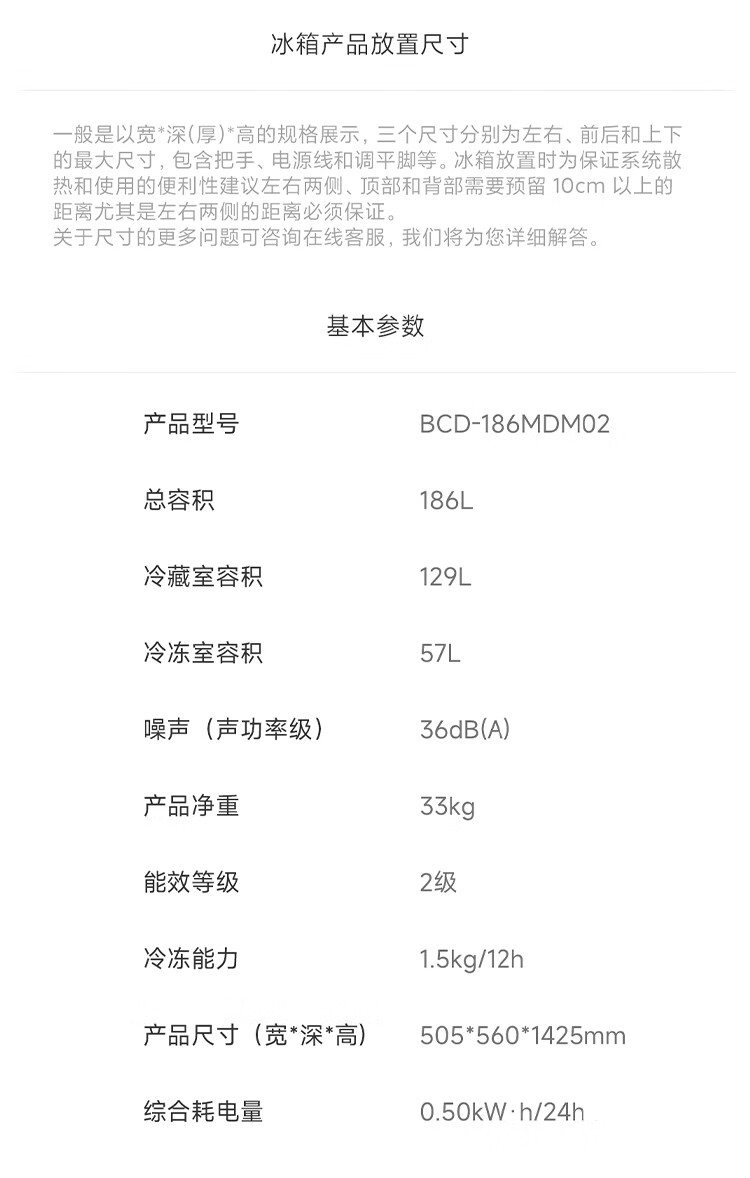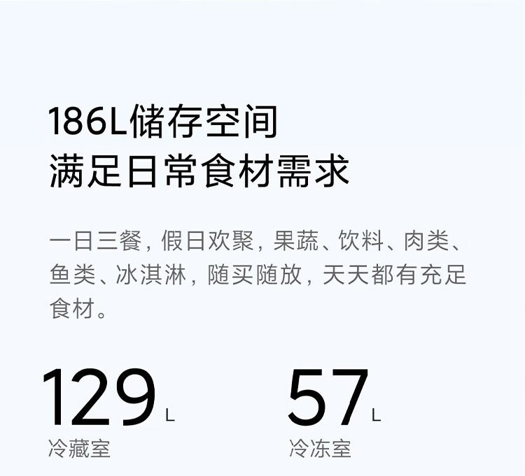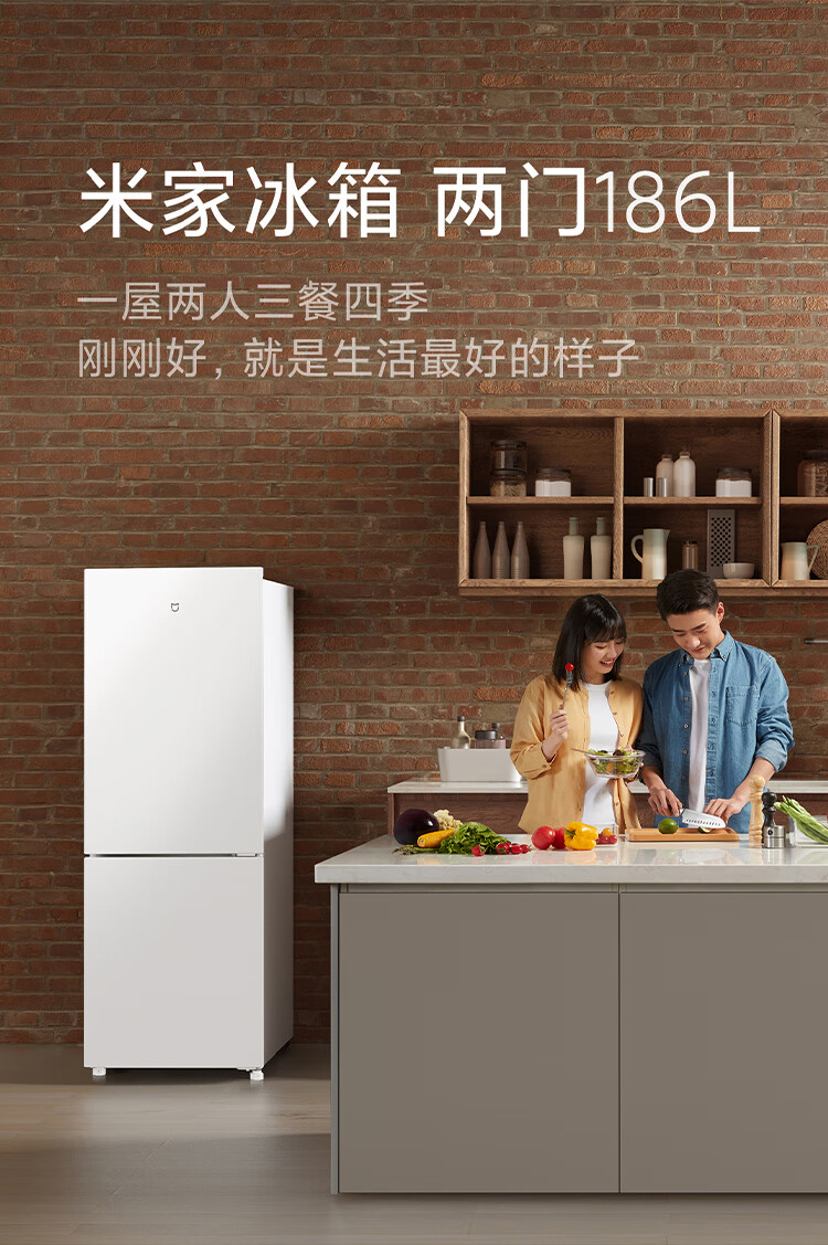米家小米186L两门冰箱小型家用节能安静运行冷冻冷藏租房宿舍BCD-186MDM02