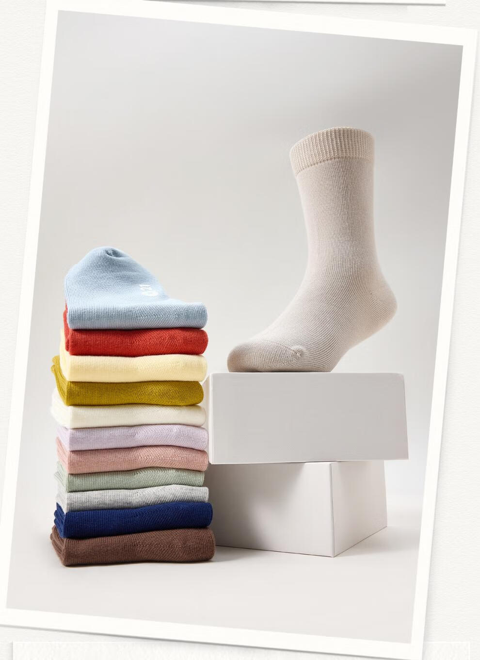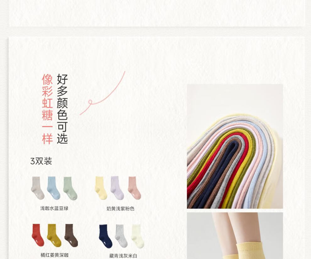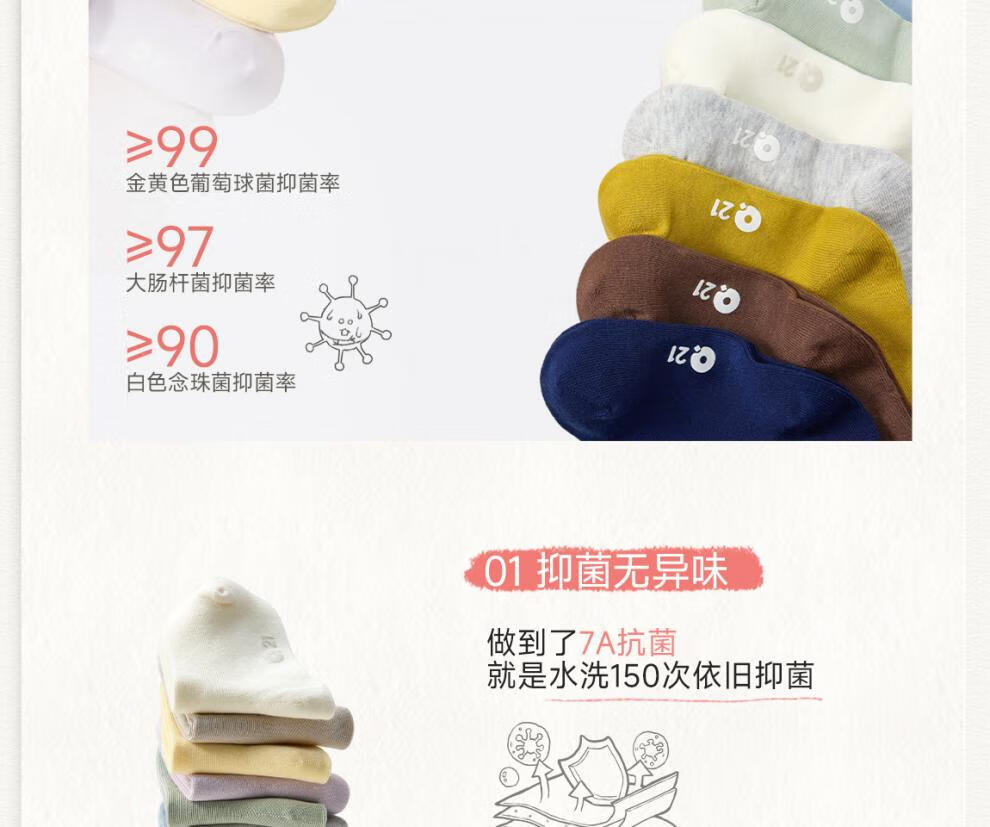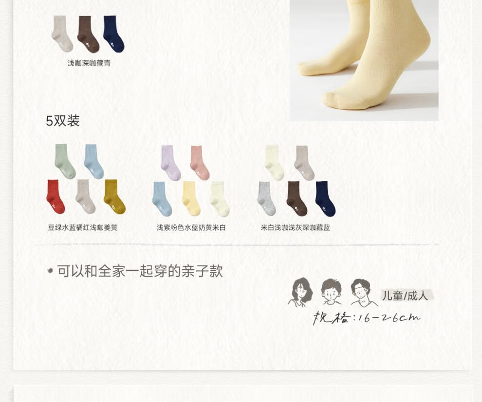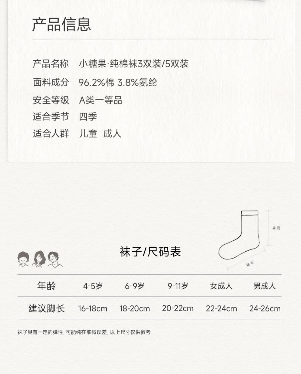 Q21直播小糖果排汗速干儿童袜子纯棉7A消臭中筒袜无骨袜男女童袜 藏青/浅灰/深灰/浅咖/米白 5-9岁 5-9岁 建议脚长18-20CM鞋