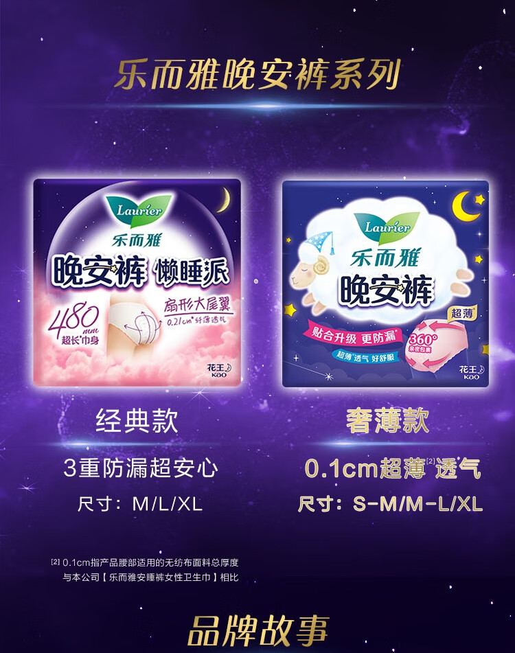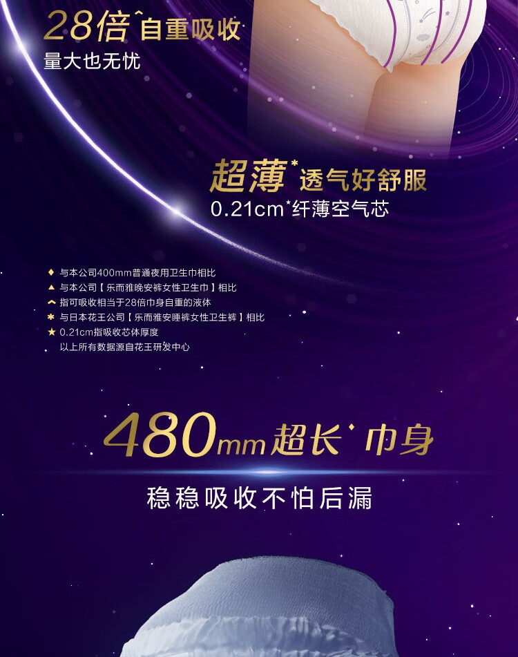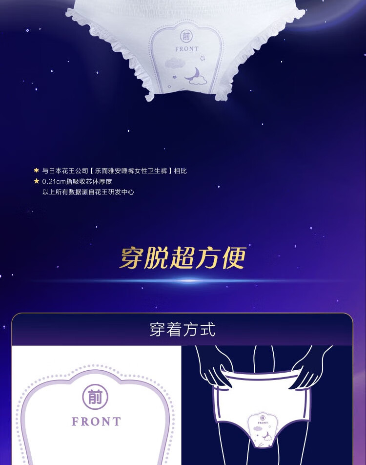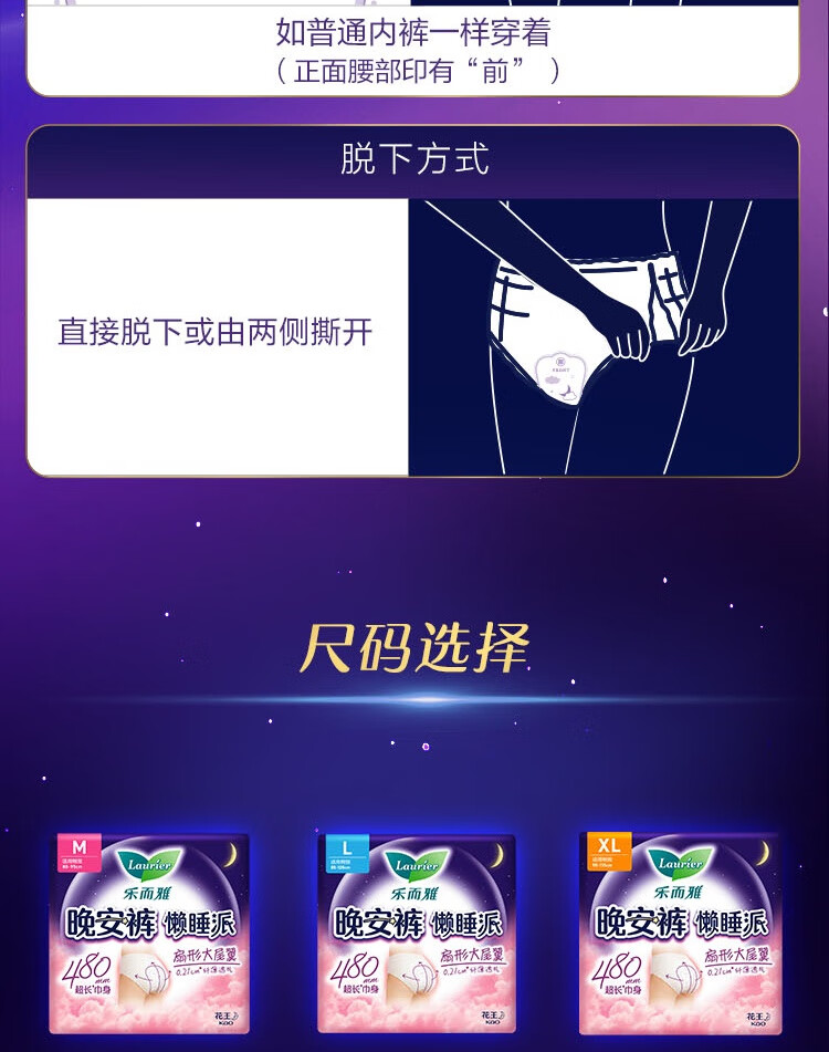 乐而雅花王懒睡派晚安裤L码5片安睡裤夜安裤裤型姨妈巾卫生巾京东自营