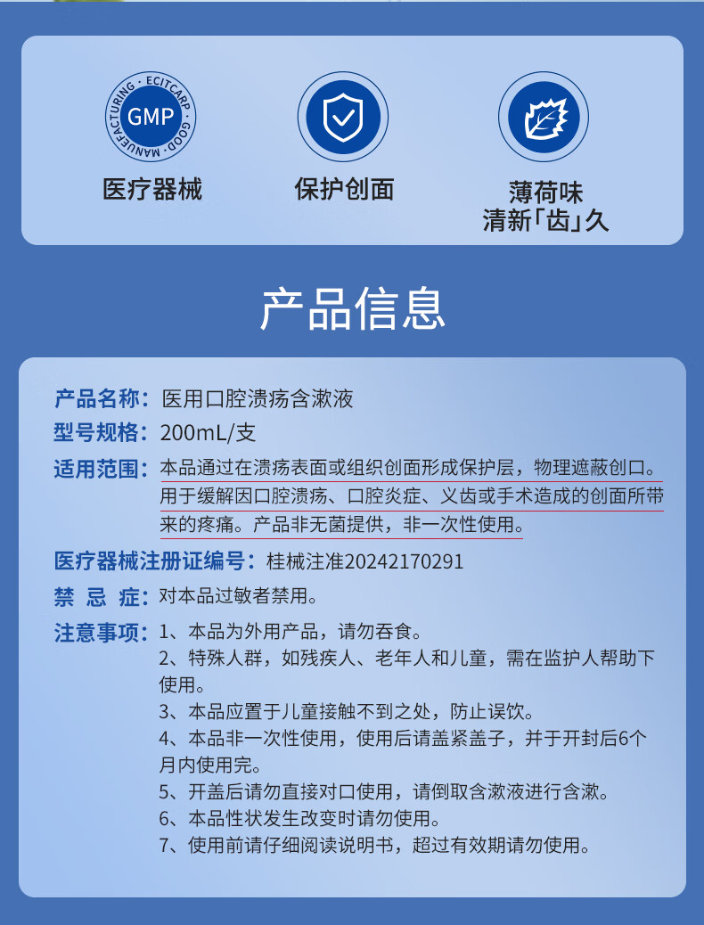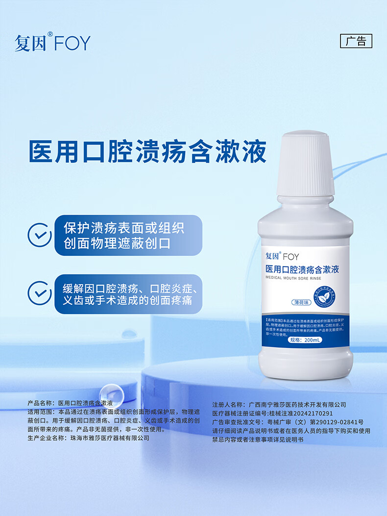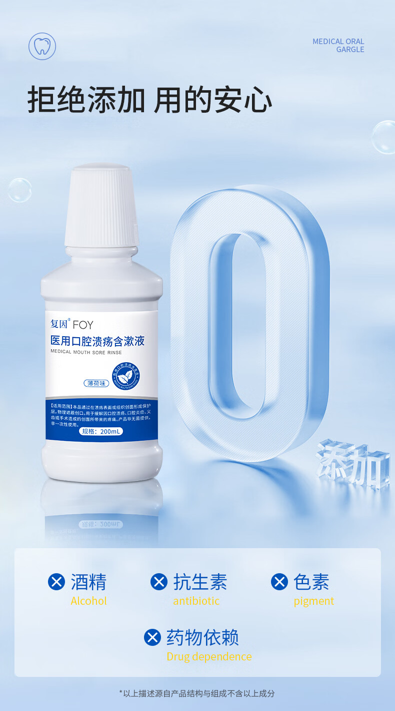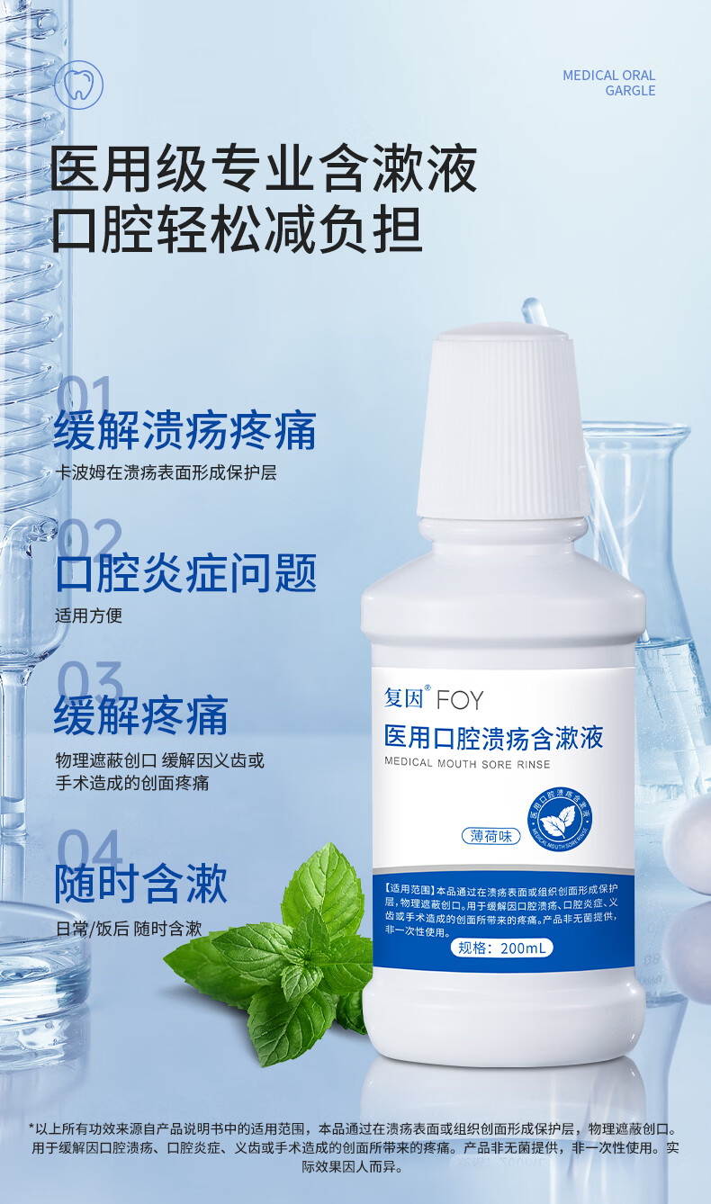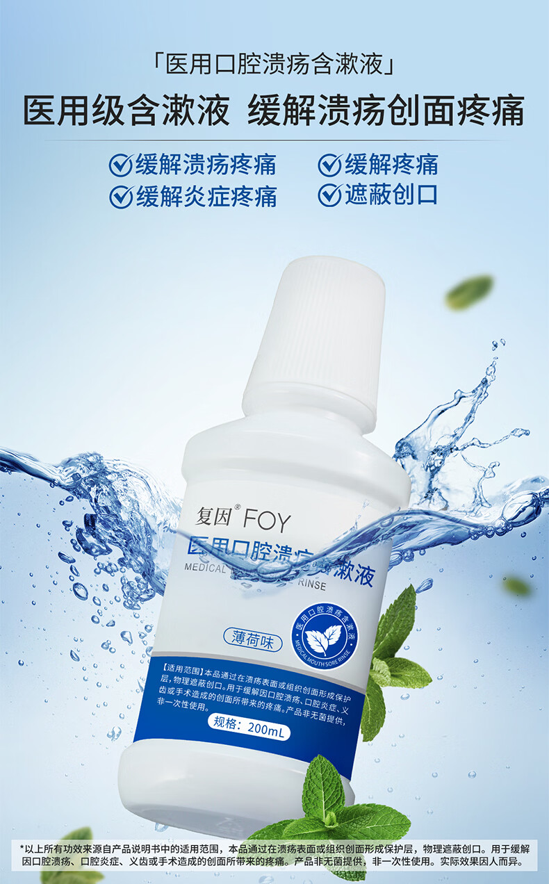 复因医用口腔溃疡含漱液清新型漱口水缓解溃疡炎症创面疼痛 200ml*1瓶