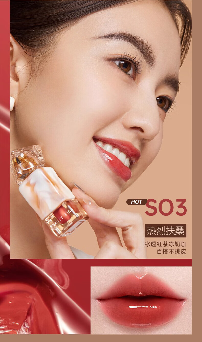 美人符唇釉口红有色唇膏保湿滋润防干裂去死皮淡唇纹新年礼物送女生新年 【镜面】S04热烈扶桑-黄皮百搭