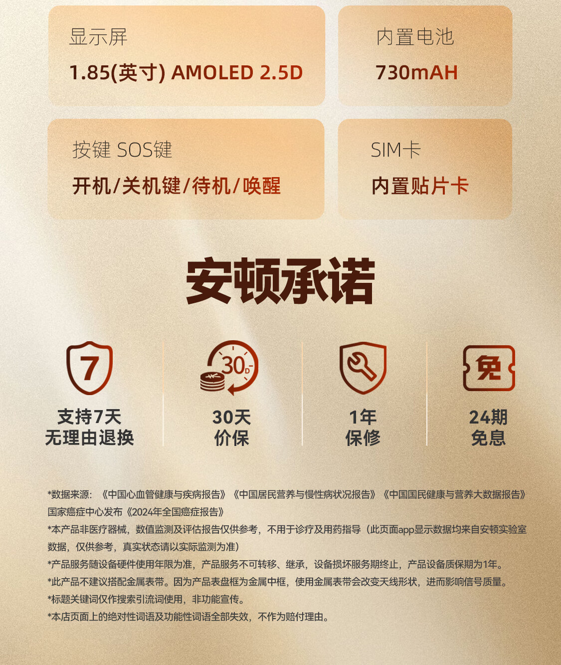 安顿智能手表心梗脑智能健康监测风险预警手表手环心率血氧血脂健康智能表多送礼送老人新品 至尊全维版-【钛空灰】赠冷灰氟橡胶表带*1