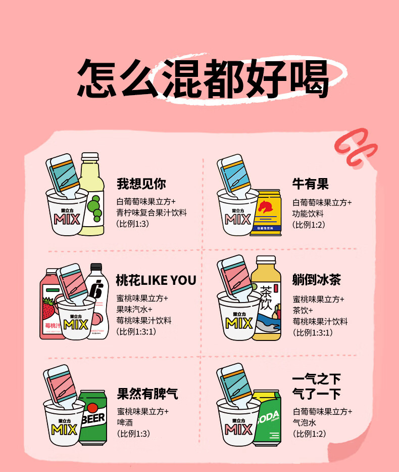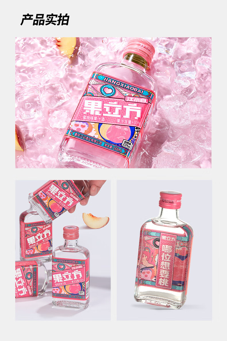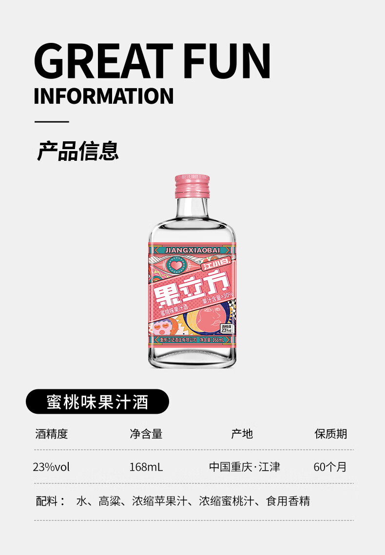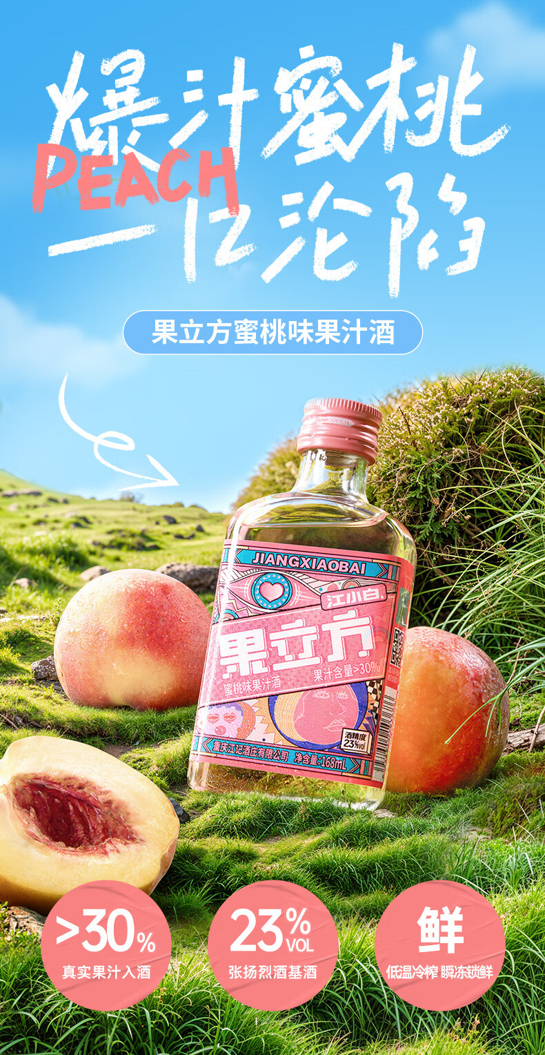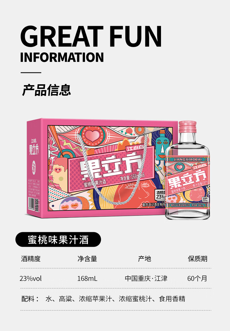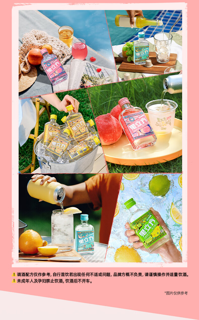 果立方果酒 23度蜜桃味果汁酒 微醺低度酒男女士水果酒 蜜桃168+葡萄168+柠檬100+柚子100