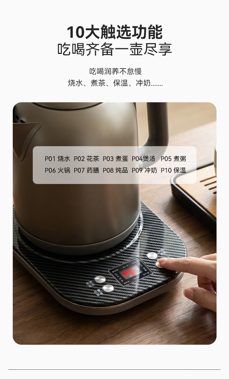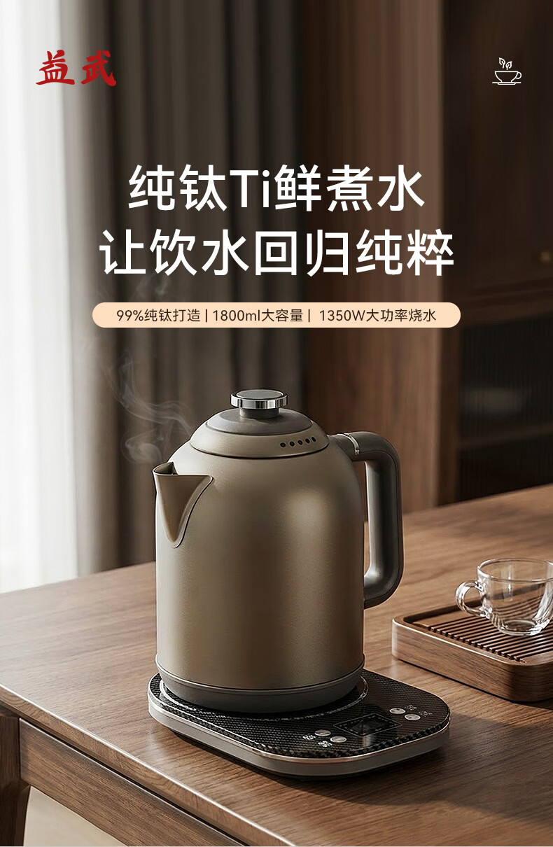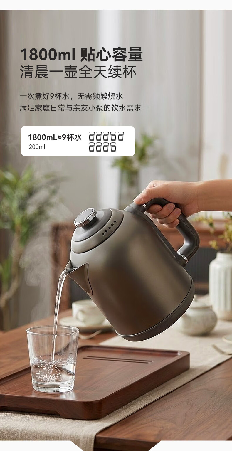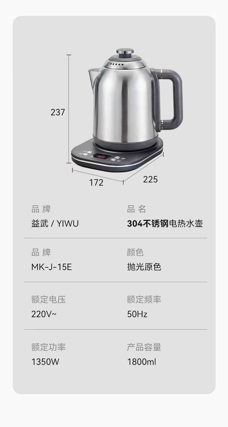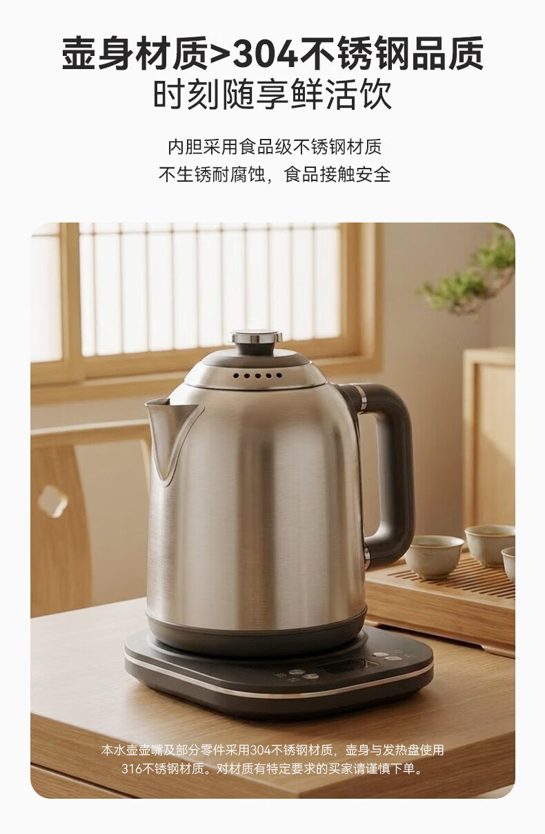 益武纯钛烧水壶家用多功能煮茶壶变频恒温防干烧大容量不锈钢煮茶炉 304不锈钢 1.8L